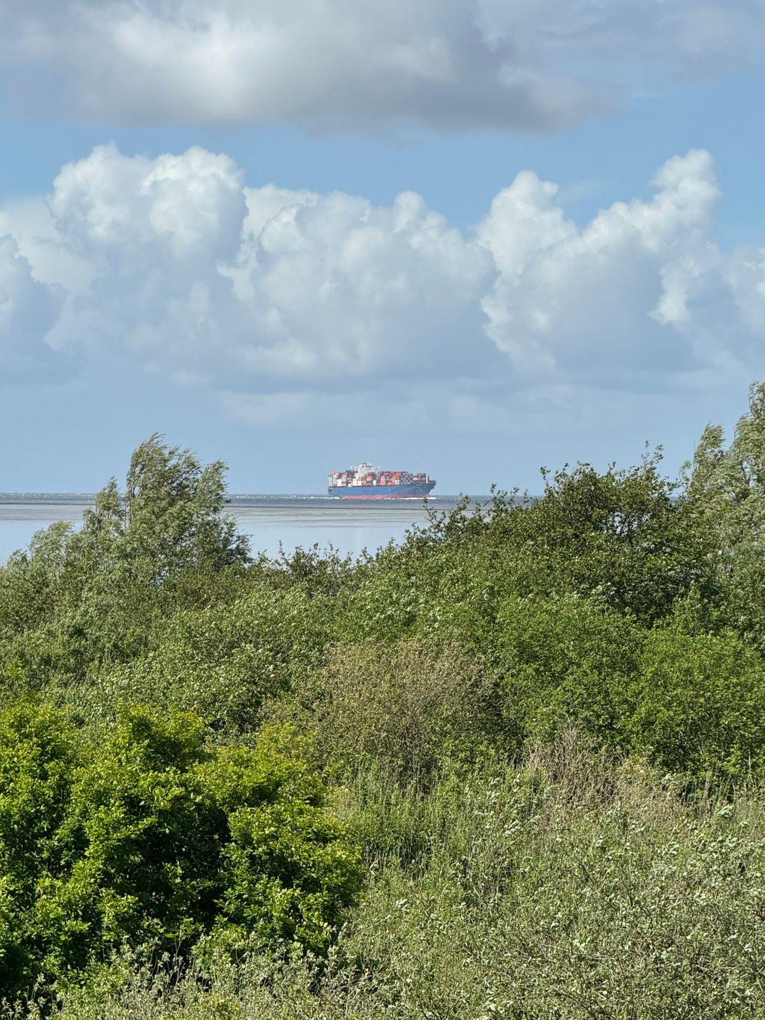 Auf dem Balkon der Ferienwohnung erwartet Sie die wunderbare Aussicht aufs Meer. Die Balkonmöbel laden ein, zu jeder Zeit die frische Nordseeluft zu genießen. Perfekt, um den Urlaubstag mit einem Frühstück unter freiem Himmel zu beginnen oder am Abend auf dem Balkon mit einem Glas Wein beim Sonnenuntergang über der Nordsee zu verweilen. Genießen Sie die vorbeifahrenden Container- und Kreuzfahrtschiffe in ihrer imposanten Gestalt, verwandeln Sie Ihr Handy in einen maritimen Schifffahrtsguide und erfahren alles über die gesichteten Schiffe. In der Wohnung liegt ein Fernglas, um die Schiffe noch näher heran zu holen.