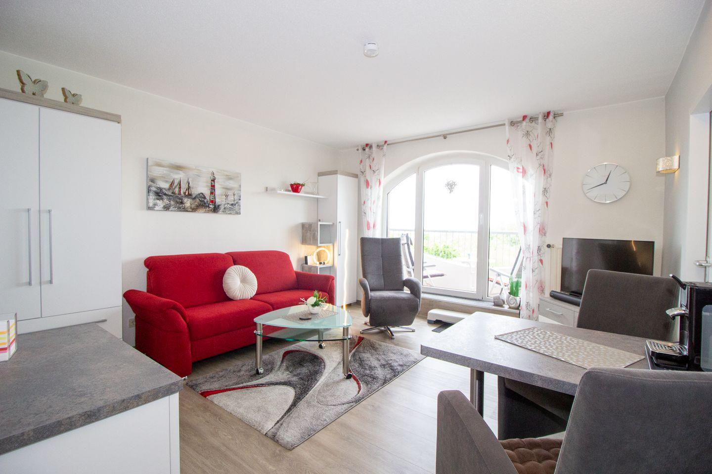 Moderne Ferienwohnung mit Meerblick und Balkon in Cuxhaven-Döse, nur wenige Schritte vom Sandstrand entfernt.