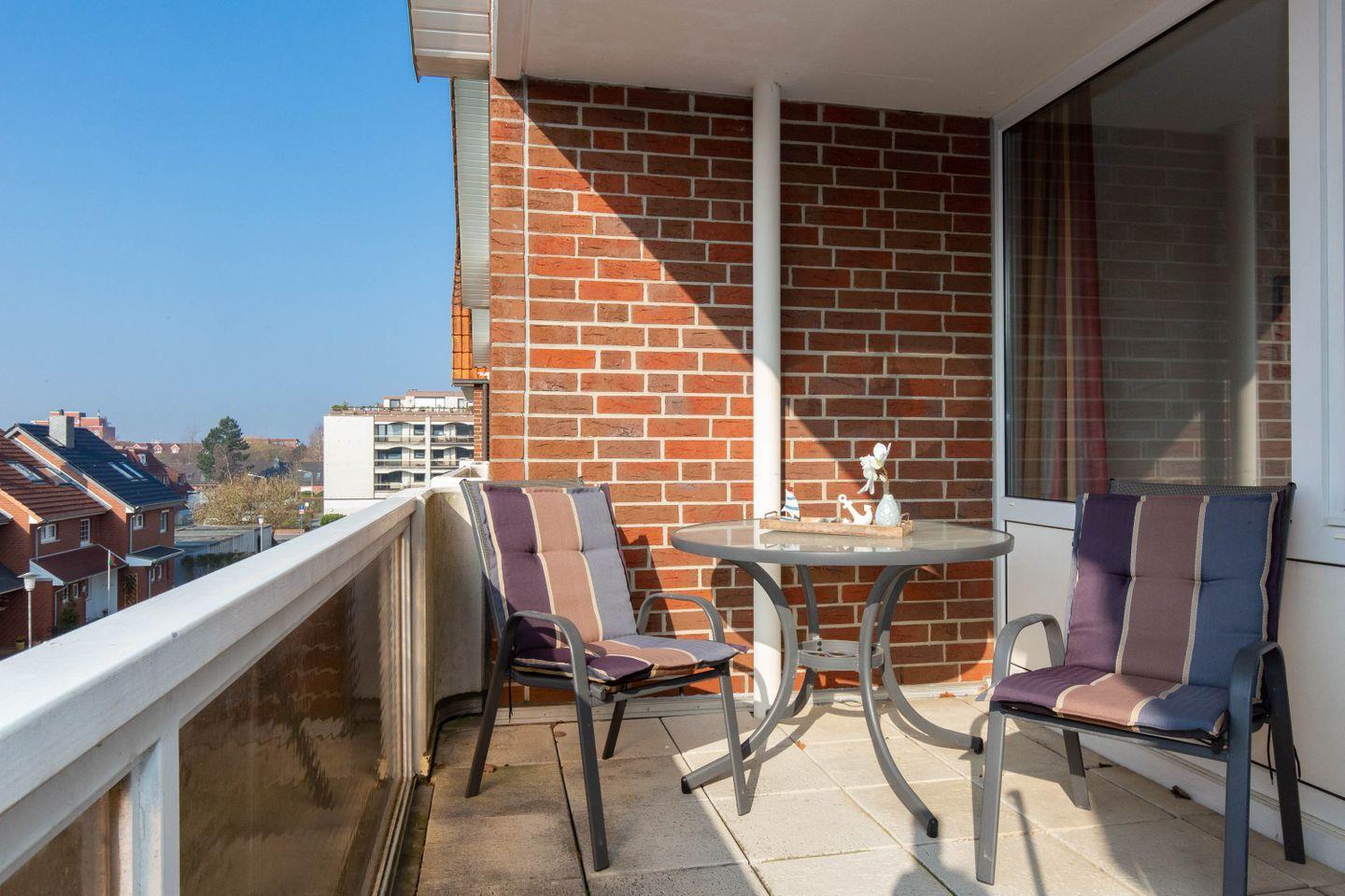 Der Balkon der Ferienwohnung ist nach Süden ausgerichtet mit entsprechender Sonne am Nachmittag.