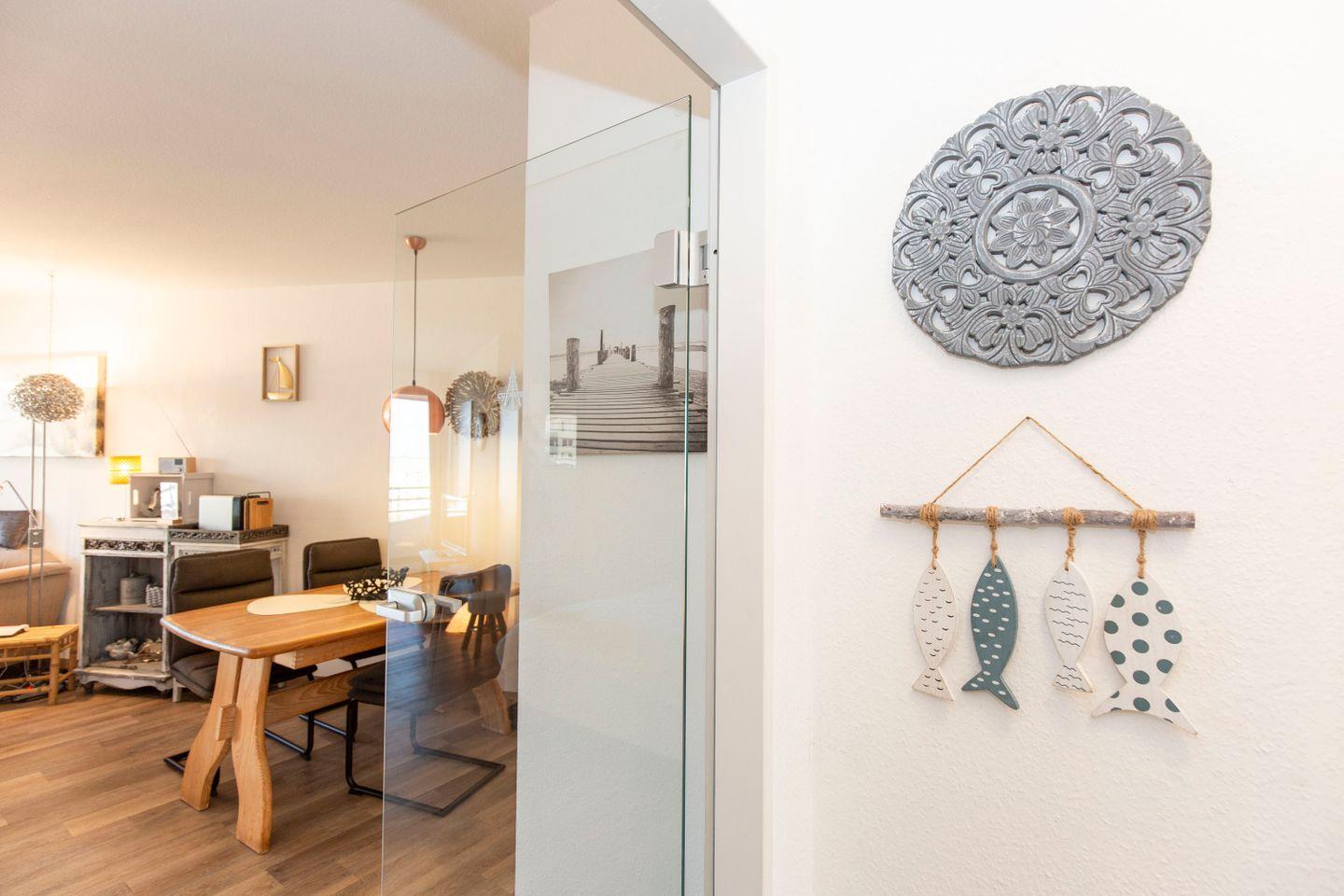 Die mit vielen Details eingerichtete Ferienwohnung bietet auf 43 m² Platz für bis zu drei Feriengäste und einen seitlichem Blick auf die Elbe. Urlaub an der Nordsee in direkter Strandnähe und eine Ferienwohnung als Startpunkt für Ausflüge und Radtouren.