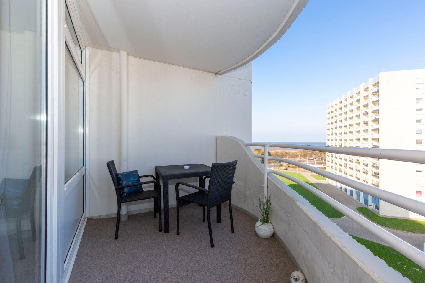 Auf dem Balkon der Ferienwohnung können Sie jederzeit die frische Meeresluft und den Blick auf den Weltschifffahrtsweg genießen. Der optimale Ort, um bei einem Frühstück unter freiem Himmel in den Urlaubstag zu starten.