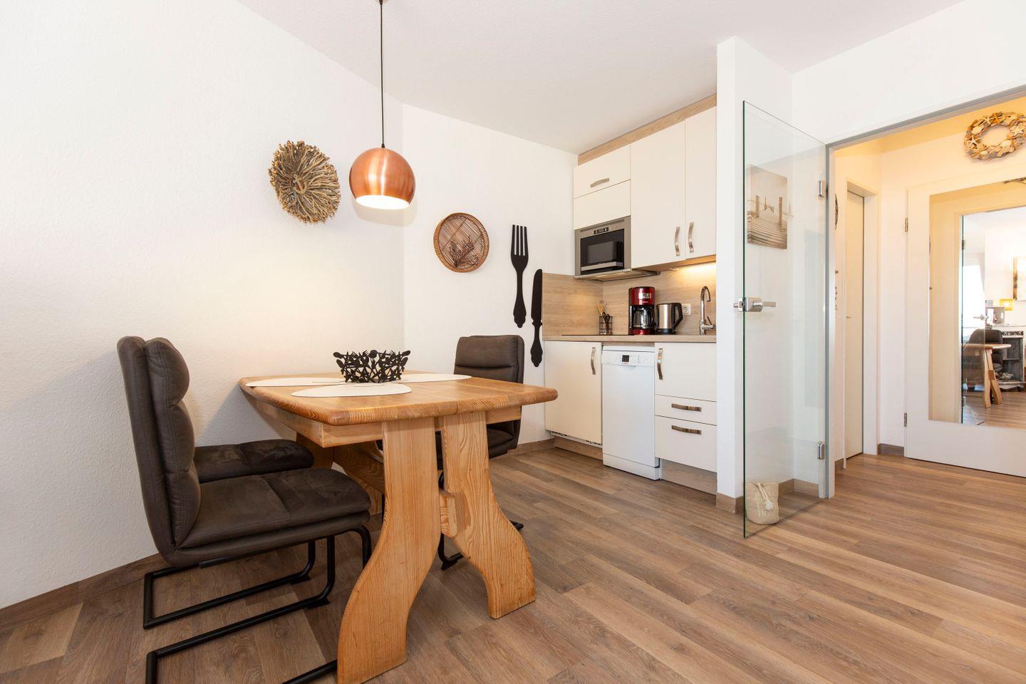 Gemütliche Ferienwohnung mit seitlichem Meerblick, Balkon, Schwimmbad und Sauna in Cuxhaven-Döse, strandnah und ideal für 3 Personen.
