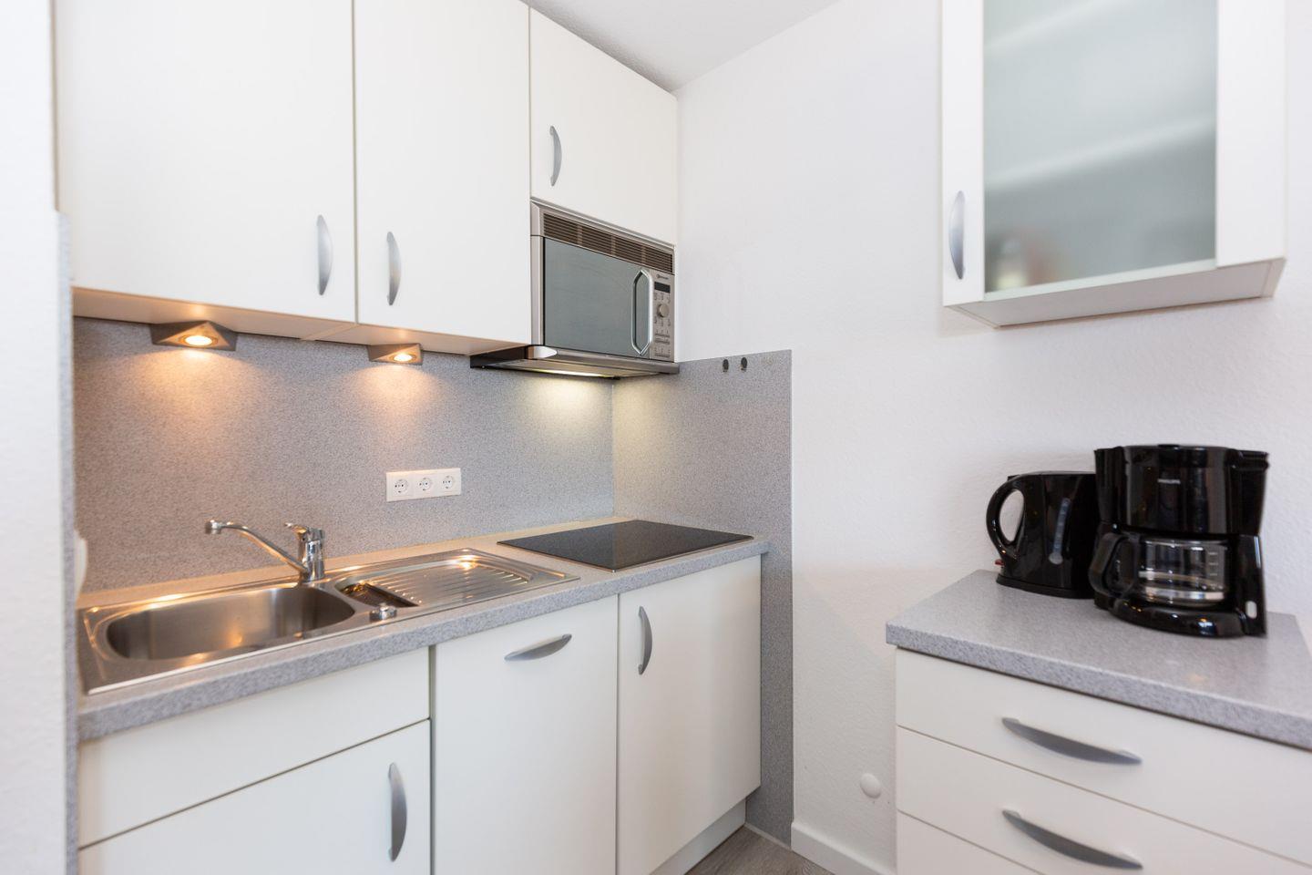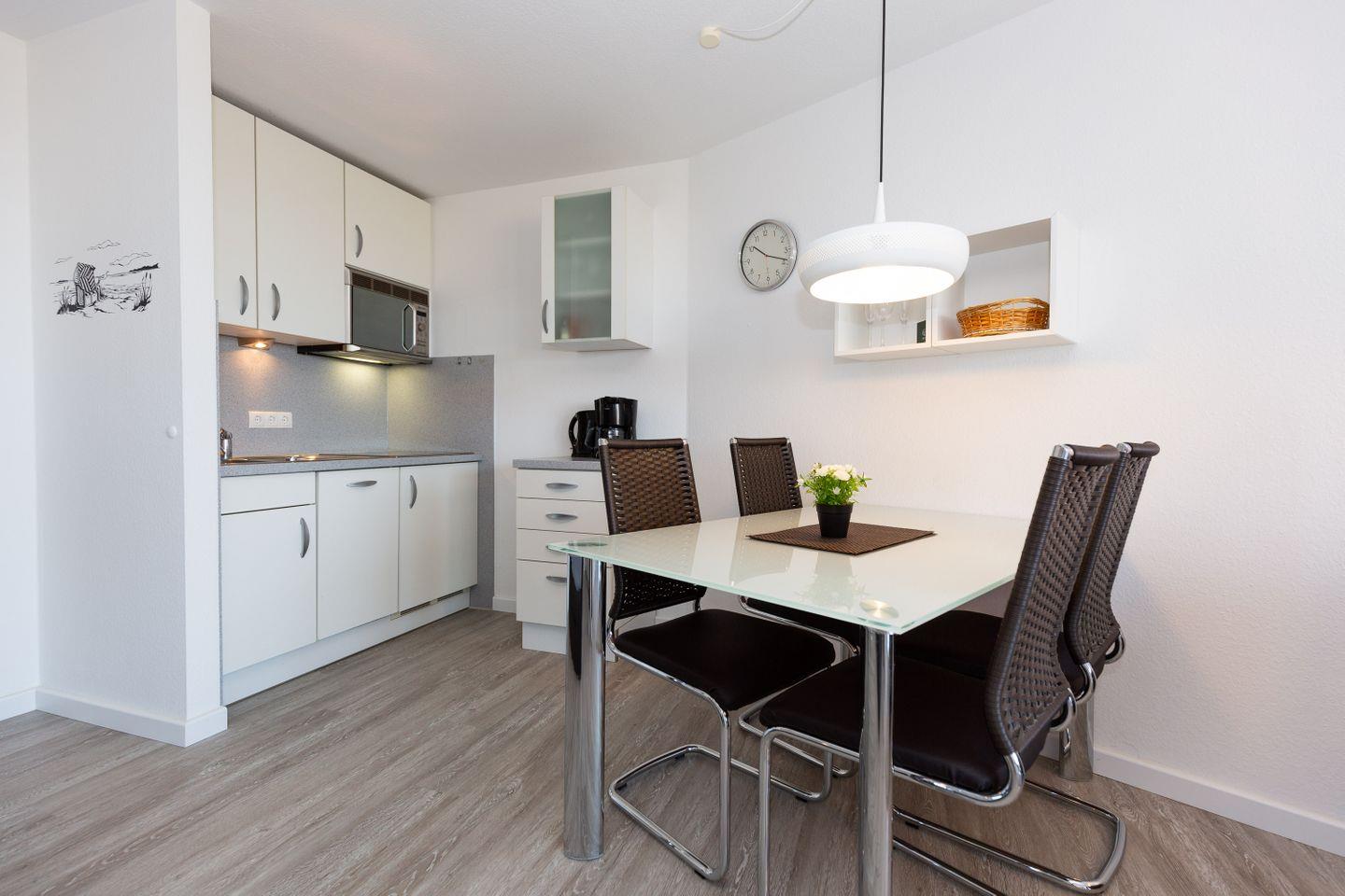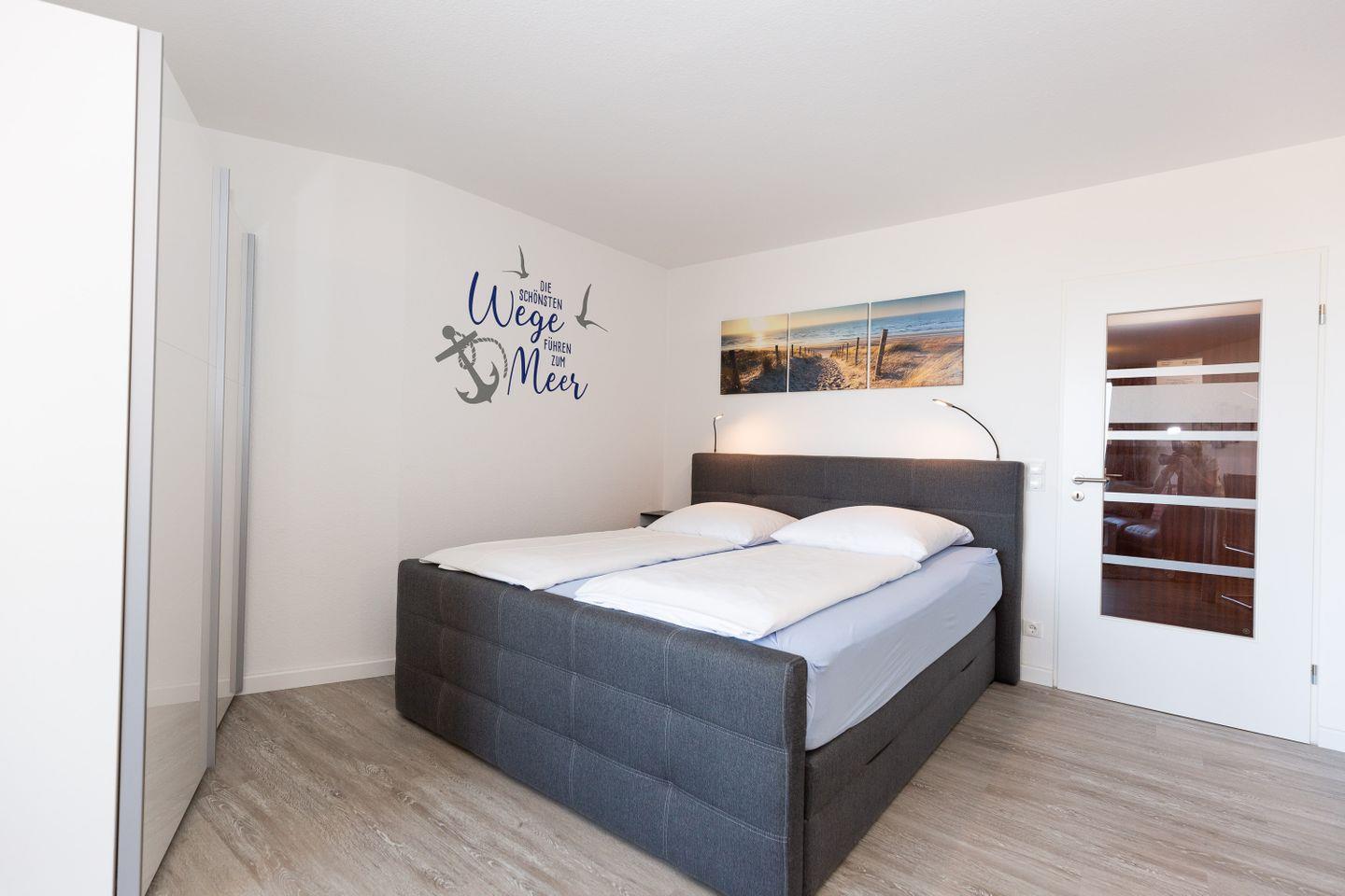 Haus "Lord Nelson", Typ 2, App.-Nr. "302", bis 4 Personen, 3. Etage, ca. 40 qm Größe, Westseite (Meerblick Richtung Neuwerk), Wohnbereich mit Boxspringbett mit Wendematratzen H2 und H3, separates kleines Schlafzimmer mit Etagenbett, Dusche/WC, Küchenzeile mit Geschirrspüler und Mikrowelle, Balkon, Kabel-TV, kostenl. W-Lan Zugang im App., Außenstellplatz, Haustiere sind nicht gestattet, Strandkorb im Sommer 2026.