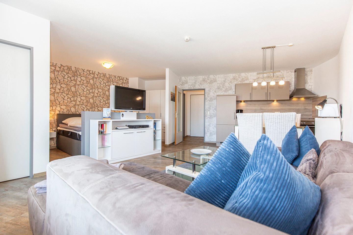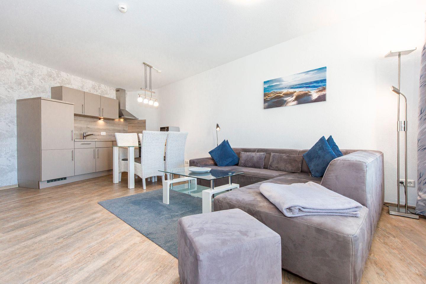 Die ca. 55 m² große Ferienwohnung bietet Platz für bis zu 4 Urlaubsgäste, verbringen Paare oder Familien ihren Urlaub an der Nordsee. Die moderne Einrichtung zusammen mit freundlichen Blau und Grautönen kreieren eine Wohlfühlatmosphäre. Neben der kostenlosen Wellnessanlage im Haus erwartet unsere Urlaubsgäste eine traumhafte Lage in direkter Strandnähe. Die Cuxhavener Innenstadt mit zahlreichen Ausflugszielen ist ebenfalls schnell erreichbar.