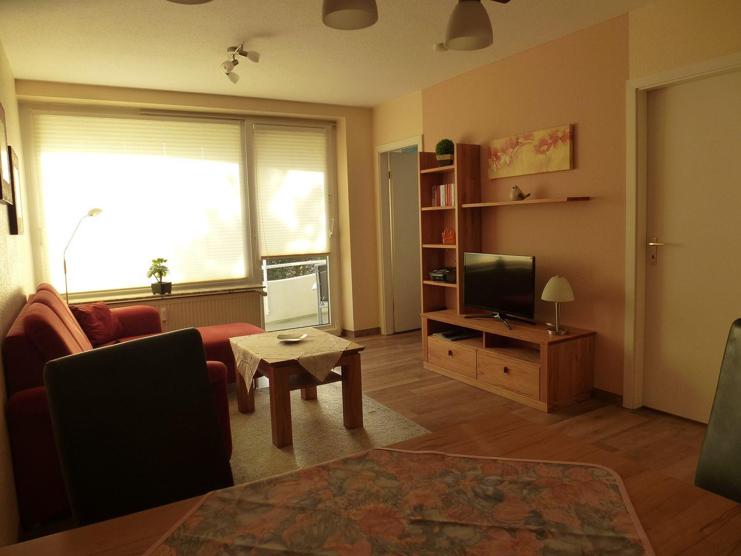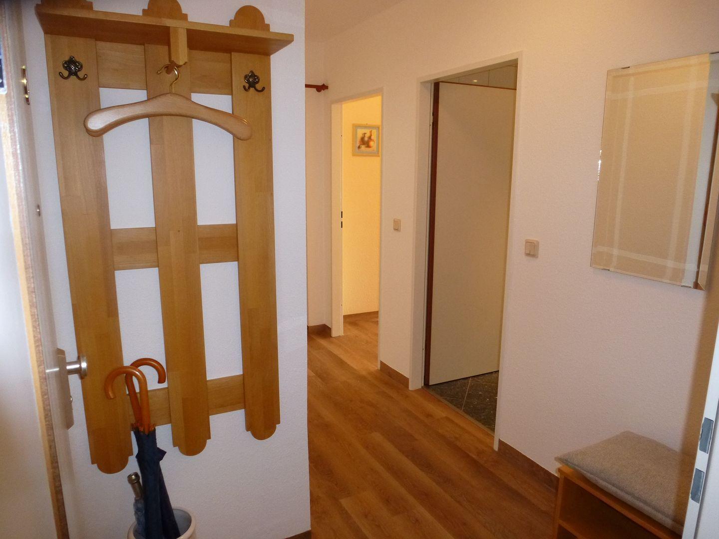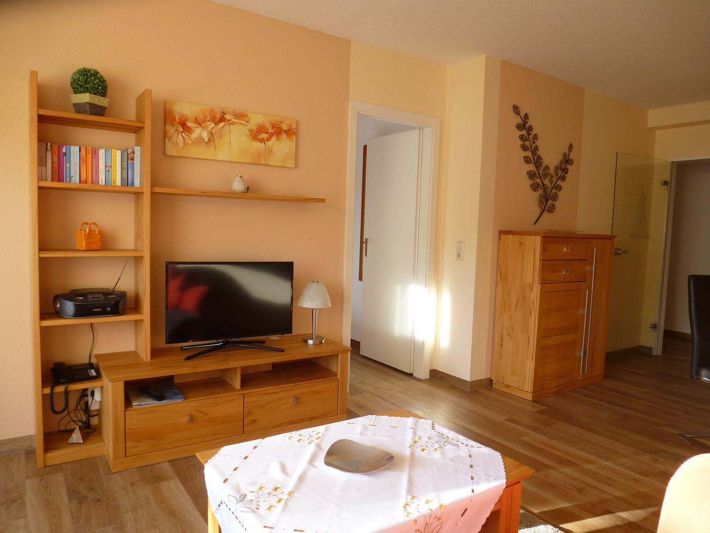 Haus "Trafalgar", Typ B, App.-Nr. 128, bis 2 Pers., 1.Etage, ca. 46 qm, Südseite (ohne Meerblick), Schlafzimmer mit Doppelbett, Küchenzeile mit 4-Platten-Ceranfeld, Geschirrspüler und Mikrowelle, Dusche/WC, Föhn, Balkon, Flatscreen-TV, Kabel-TV, CD-Spieler, W-Lan im App, Tiefgaragenstellplatz, Haustiere sind nicht gestattet, Nichtraucherwohnung.