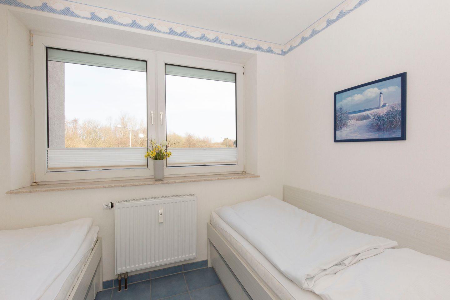 Haus "Lord Nelson", Typ 1, App.-Nr. "120", bis 4 Personen, 1. Etage, ca. 43 qm, Blick Richtung Weltschifffahrtsweg (ohne Meerblick/Richtung Elbe), Wohnbereich mit Schrankbett, separates Schlafzimmer mit zwei Einzelbetten, Dusche/WC, Küchenzeile mit Geschirrspüler, 2-Platten-Ceranfeld und Mikrowelle, Balkon, Telefon, Kabel-TV (Flat-Screen),kostenl. W-Lan Zugang im App., Tiefgaragenstellplatz, Haustiere sind nicht erlaubt, Nichtraucherwohnung, Strandkorb im Sommer 2025.