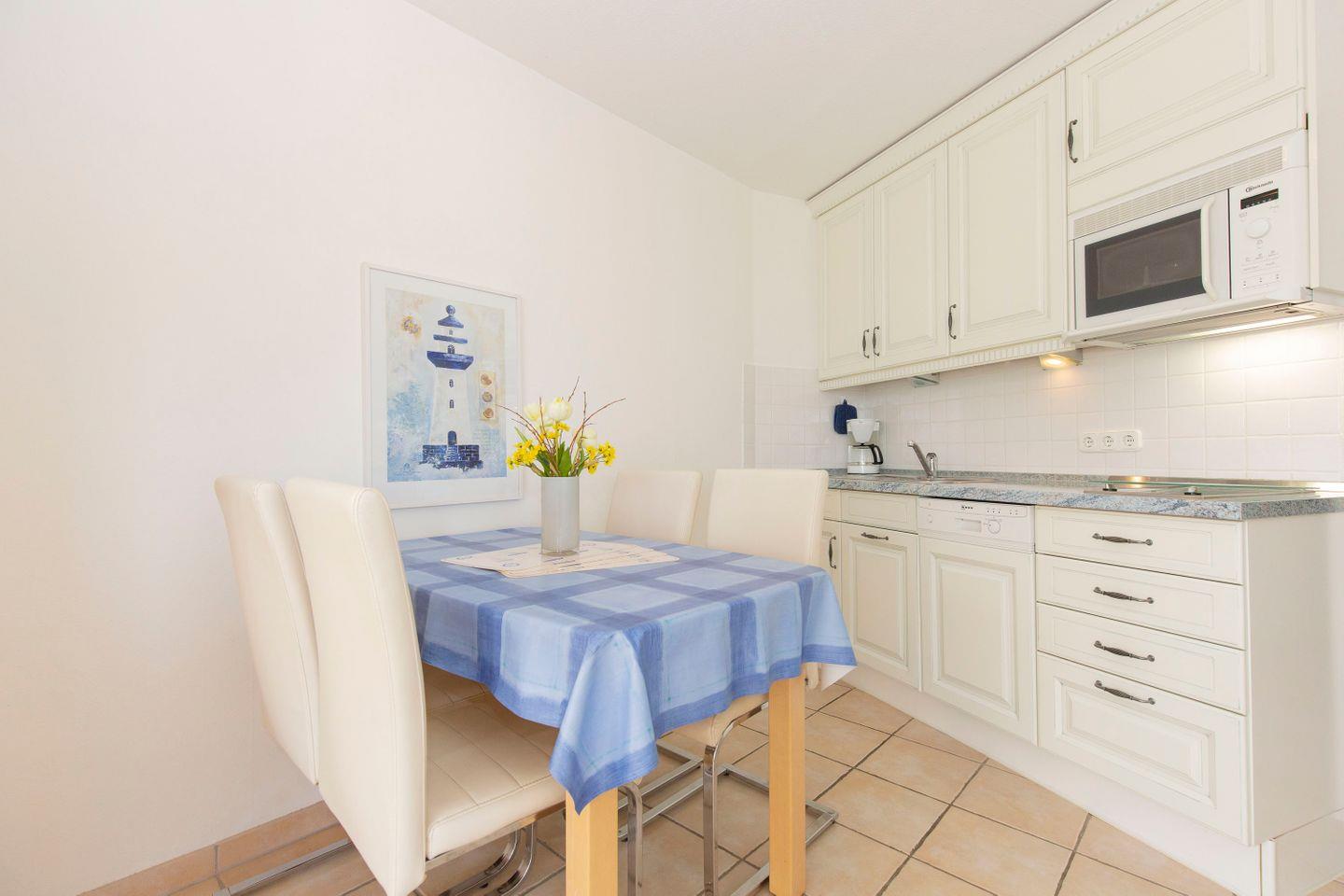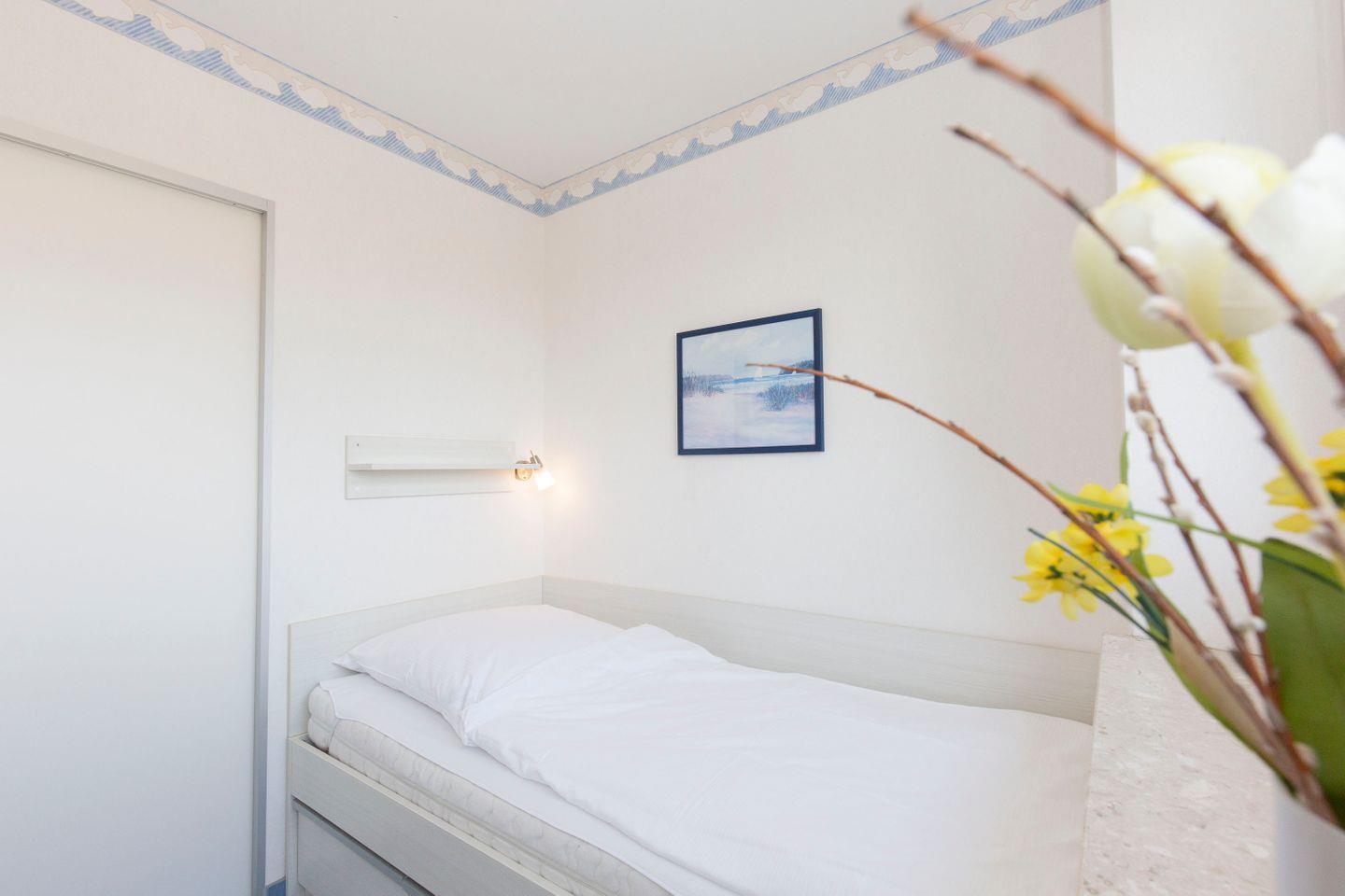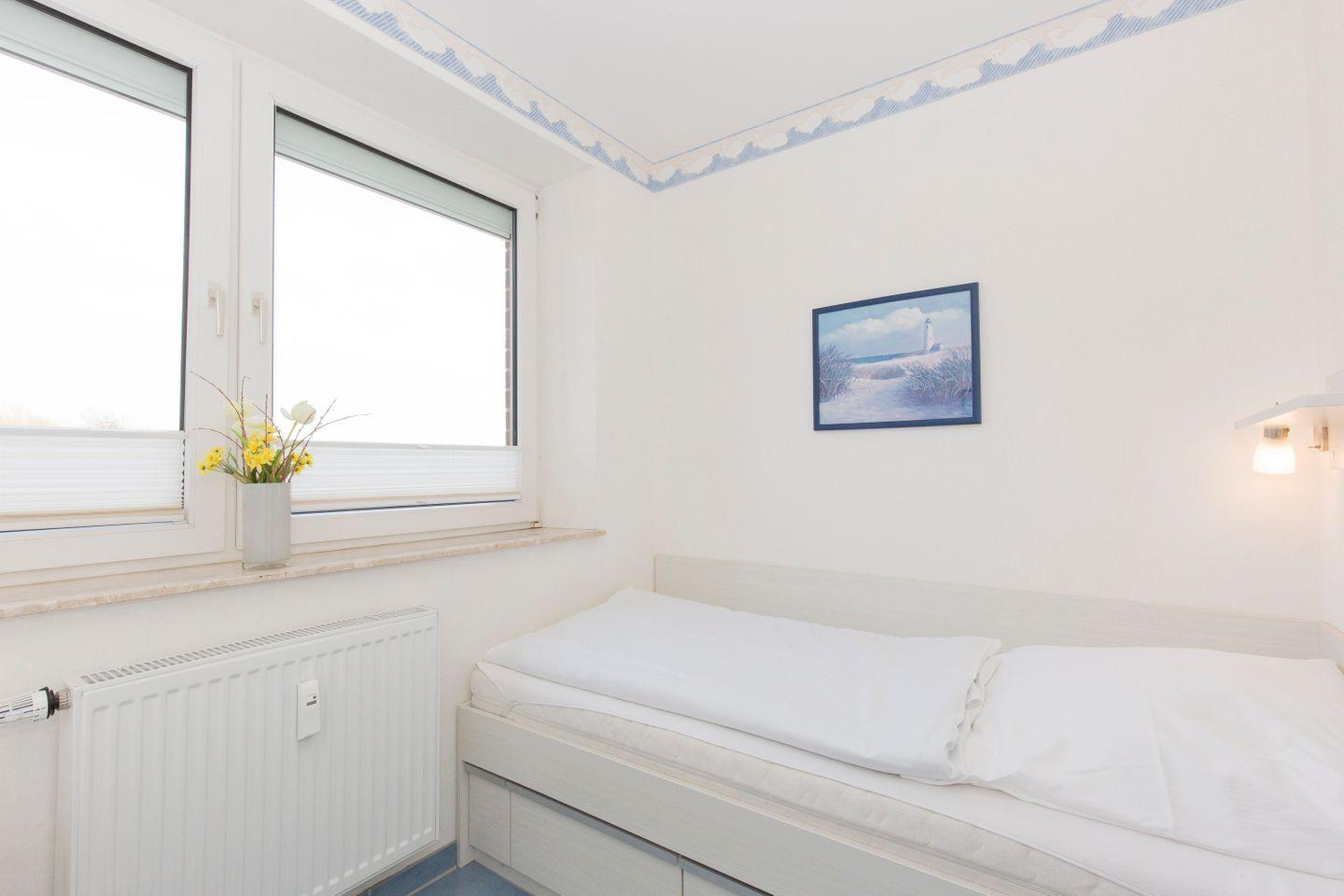 Haus "Lord Nelson", Typ 1, App.-Nr. "120", bis 4 Personen, 1. Etage, ca. 43 qm, Blick Richtung Weltschifffahrtsweg (ohne Meerblick/Richtung Elbe), Wohnbereich mit Schrankbett, separates Schlafzimmer mit zwei Einzelbetten, Dusche/WC, Küchenzeile mit Geschirrspüler, 2-Platten-Ceranfeld und Mikrowelle, Balkon, Telefon, Kabel-TV (Flat-Screen),kostenl. W-Lan Zugang im App., Tiefgaragenstellplatz, Haustiere sind nicht erlaubt, Nichtraucherwohnung, Strandkorb im Sommer 2026.