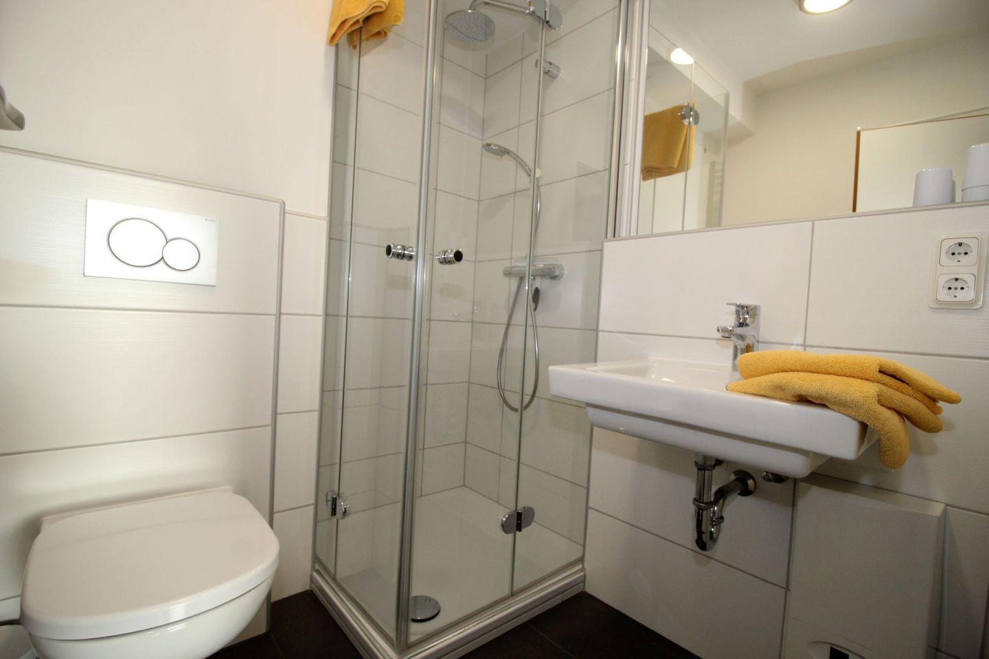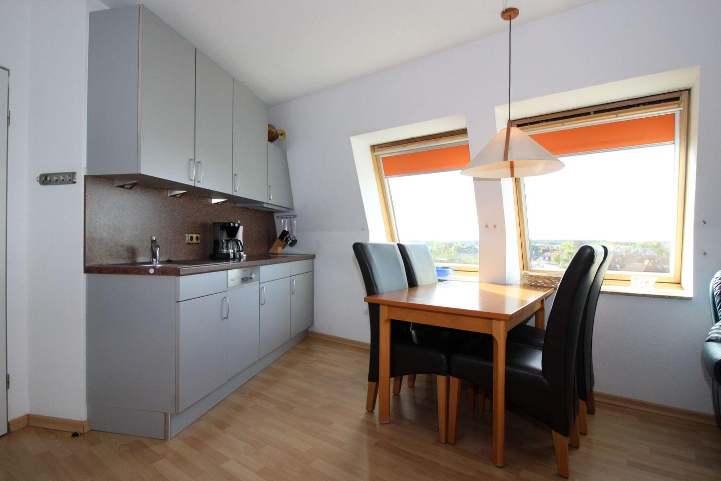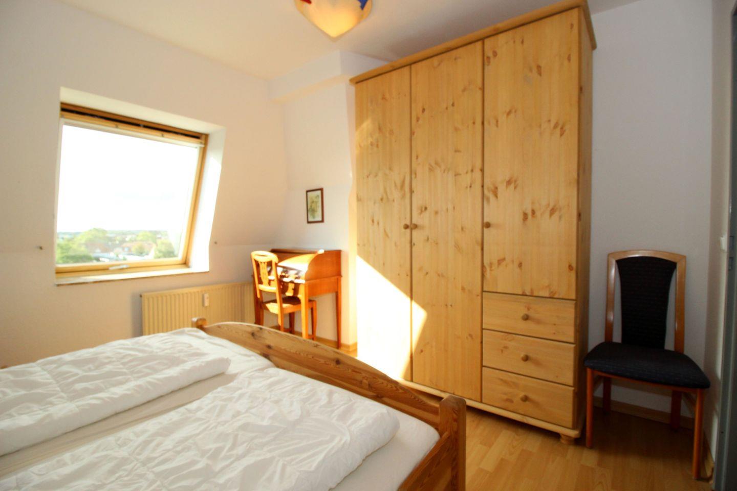 Haus "Trafalgar", Typ B, App.-Nr. 427, bis 4 Personen, 4. Etage, ca. 56 qm, Westseite (Meerblick), Wohn/Schlafraum mit Schrankbett, separates Schlafzimmer mit Doppelbett, Küchenzeile mit Ceranfeld, Geschirrspüler, Dusche/WC, Balkon, Kabel-TV, kostenl. W-Lan im App, Nichtraucherwohnung, Haustiere sind nicht gestattet, Tiefgaragenstellplatz, Strandkorb im Sommer 2026.