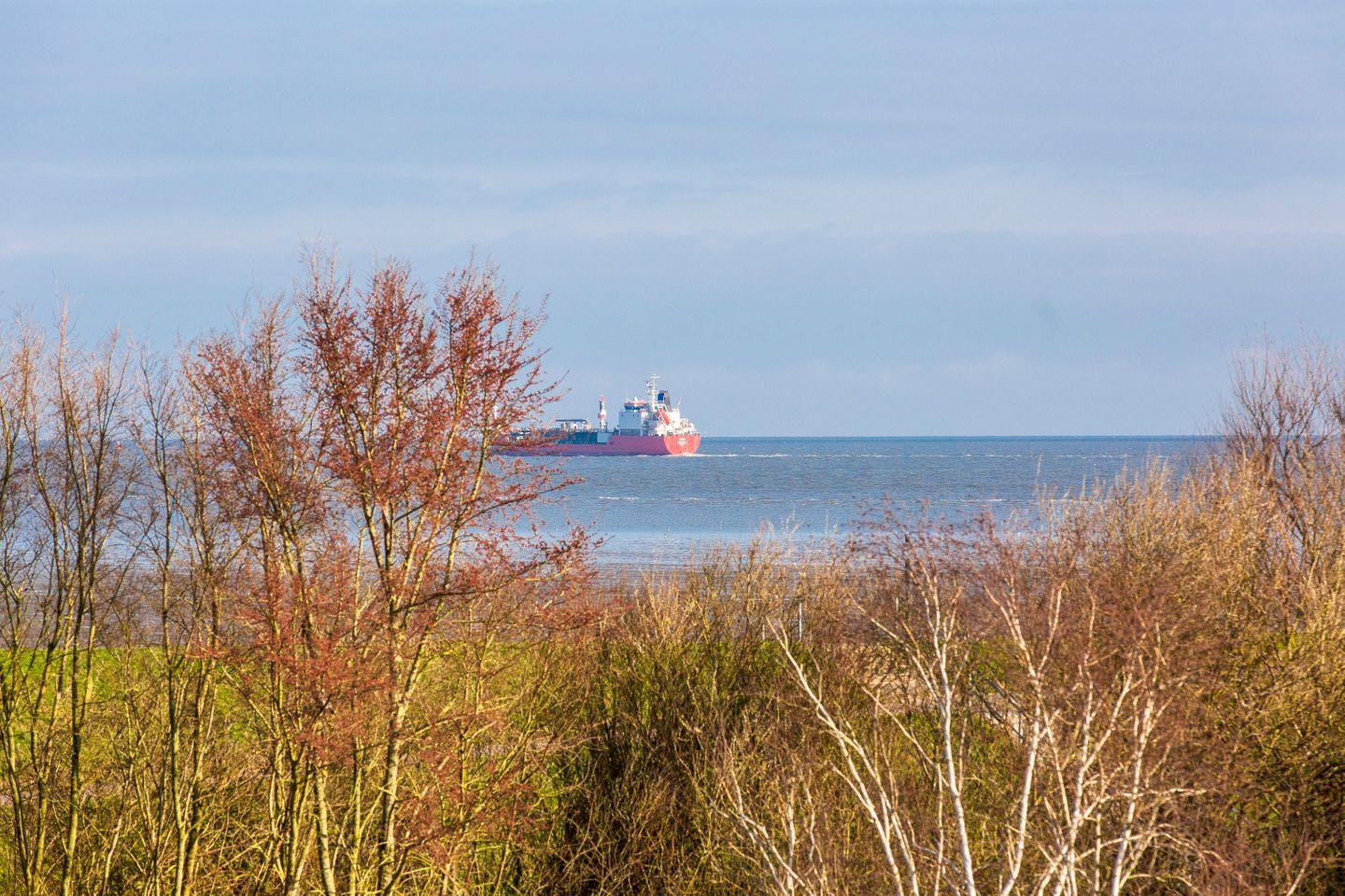 Die Loggia entzückt mit Blick auf Nordsee und Elbmündung. Hier können sich unsere Urlaubsgäste zurücklehnen und die passierenden Schiffe beobachten.