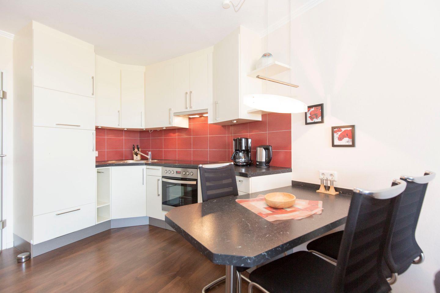 Haus Lord Nelson, Typ 2, Appartement 204, bis 3 Personen, 2. Etage, ca. 40 qm Wohnungsgröße, Weltnaturerbe Wattenmeer (ohne Meerblick/Richtung Neuwerk), Wohnbereich mit Schrankbett, sep. kleines Schlafzimmer mit Einzelbett, Dusche/WC, Küchenzeile mit Backofen, Geschirrspüler, 4-Platten-Ceranfeld, Mikrowelle, Balkon, Kabel-TV, DVD-Player, kostenl. W-Lan Zugang im App., Tiefgaragenstellplatz, Haustiere sind nicht gestattet, Nichtraucher, Strandkorb im Sommer 2025