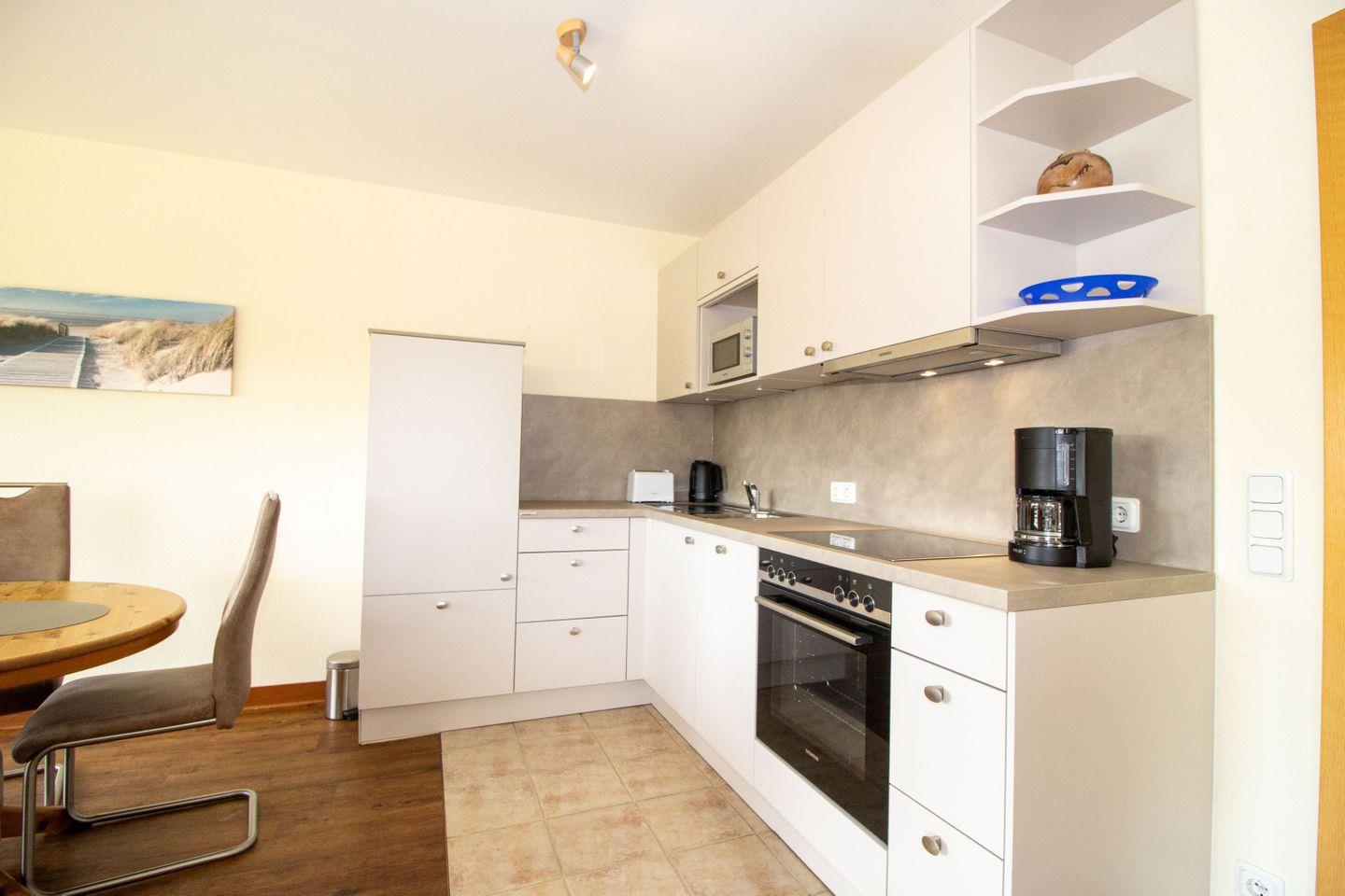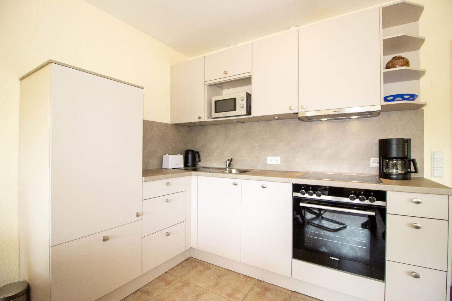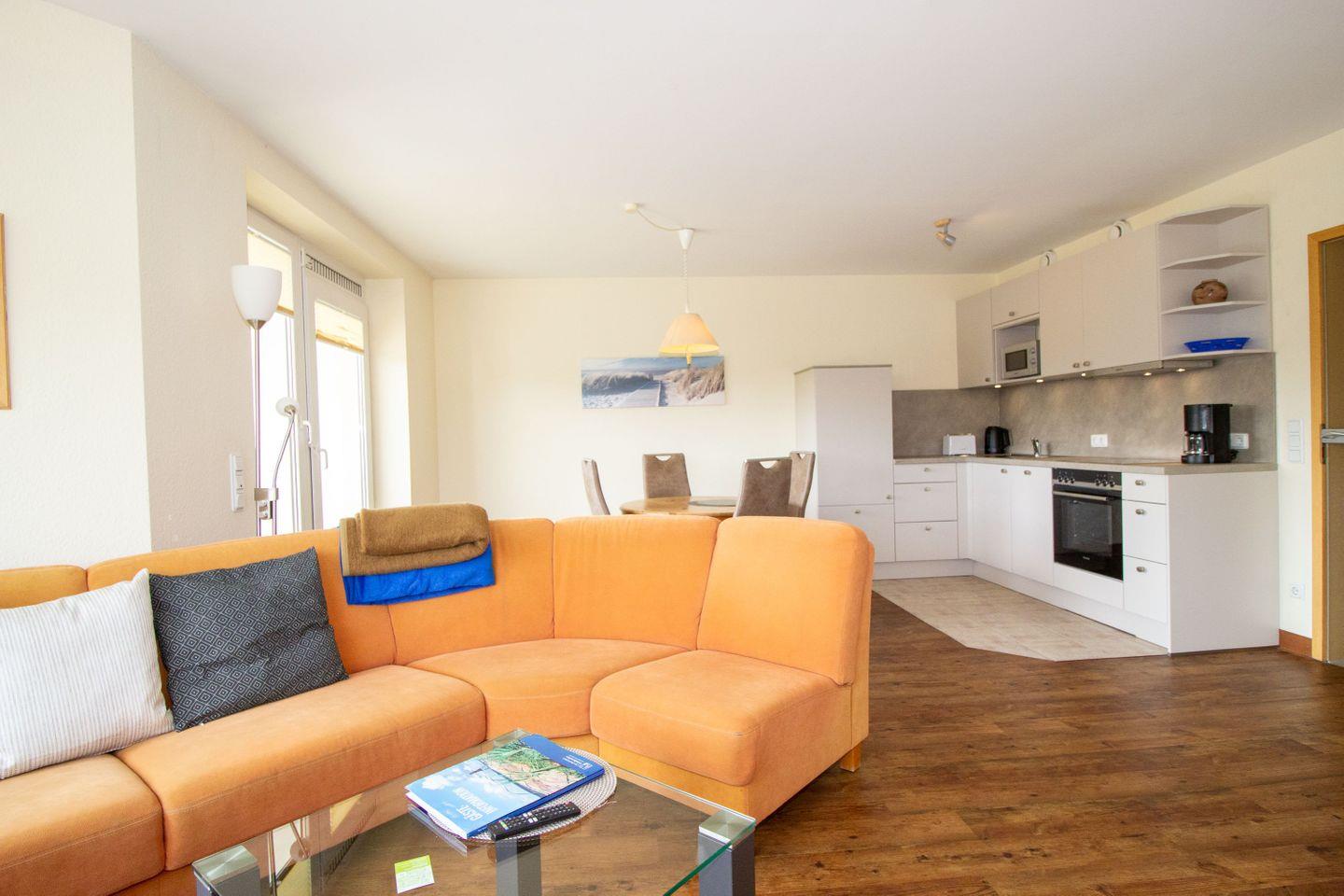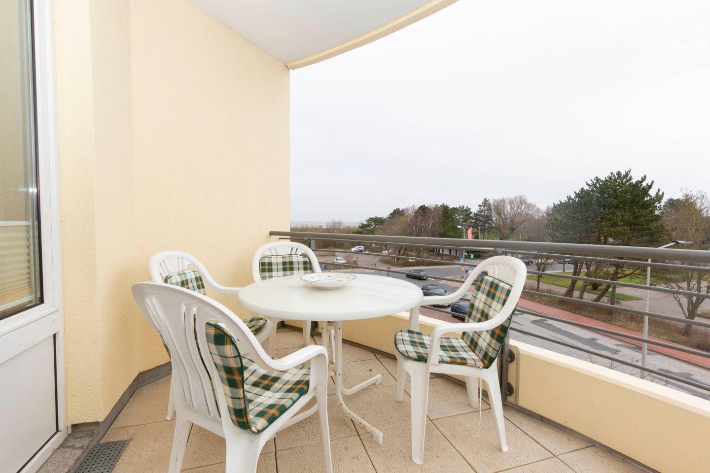 Haus "Kurpark-Residenz", Typ D2, Appartement-Nr. "210", bis 4 Personen, 2. OG, Nord/Ostseite (Seesicht Richtung "Elbe"), ca. 65 m² Wohnungsgröße, Wohnzimmer, separates Schlafzimmer mit Doppelbett, separates Kinderzimmer mit Einzelbetten (innenliegend), Dusche/WC, neue Küchenzeile mit Backofen, Geschirrspüler und Mikrowelle, Loggia, SAT-TV, kostenl. W-Lan Zugang im App., Tiefgaragenstellplatz, Haustiere sind nicht gestattet, Strandkorb im Sommer 2026.