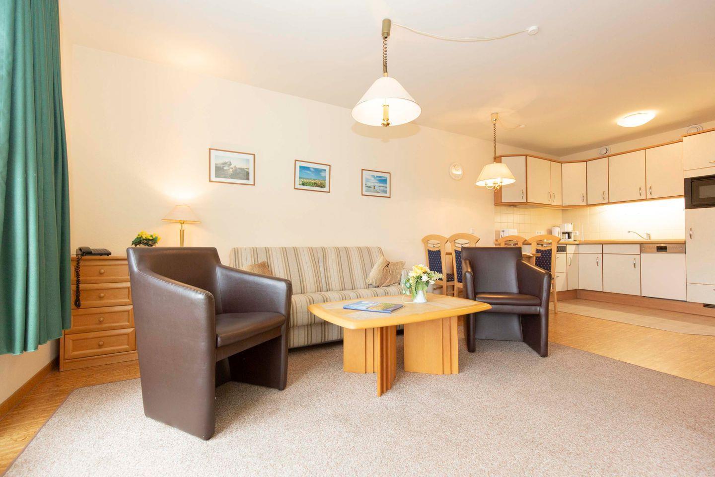 Unsere Gäste der Kurpark-Residenz können das hauseigene Schwimmbad samt Wellnessbereich kostenlos nutzen. In den Sommermonaten 2026 steht den Gästen dieser FeWo ein eigener Strandkorb zur Verfügung. Falls im Urlaub Fragen auftauchen, steht unser Team täglich an der Rezeption der Kurpark-Residenz persönlich zur Verfügung. Ein kostenloser Tiefgaragenplatz gehört ebenfalls zur Ferienwohnung.