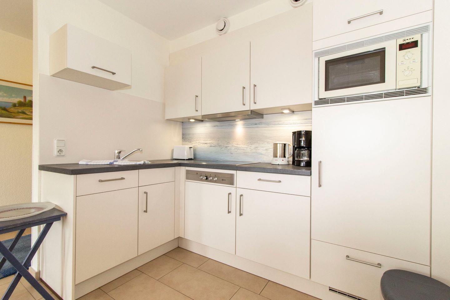 Haus "Kurpark-Residenz", Typ D2, App-Nr. "208", bis 4 Pers., 2. OG, Ostseite (Richtung "Kugelbake"), ca. 68 m² Größe, Wohnzimmer, sep. Schlafzimmer mit Doppelbett, sep. Kinderzimmer mit Einzelbetten (innenliegend), Dusche/WC, neue Küche mit Mikrowelle und Geschirrspüler, Loggia, Telefon, SAT-TV, Tiefgaragenstellplatz, WLAN-Anschluss im App., Nichtraucher, Haustiere sind nicht gestattet, Strandkorb im Sommer 2026.