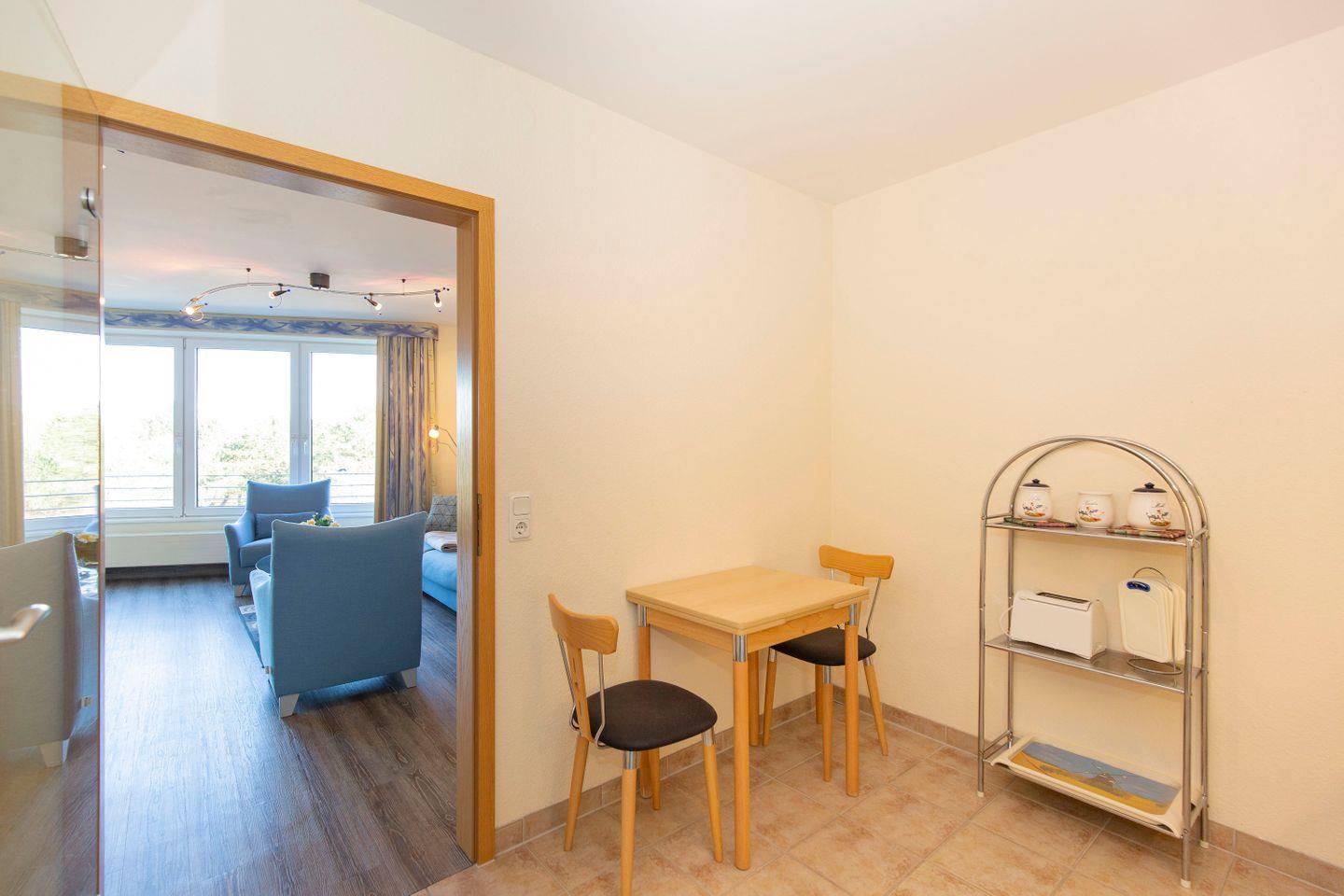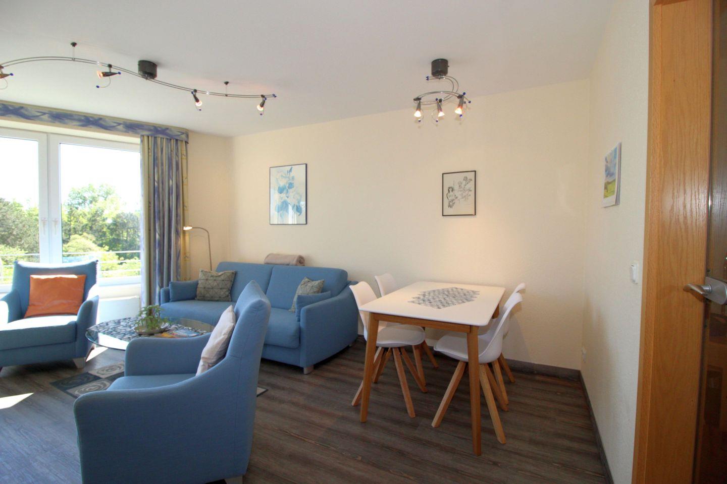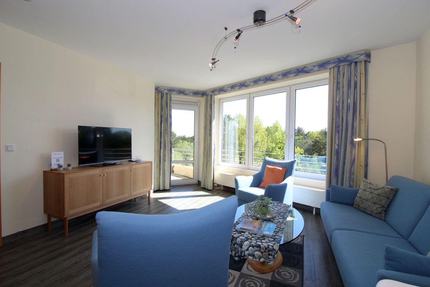 Haus "Kurpark-Residenz", Typ C, App.-Nr. "207", bis 4 Personen, 2. OG, Ostseite (Richtung "Kugelbake"), ca. 59 m², Wohnzimmer mit Schlafcouch und Verdunkelungsgardinen, sep. Schlafzimmer mit Doppelbett und Verdunkelungsgardinen, Dusche/WC, zwei Waschbecken, sep. Küche mit Mikrowelle und Geschirrspüler, Loggia, SAT-TV, WLAN, Tiefgaragenstellplatz, Nichtraucher, Haustiere sind nicht gestattet, Strandkorb im Sommer 2026.