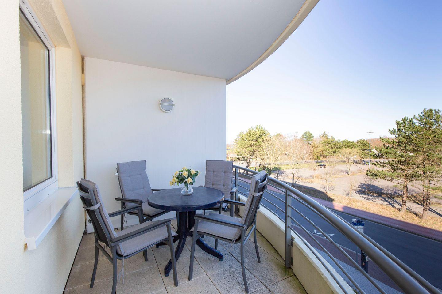 Gemütliche 59m² Ferienwohnung in Cuxhaven-Döse mit Balkon, Sauna und Schwimmbad für erholsame Urlaubstage.