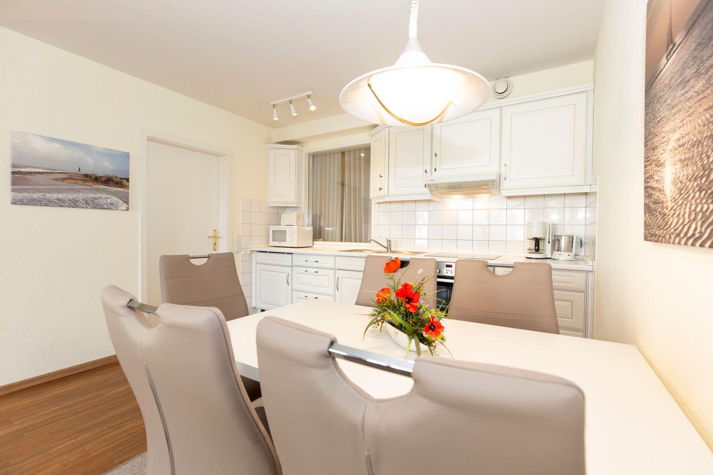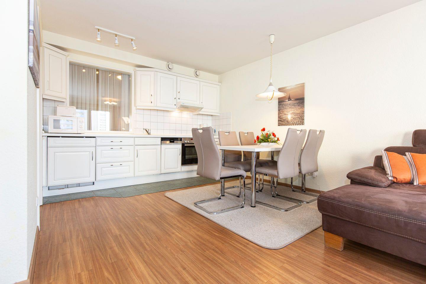 Urlaub an der Nordsee mit der ganzen Familie: Diese 3-Zimmer-Ferienwohnung (Raucherfreundlich) in Cuxhaven macht es möglich kein Problem. Auf 69 m² finden bis zu 5 Urlaubsgäste Platz. Das zu Hause auf Zeit punktet mit stilvoller Einrichtung, hellen Räumen und viel Platz zum Wohlfühlen. Unsere Urlaubsgäste verbringen ihren Urlaub in Cuxhaven in dieser FeWo in direkter Strandnähe. Das Highlight ist der hauseigene Wellnessbereich samt Schwimmbad, Whirlpool und Saunen. Die Nutzung ist für unsere Gäste absolut kostenlos. So macht Urlaub an der Nordsee Spaß.