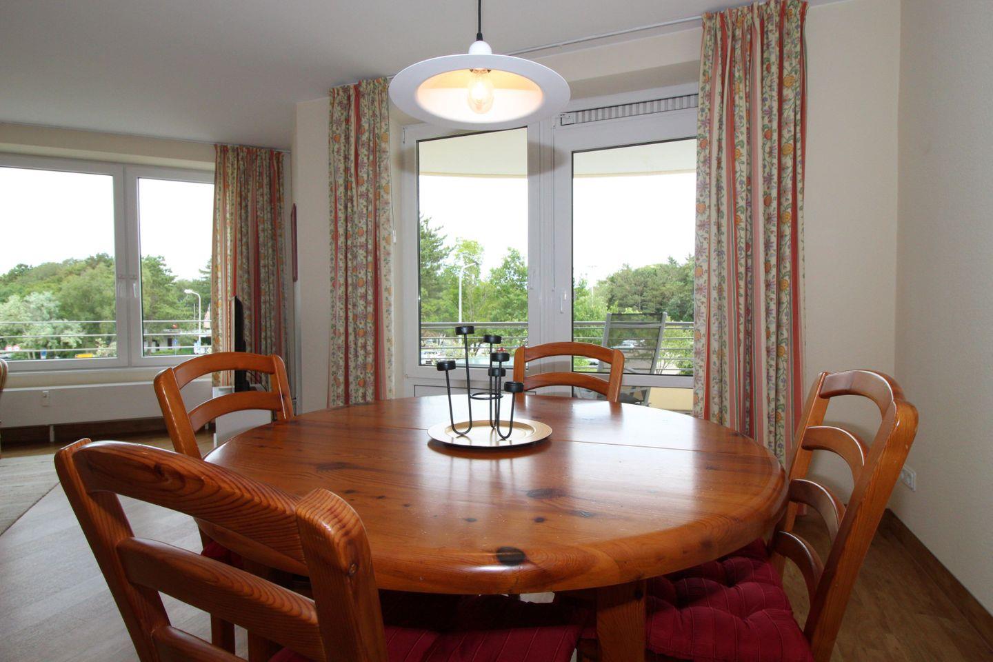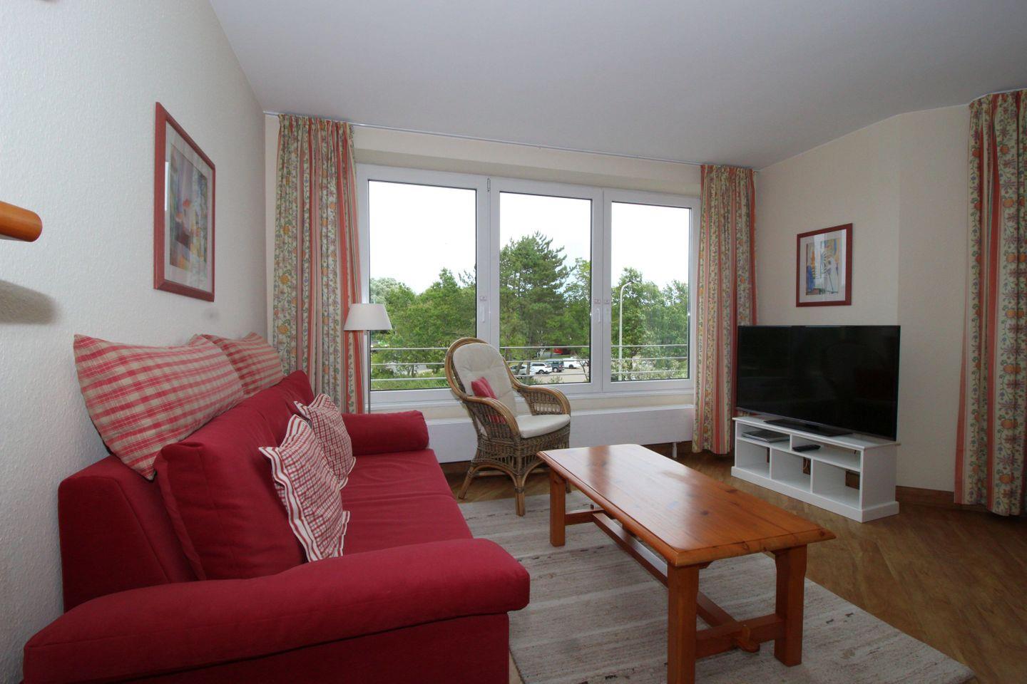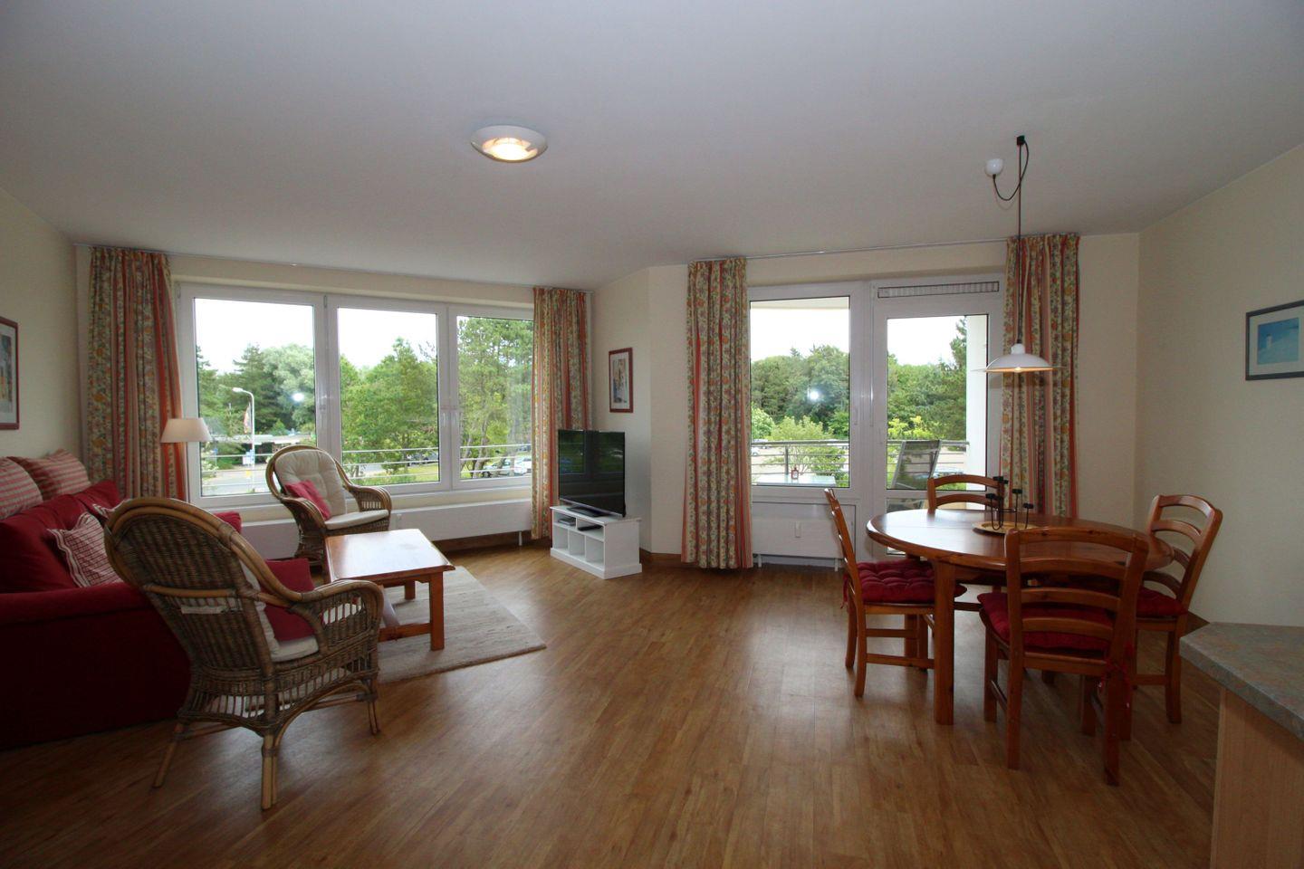 Haus "Kurpark-Residenz", Typ D1, App-Nr. "110", bis 4 Personen, Nord-/Ostseite (Richtung "Kugelbake"), ca. 65 m² Größe, Wohnzimmer mit Schlafcouch, sep. Schlafzimmer mit Doppelbett, Dusche/WC, Gäste-WC, Küchenzeile mit Mikrowelle und Geschirrspüler, Loggia, SAT-TV, kostenl. W-Lan Zugang im App., Tiefgaragenstellplatz, Nichtraucher, Haustiere sind nicht gestattet, Strandkorb im Sommer 2026.