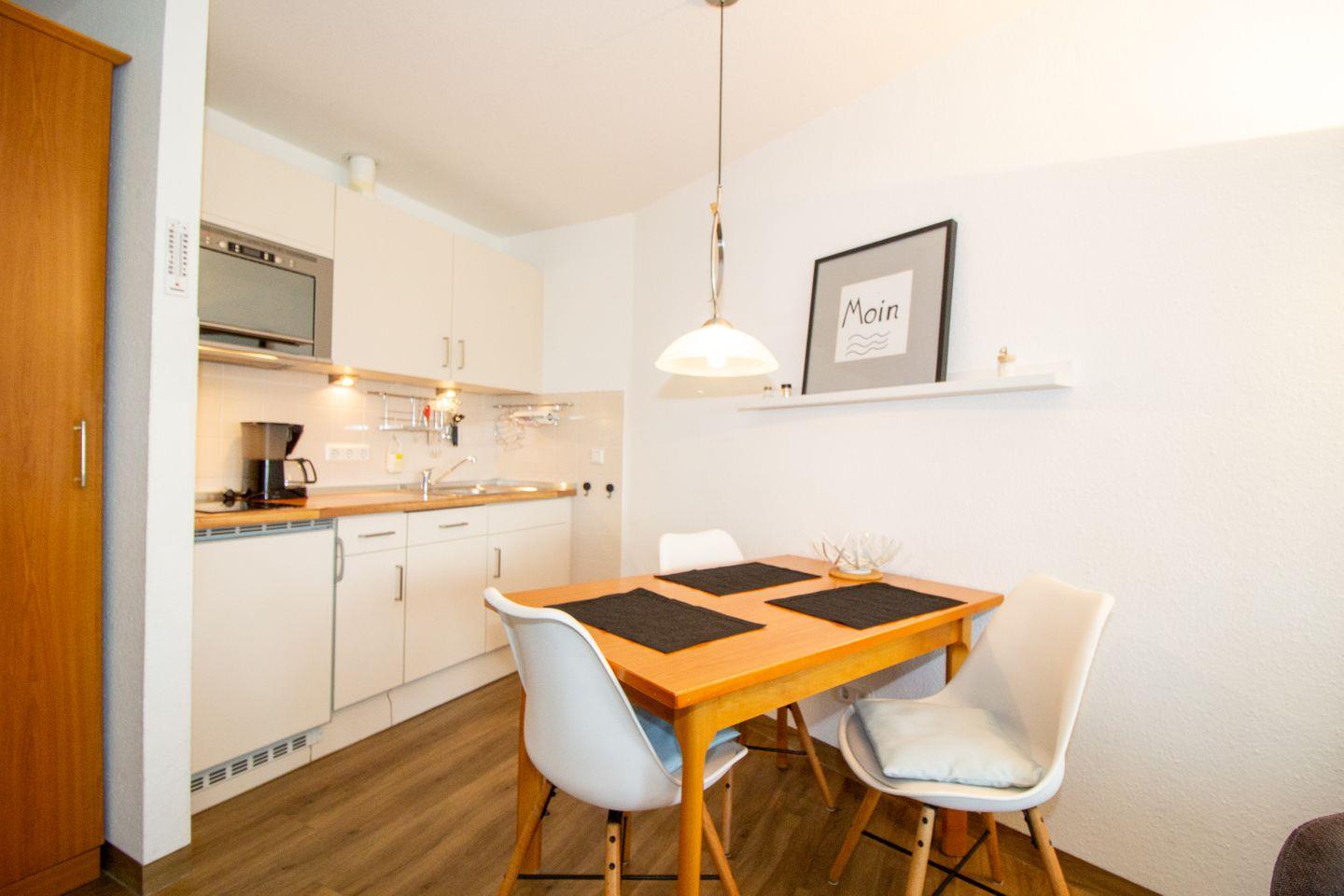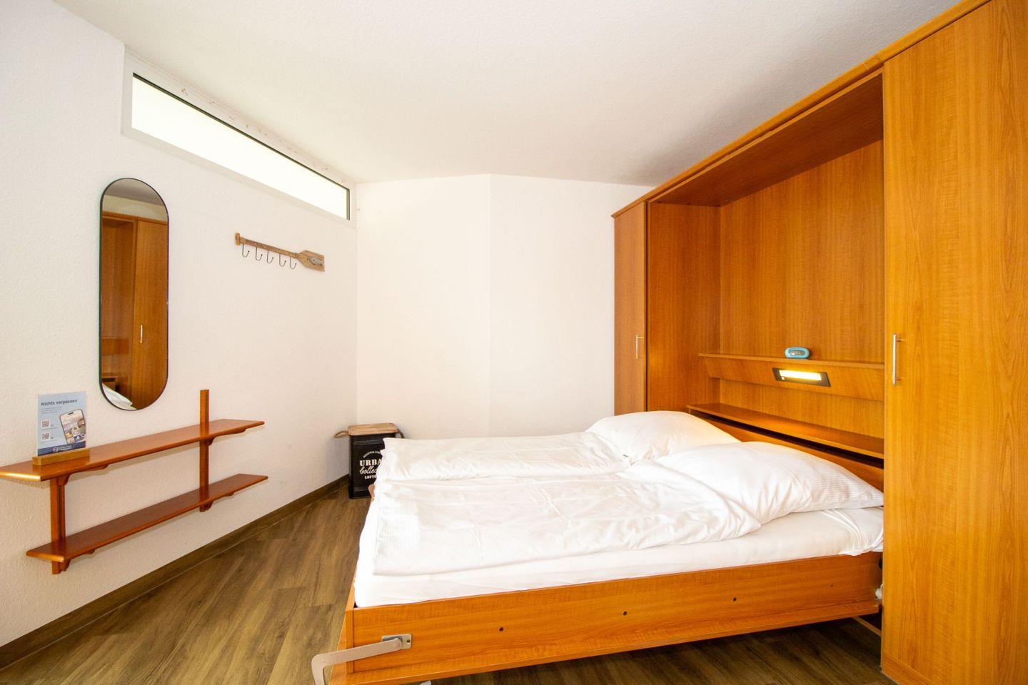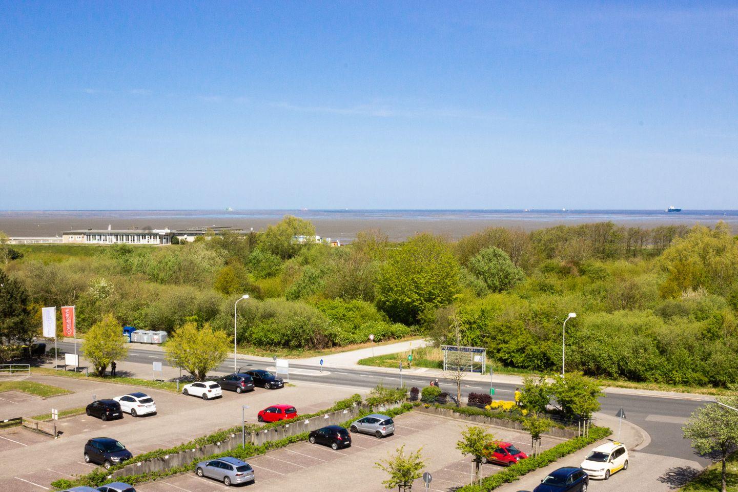 Haus "Trafalgar", Typ A-West, App.-Nr. "526", bis 3 Pers., 5. Etage, bis zur 4. Etage mit Fahrstuhl erreichbar, Westseite mit Meerblick Richtung Neuwerk (ohne Balkon), ca. 44 qm Größe, Wohn/Schlafraum mit Schrankbett, sep. Schlafzimmer mit Einzelbett, Küchenzeile mit Geschirrspüler und Mikrowelle, Vollbad/WC, Kabel-TV, Tiefgaragenstellplatz, Nichtraucherwohnung, Haustiere sind erlaubt.