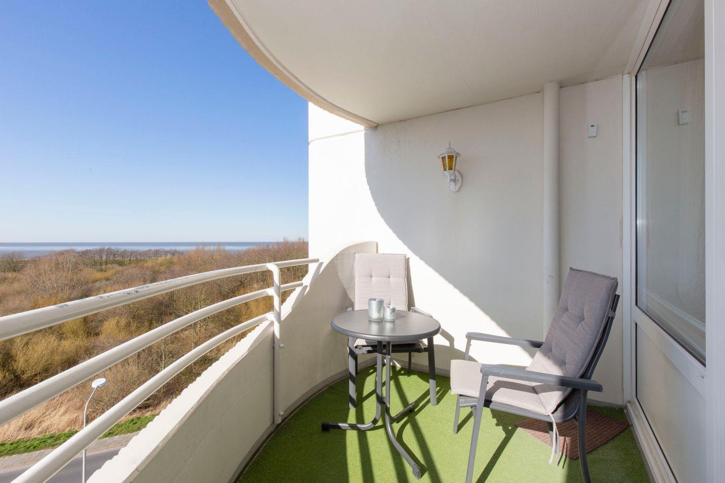 Der großzügige Balkon bietet einen wunderschönen Meerblick auf das Weltnaturerbe Wattenmeer und die Nordsee. Zudem eignet sich der Balkon optimal, um unter freiem Himmel auf den Balkonmöbeln zu frühstücken. So sieht ein optimaler Start in einen Urlaubstag an der Nordsee in Cuxhaven aus.