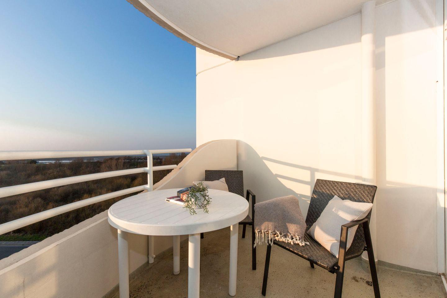 Mit Blick ins Grüne und auf die Nordsee bleibt auf diesem Balkon kein Wunsch offen. Die frische Nordseeluft können Sie hier beispielsweise bei einem Frühstück unter freiem Himmel genießen und dabei perfekt in den Tag starten.