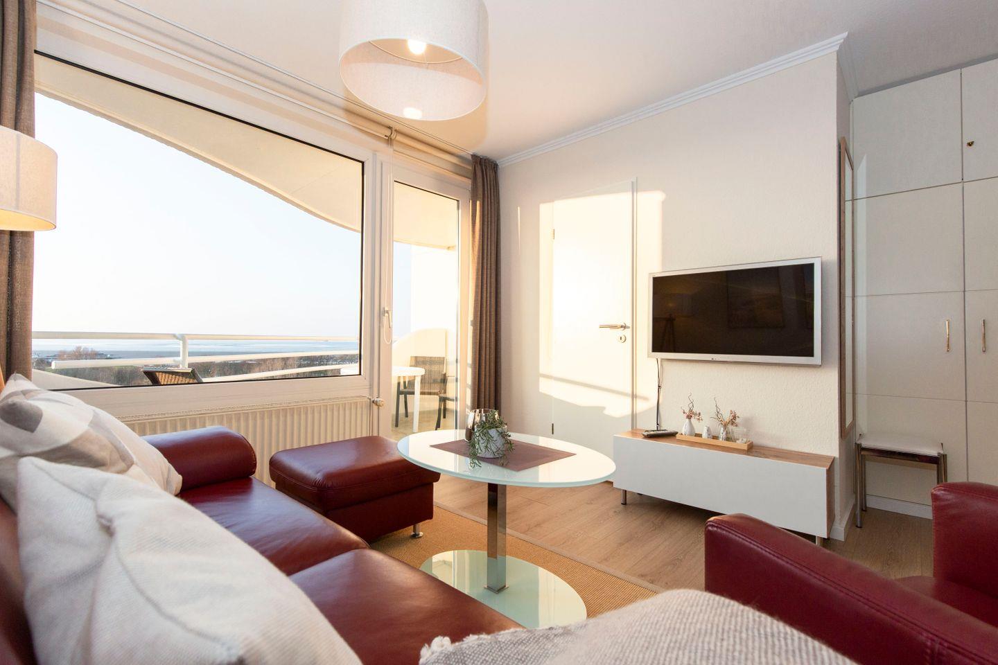 Diese 40 m² große Ferienwohnung eignet sich optimal für Paare oder kleine Familien. Die FeWo punktet mit großzügigen Räumen und einer eleganten, hellen Einrichtung. Ein Highlight ist der Balkon mit Blick auf die Nordsee in Richtung Neuwerk. Ein weiterer Bonuspunkt ist die optimale Ausgangslage für Fahrradtouren, Strand- und Stadtausflüge. Hier verbringen Sie einen Urlaub an der Nordsee in absoluter Top-Lage.