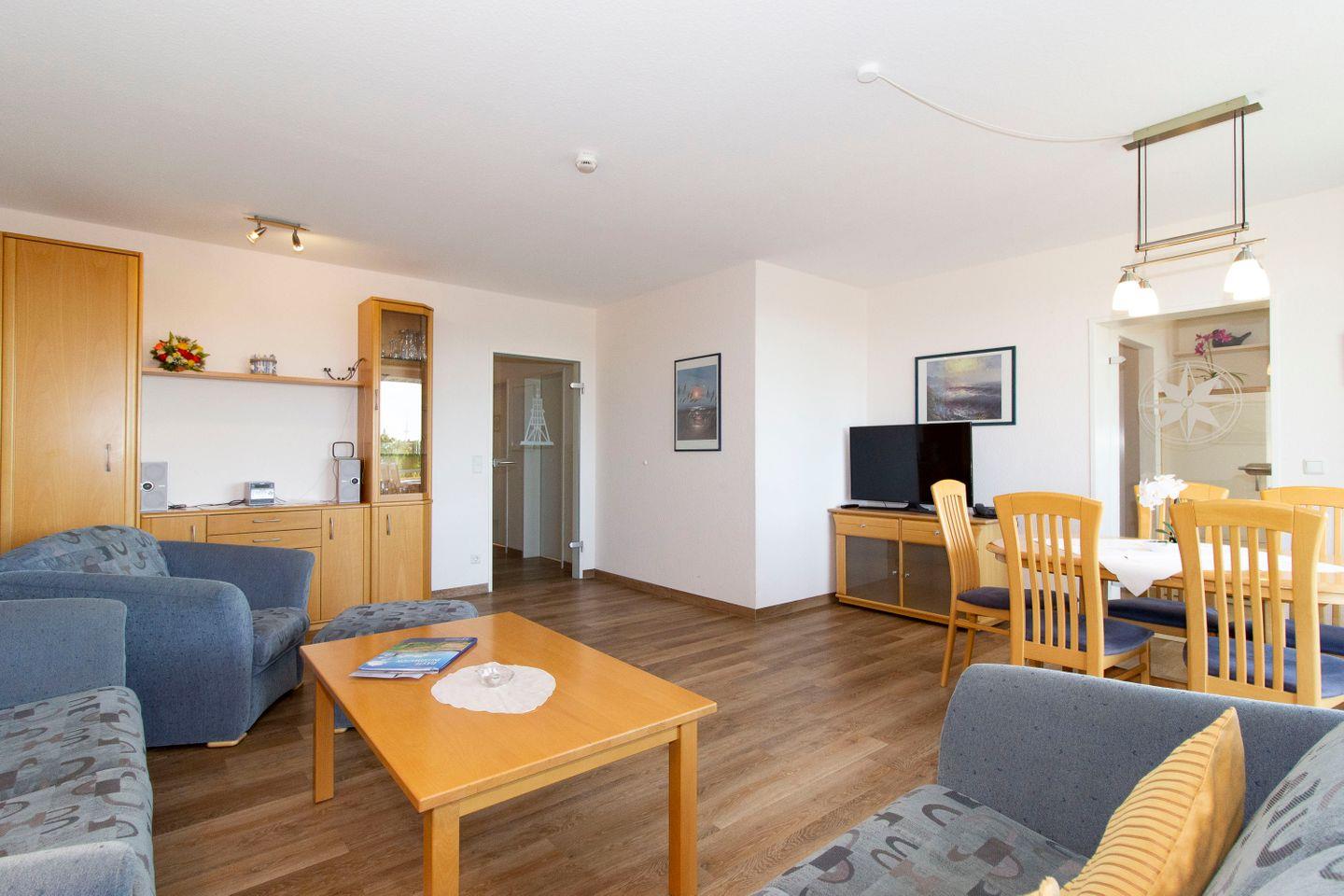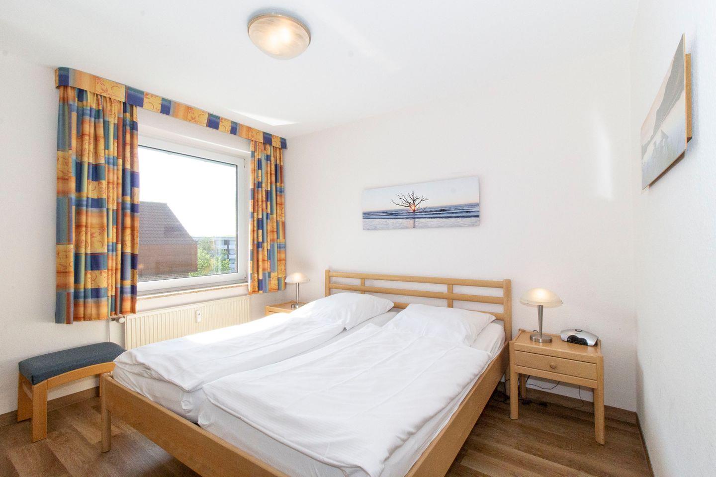 Haus "Trafalgar", Typ D, App.-Nr. 328, bis 6 Pers., 3. Etage, ca. 75 qm, Südseite (ohne Meerblick), , Wohn/Schlafraum mit Schlafcouch, Schlafzimmer mit Doppelbett, sep. Schlafzimmer mit zwei Einzelbetten, sep. Küche mit Ceranfeld, Geschirrspüler und Mikrowelle, Dusche/WC, Balkon, Telefon, Kabel-TV, W-Lan im App., Tiefgaragenstellplatz, Haustiere sind nicht gestattet, Strandkorb im Sommer 2025