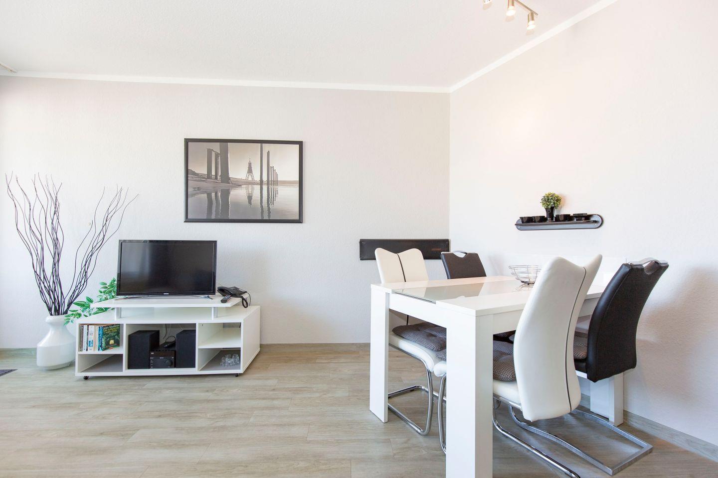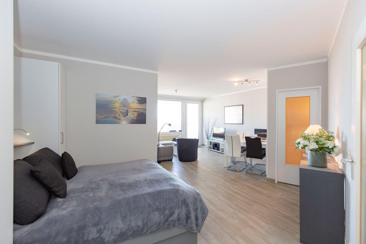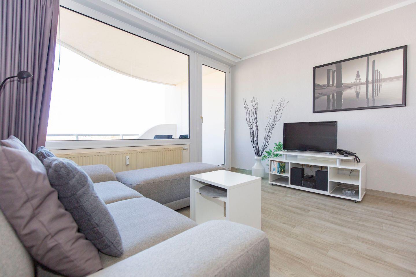 Moderne Ferienwohnung in Cuxhaven-Döse mit Meerblick, Balkon, Schwimmbad und Sauna, ideal für Familien und Paare.