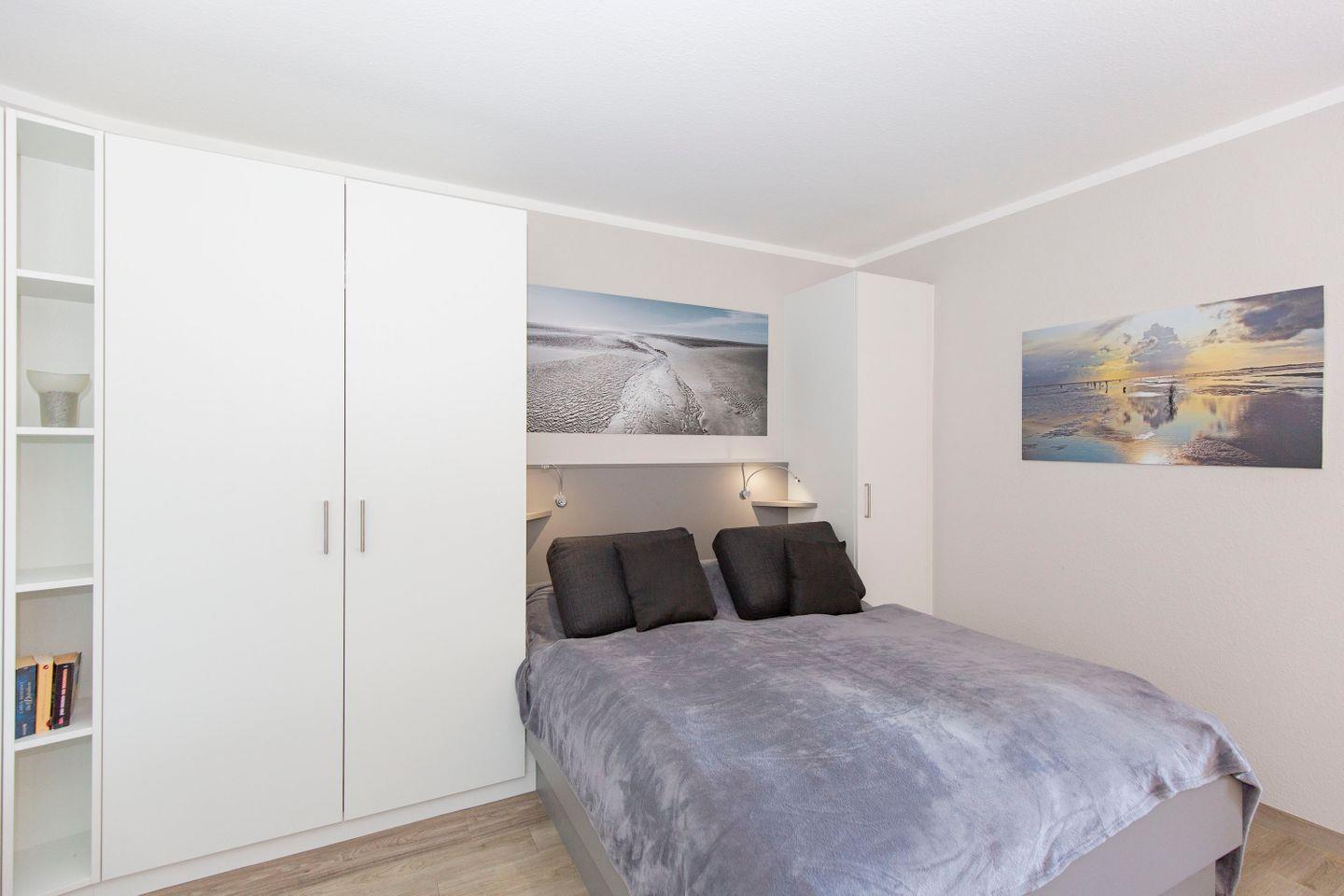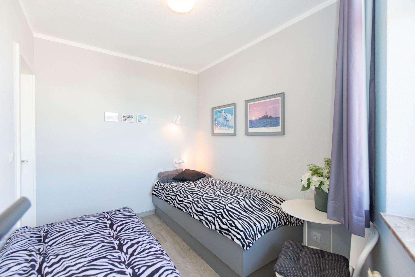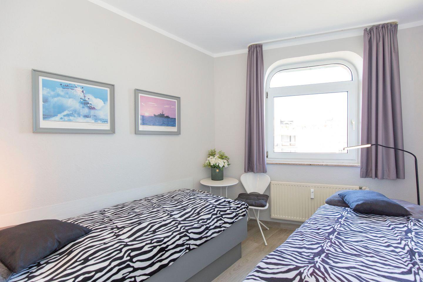 Haus "Trafalgar", Typ C, Appartement-Nr. 325, bis 4 Personen, 3.Etage, ca. 55 qm, Westseite (Meerblick), Wohn/Schlafraum mit Doppelbett, separates Schlafzimmer mit 2 Einzelbetten, Küchenzeile mit Mikrowelle, 4-Platten-Ceranfeld, Geschirrspüler, Dusche/WC, Balkon, Kabel-TV, WLAN im App., Tiefgaragenstellplatz, Nichtraucherappartement, keine Haustiere erlaubt, Strandkorb im Sommer 2026.