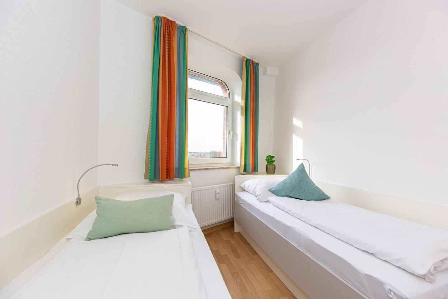 Haus "Trafalgar", Typ C, Appartement-Nr. 323, bis 4 Personen, 3.Etage, ca. 55 qm, Westseite (Meerblick), Wohn/Schlafraum mit Doppelbett, separates Schlafzimmer mit zwei Einzelbetten, Küchenzeile mit Mikrowelle, 4-Platten-Ceranfeld, Geschirrspüler, Dusche/WC, Balkon, Kabel-TV, kostenl. WLAN-Zugang im App., Tiefgaragenstellplatz, Nichtraucherappartement, keine Haustiere erlaubt, Strandkorb im Sommer 2025.
