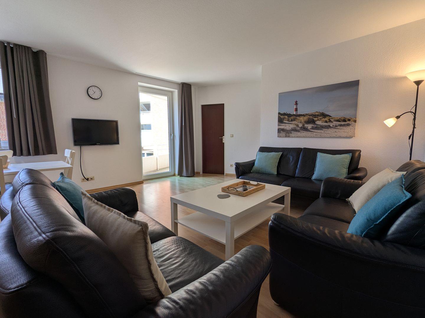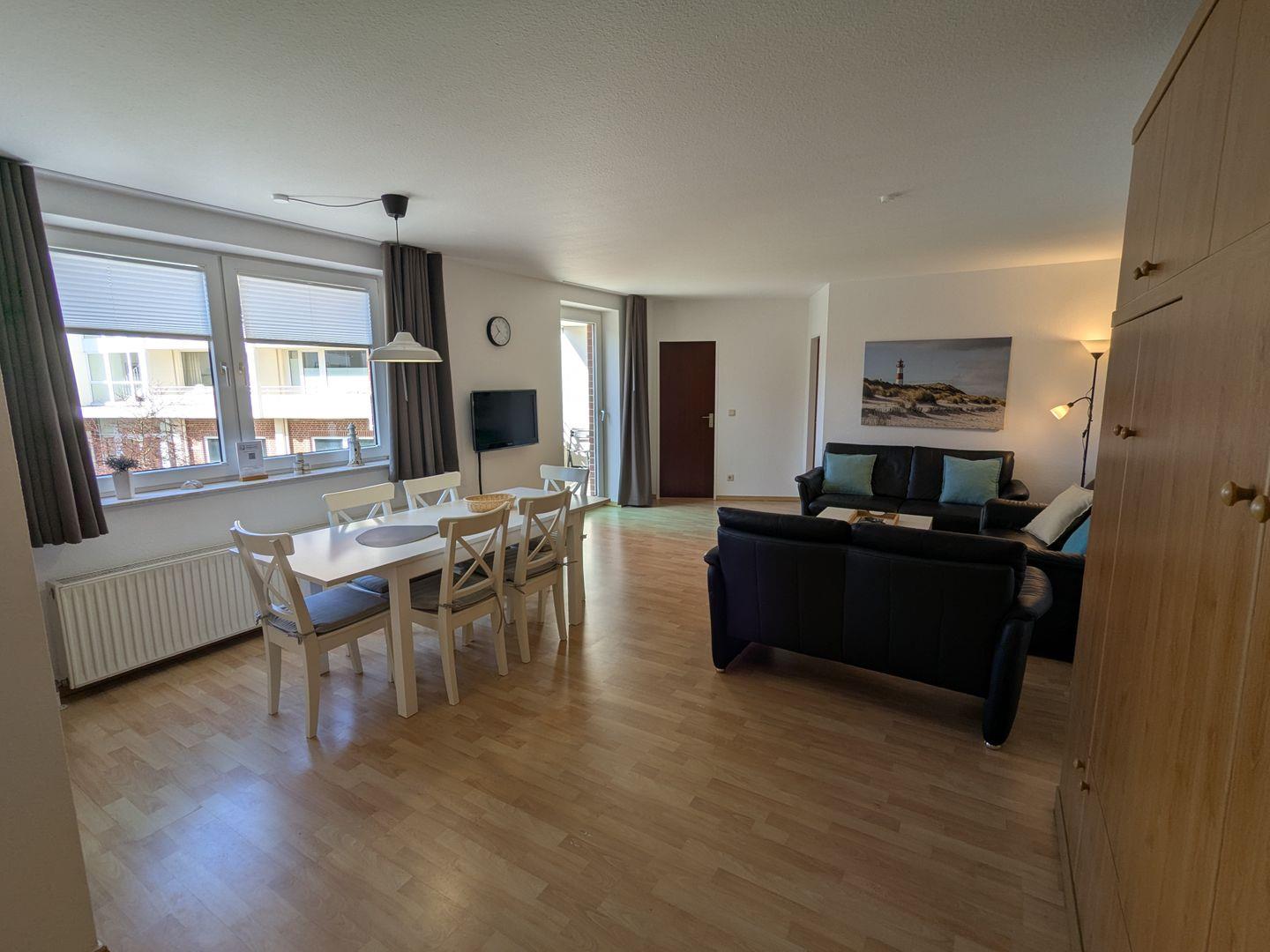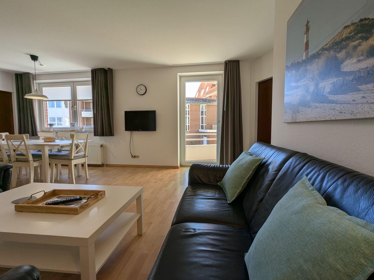 Die großzügige 3-Zimmer-Ferienwohnung (hundefreundlich) im Haus Lord Nelson punktet mit Großzügigkeit, Wohlfühlambiente, einem sonnenreichen Südbalkon und absoluter Top-Lage.