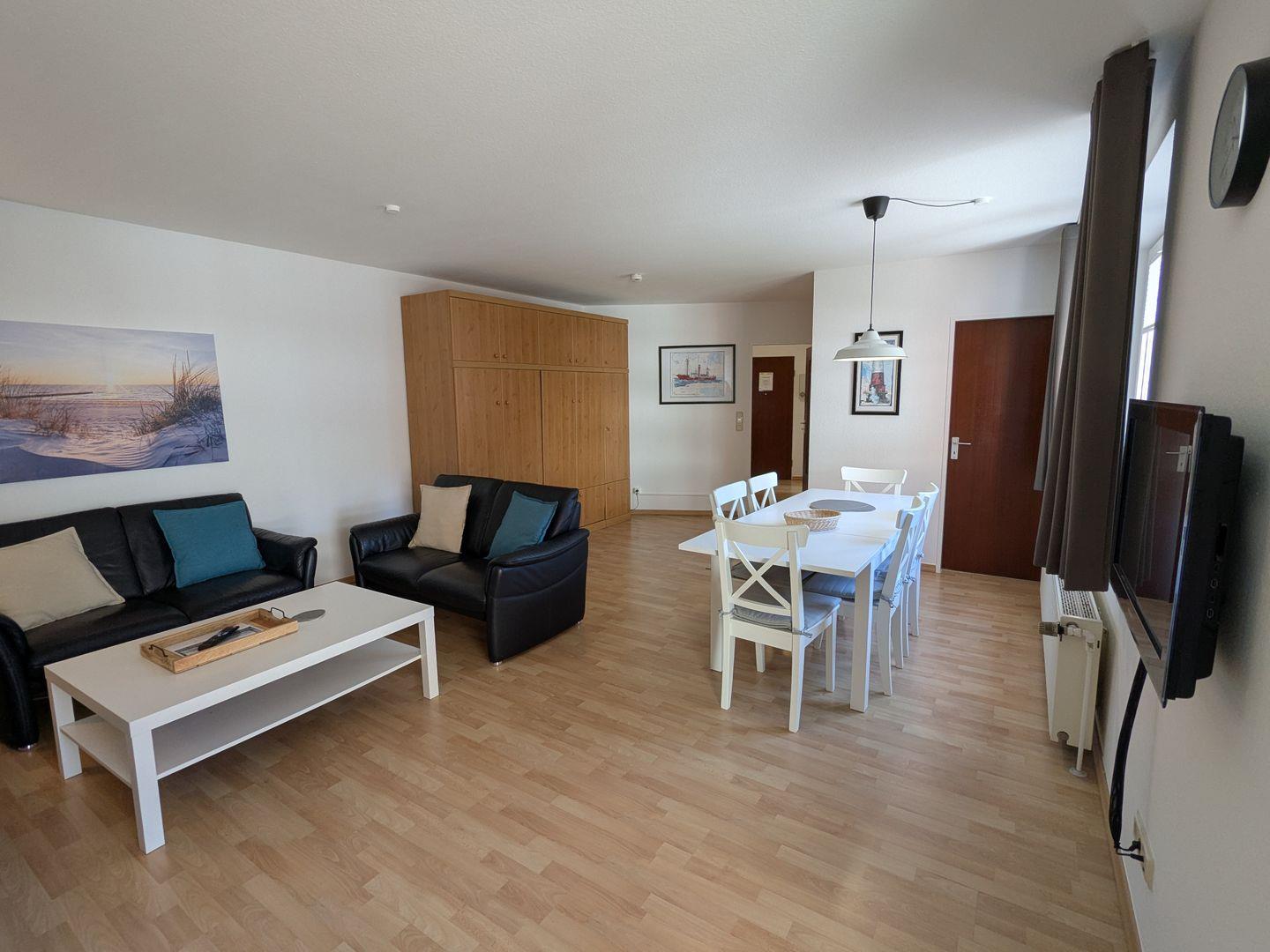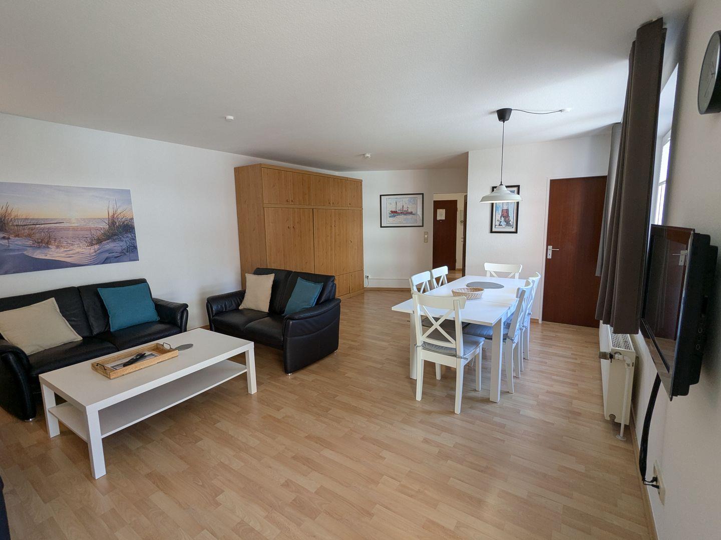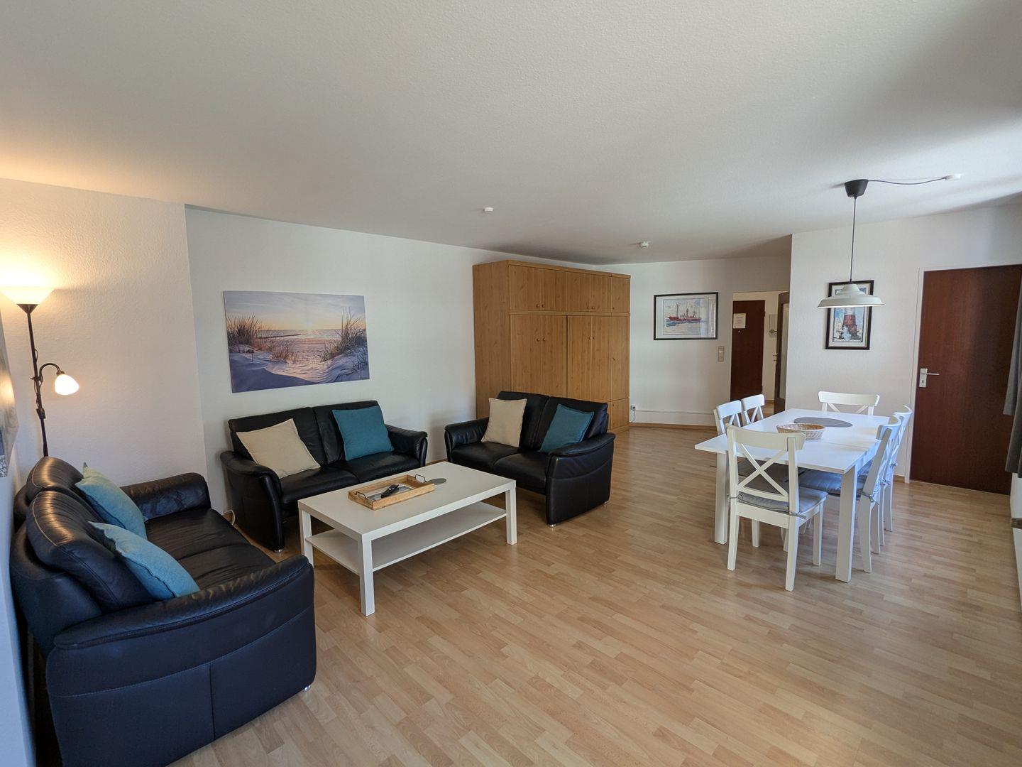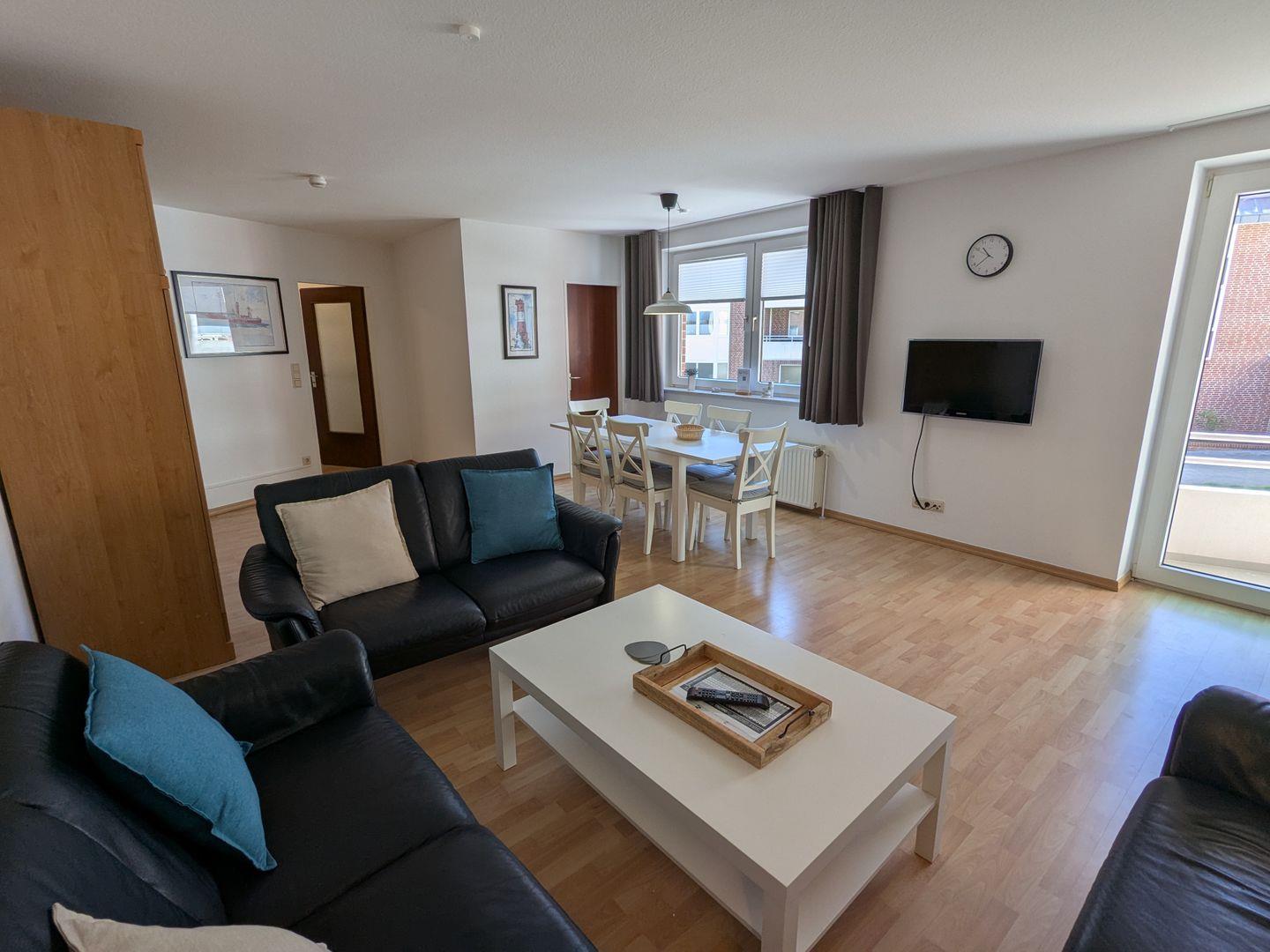 Die großzügige 3-Zimmer-Ferienwohnung (hundefreundlich) im Haus Lord Nelson punktet mit Großzügigkeit, Wohlfühlambiente, einem sonnenreichen Südbalkon und absoluter Top-Lage.
