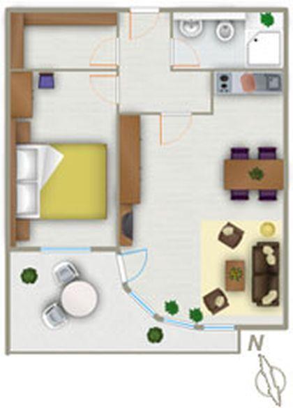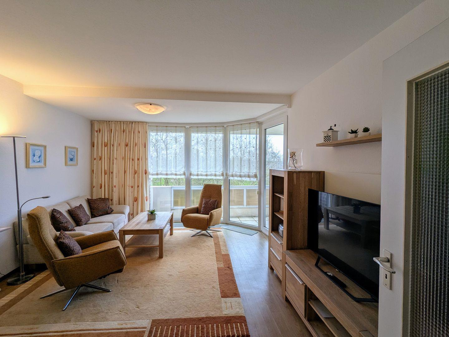 Haus "Trafalgar", Typ B, Appartement-Nr. 247, bis 2 Pers., 2.Etage, ca. 46 qm, Südseite (ohne Meerblick), Schlafzimmer mit Doppelbett, Küchenzeile mit Geschirrspüler, Dusche/WC, Balkon, Kabel-TV, CD-Player, Telefon, kostenl. WLAN-Zugang im App., Tiefgaragenstellplatz, Nichtraucherwohnung, Strandkorb im Sommer 2025.