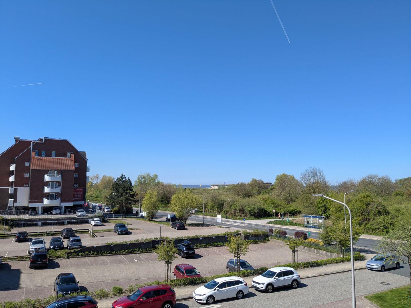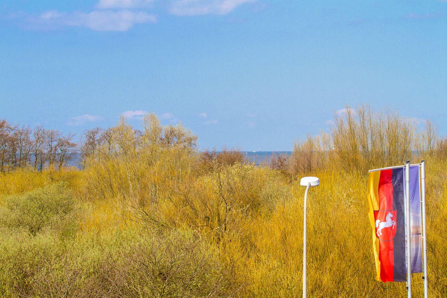 Das Highlight des Balkons ist an Tagen mit klarer Sicht der Blick über den Deich aufs Meer. Hier können sich unsere Urlaubsgäste zurücklehnen und die frische Nordseeluft samt Ausblick genießen.