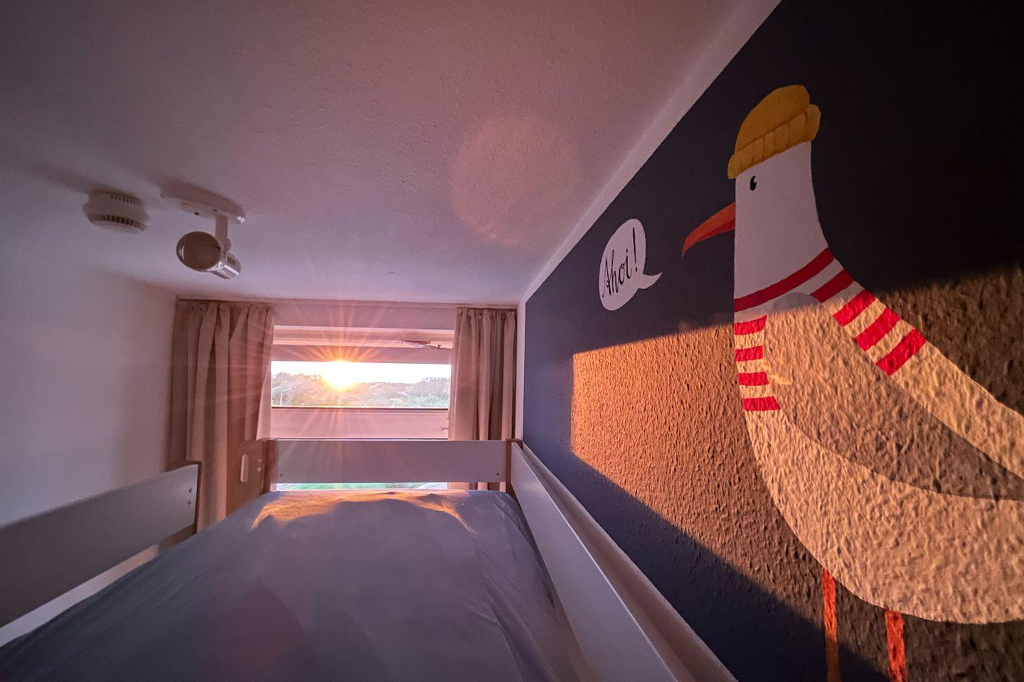 Haus Lord Nelson, Typ 2, App.-Nr. 306, bis 4 Pers., 3. Etage, Weltnaturerbe Wattenmeer, ca. 40 qm, eingeschränkter Meerblick Richtung Neuwerk, Wohnbereich mit Schrankbett, sep. Kinderzimmer mit Etagenbett (hoher Einstieg), Dusche/WC, Küchenzeile mit Geschirrspüler, 2-Platten-Ceranfeld und Mikrowelle, Balkon, Telefon, Kabel-TV, kostenl. WLAN-Zugang im App. Tiefgargenstellplatz, Nichtraucherwohnung, Strandkorb im Sommer 2026.