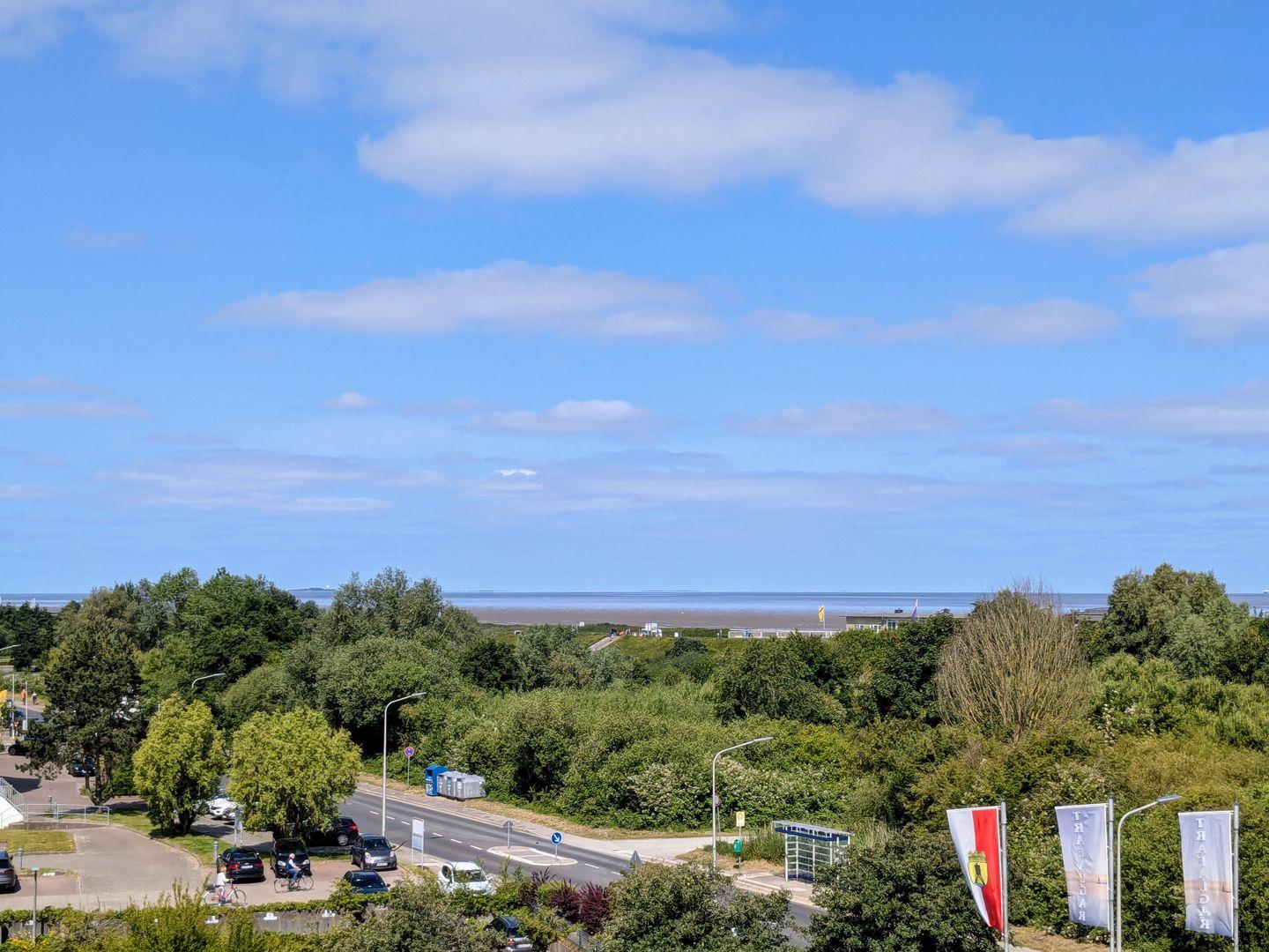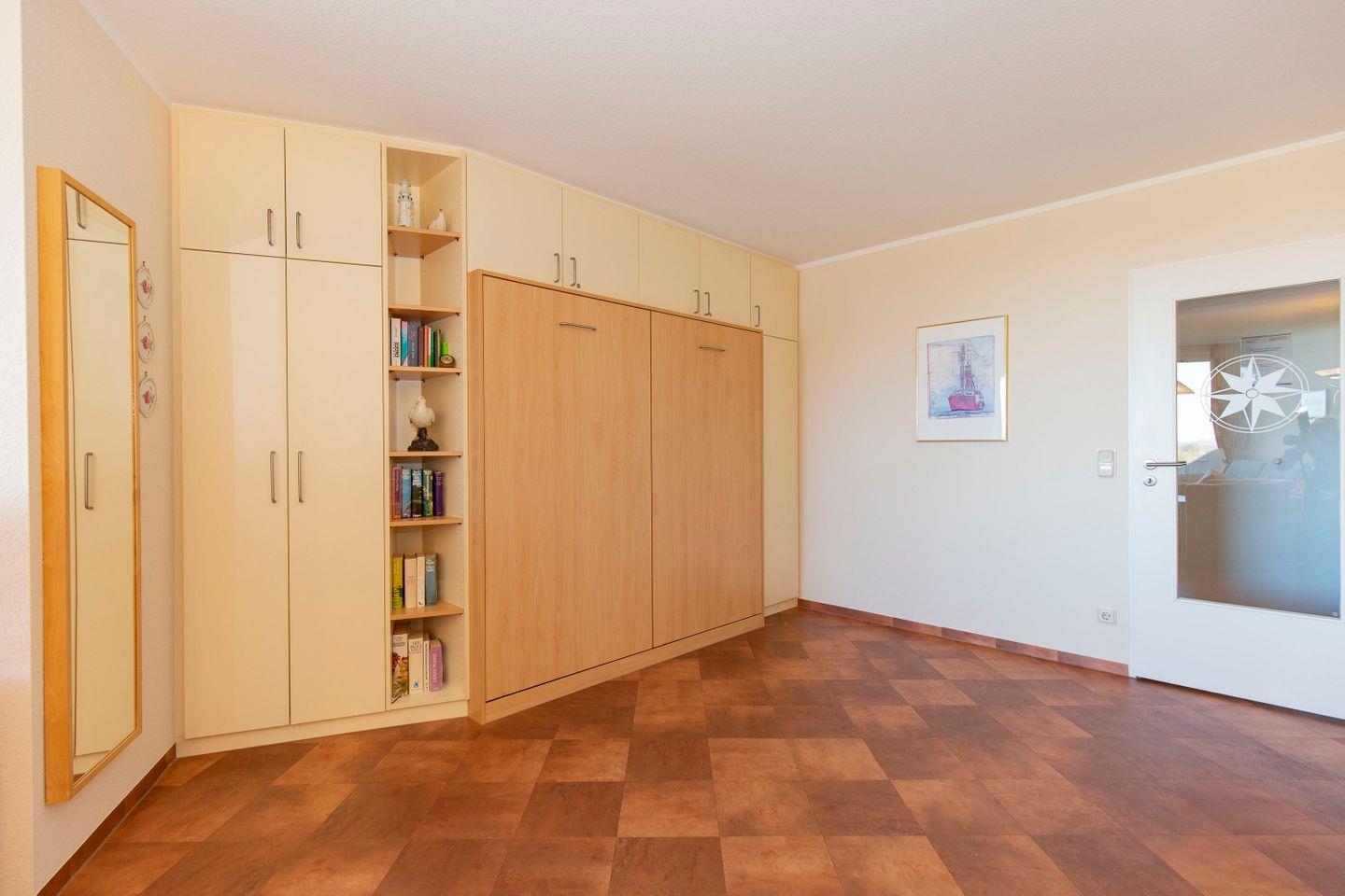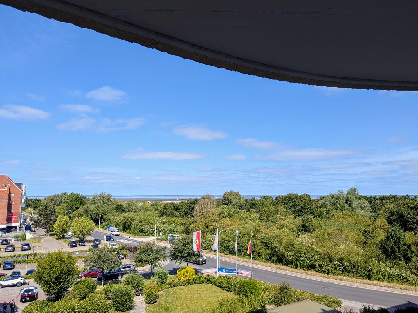 Haus "Lord Nelson", Typ 2, App.-Nr. 408, bis 3 Pers., 4. Etage, ca. 40 qm, Weltnaturerbe Wattenmeer, Meerblick Richtung Neuwerk, Wohnbereich mit Schrankbett (einzeln klappbar), sep. Schlafzimmer mit Einzelbett, Dusche/WC, Küchenzeile mit Geschirrspüler/ Backofen/ Mikrowelle, Balkon, Kabel-TV, Smart TV, kostenl.,WLAN-Zugang im App., Nichtraucherapp., Tiefgaragenstellplatz, Strandkorb im Sommer 2026.