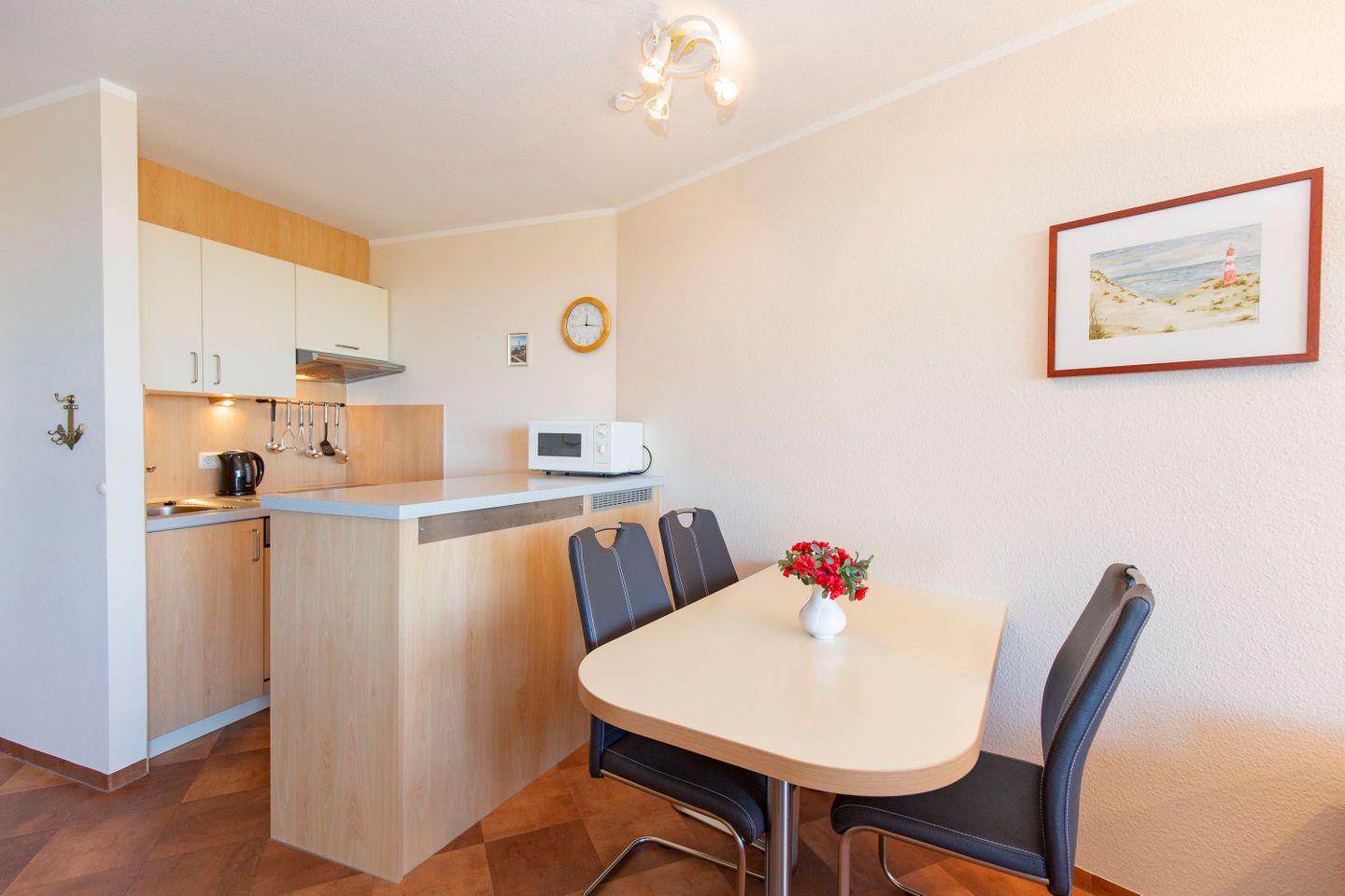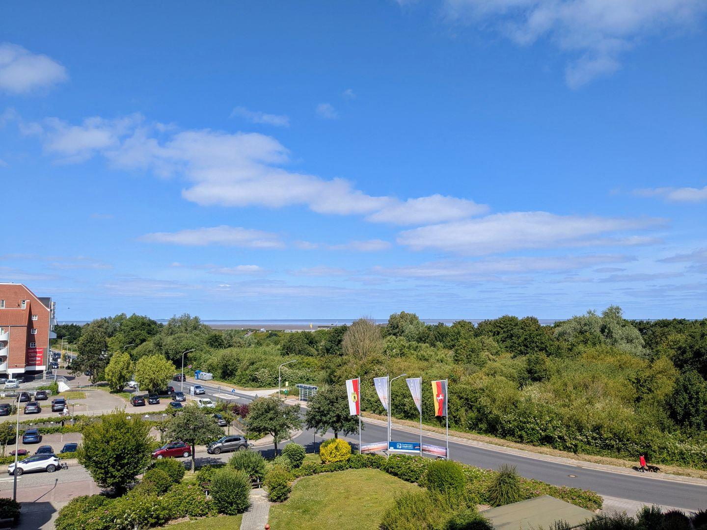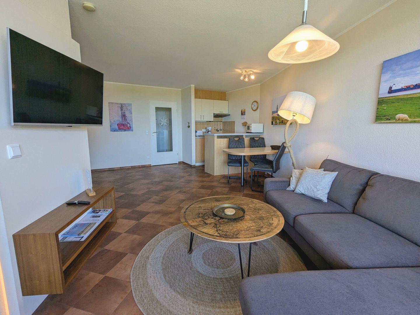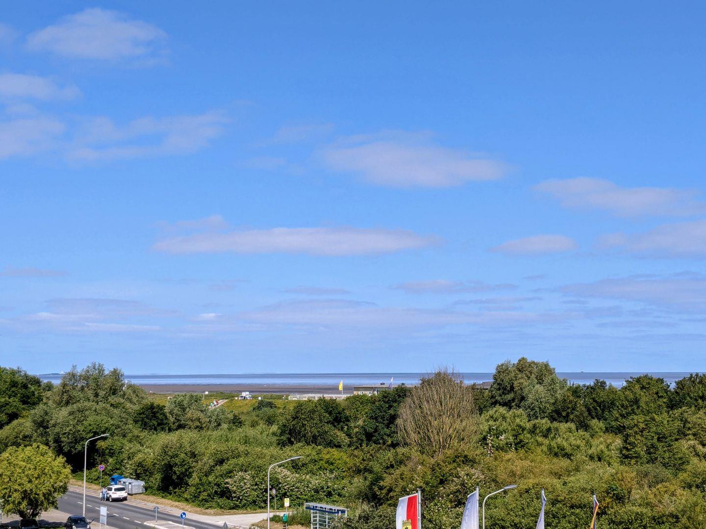 Haus "Lord Nelson", Typ 2, App.-Nr. 408, bis 3 Pers., 4. Etage, ca. 40 qm, Weltnaturerbe Wattenmeer, Meerblick Richtung Neuwerk, Wohnbereich mit Schrankbett (einzeln klappbar), sep. Schlafzimmer mit Einzelbett, Dusche/WC, Küchenzeile mit Geschirrspüler/ Backofen/ Mikrowelle, Balkon, Kabel-TV, Smart TV, kostenl.,WLAN-Zugang im App., Nichtraucherapp., Tiefgaragenstellplatz, Strandkorb im Sommer 2026.