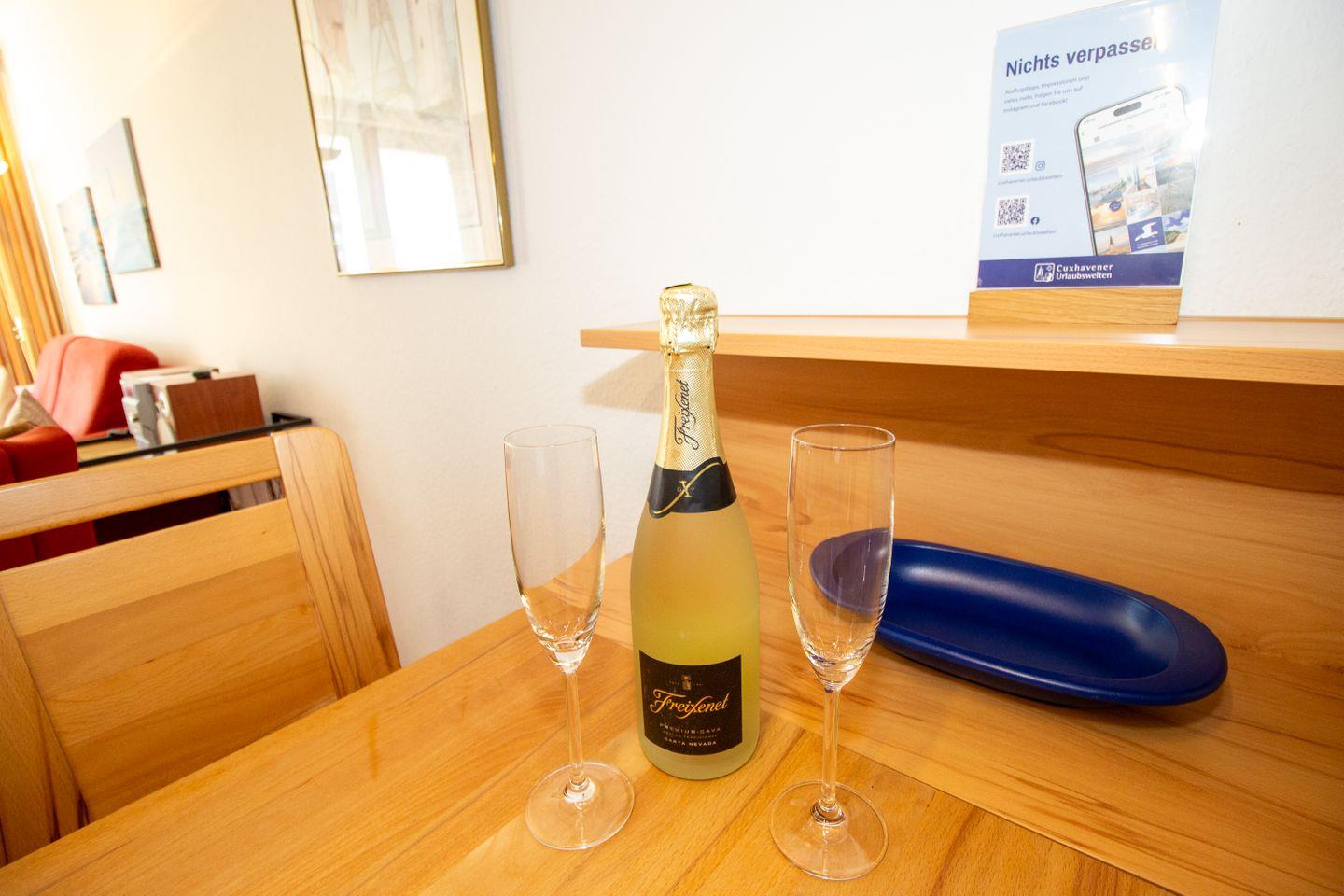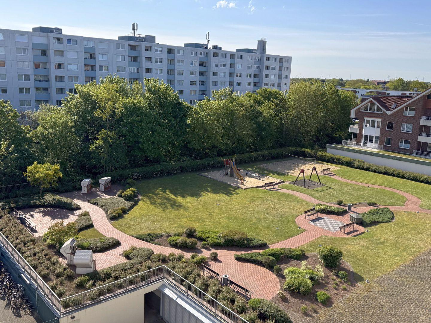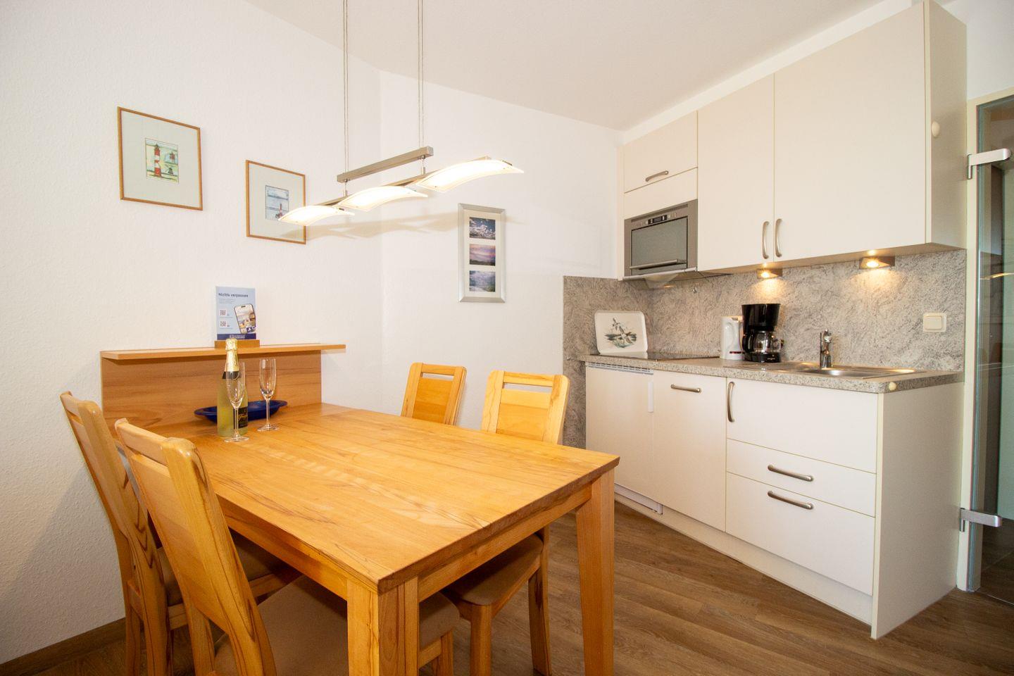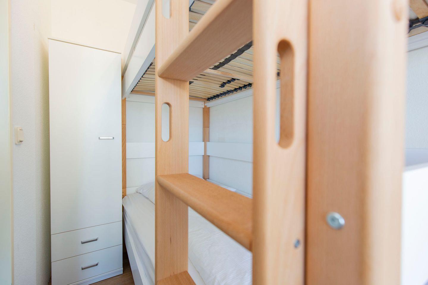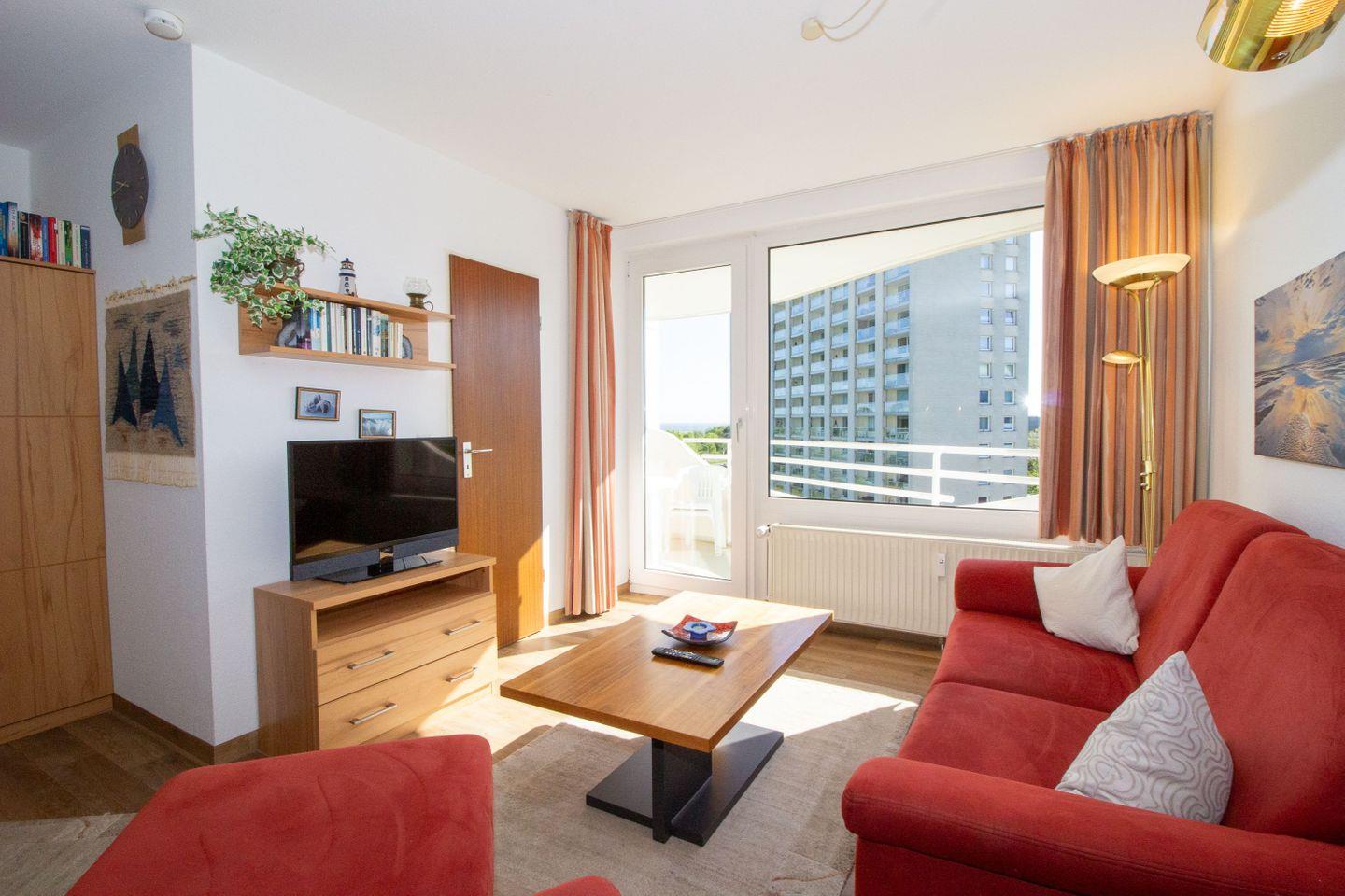 Haus "Lord Nelson", Typ 2, App.-Nr. 518, bis 4 Personen, ca. 40 qm, Richtung Weltschifffahrtsweg, seitlicher Meerblick Richtung Elbe, Wohnbereich mit Schrankbett (einzeln klappbar), separates Schlafzimmer mit Etagenbett mit hohem Einstieg, Dusche/WC, Küchenzeile mit Geschirrspüler, 4-Platten-Ceranfeld, Mikrowellen-Grillkombination, Vinyl-Design-Boden, Balkon, Telefon, Flatscreen-TV, kostenl. W-Lan Zugang im App., Radio/CD, für Haustiere zugelassen, Tiefgaragenstellplatz, Strandkorb im Sommer 2026.