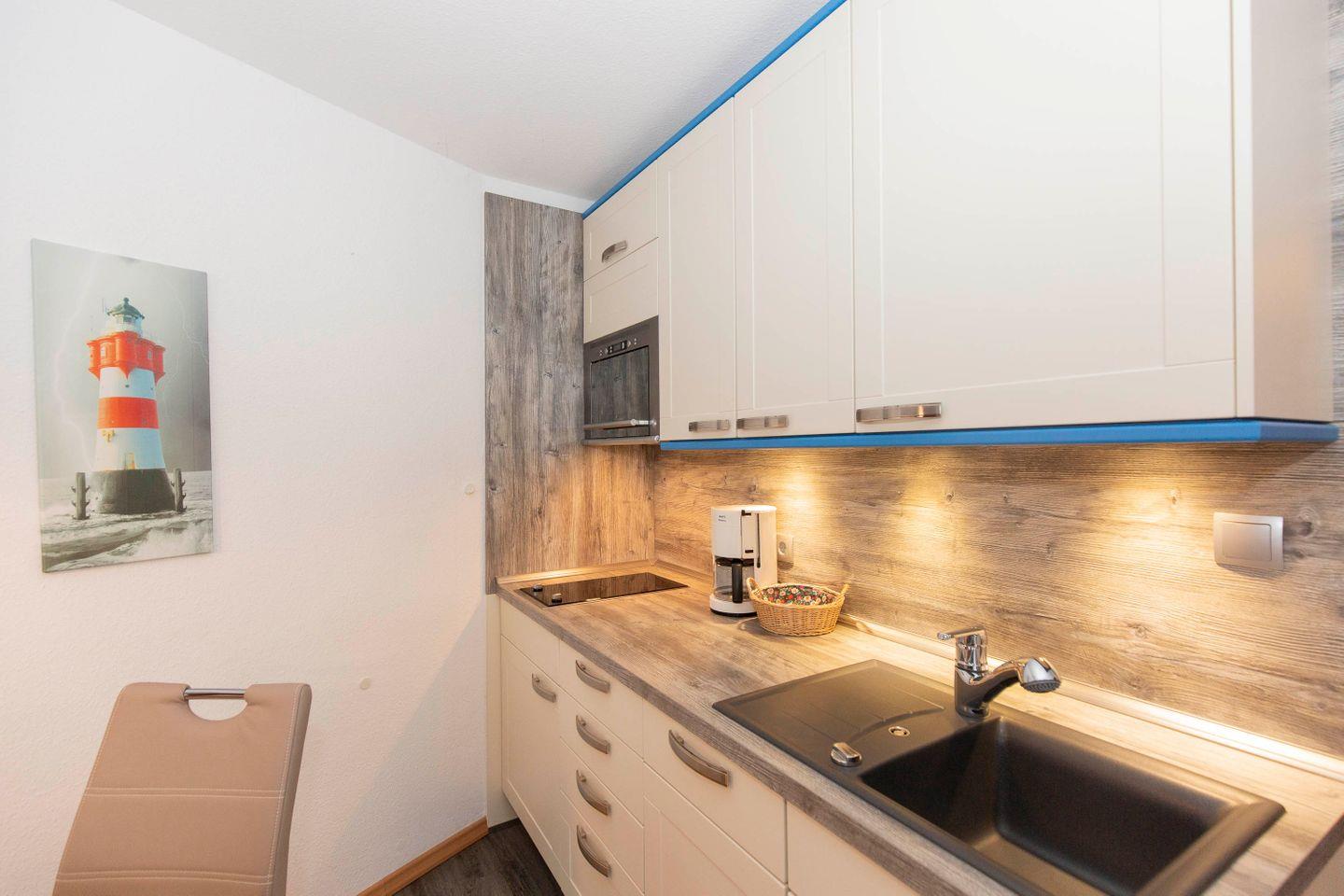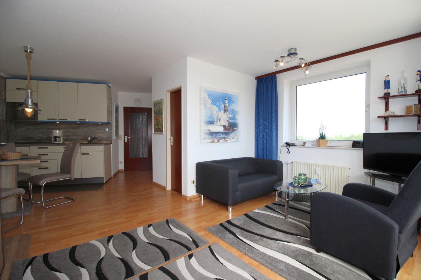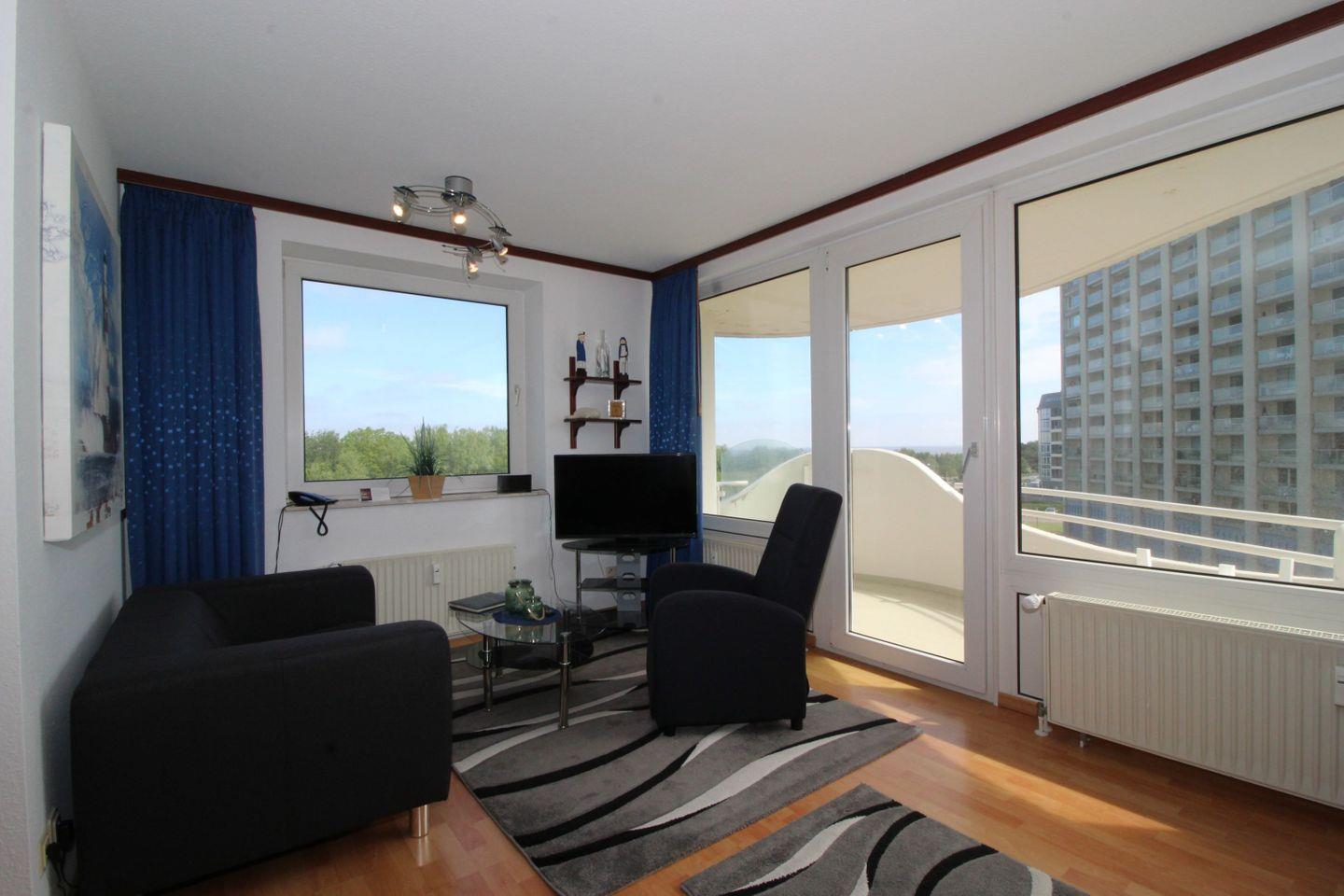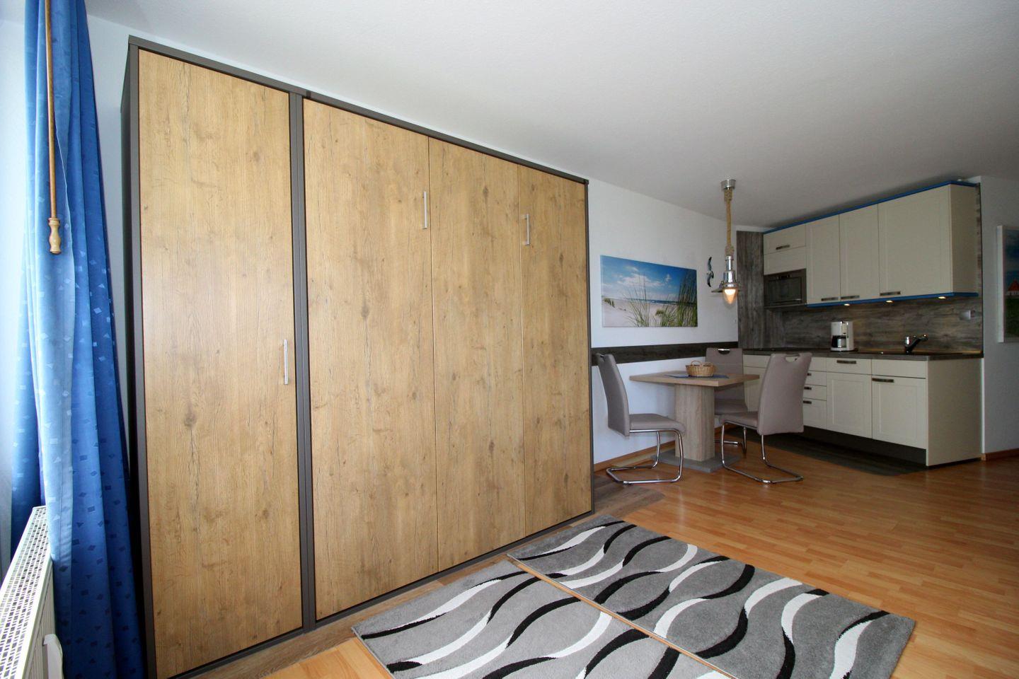 Haus "Lord Nelson", Typ 1, App.-Nr. 420, bis 2 Pers., 4. Etage, ca. 43 qm, Weltschifffahrtsweg, Meerblick Richtung Nordsee, seitlicher Meerblick Richtung Elbe , Wohnbereich mit Schrankbett, sep. kleines Schlafzimmer mit Schlafcouch, Dusche/WC, Küchenzeile mit Geschirrspüler und Mikrowelle, 2-Platten-Ceranfeld, Laminat, Balkon, Kabel-TV, Tiefgaragenstellplatz, Haustiere sind nicht erlaubt, Nichtraucher-Appartement, Kein WLAN