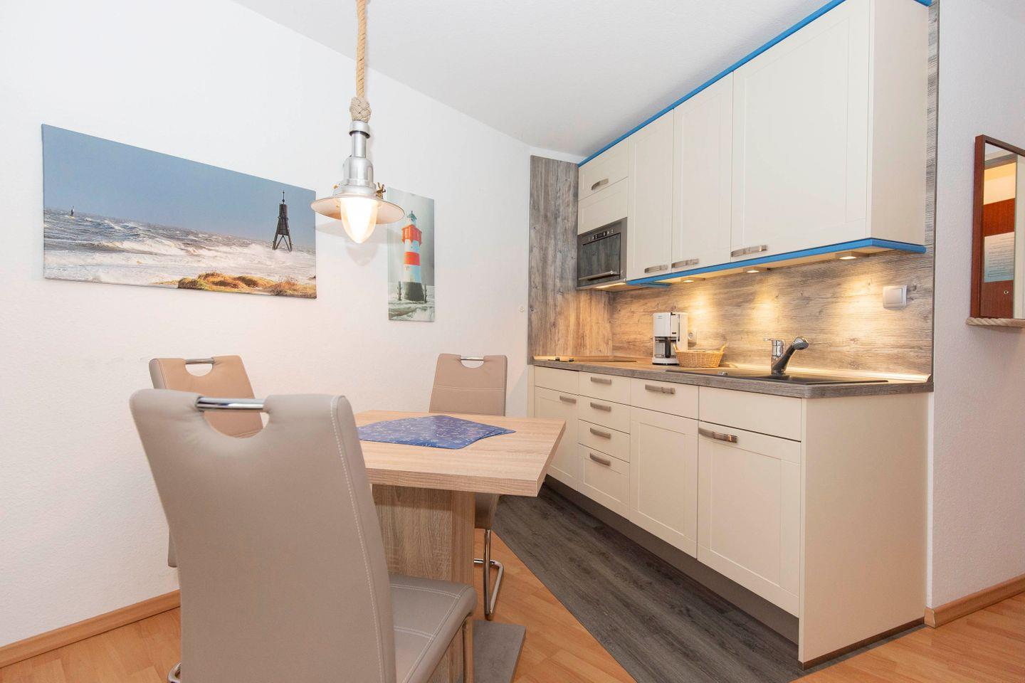Haus "Lord Nelson", Typ 1, App.-Nr. 420, bis 2 Pers., 4. Etage, ca. 43 qm, Weltschifffahrtsweg, Meerblick Richtung Nordsee, seitlicher Meerblick Richtung Elbe , Wohnbereich mit Schrankbett, sep. kleines Schlafzimmer mit Schlafcouch, Dusche/WC, neue Küchenzeile mit Geschirrspüler und Mikrowelle, 2-Platten-Ceranfeld, Laminat, Balkon, Kabel-TV, Tiefgaragenstellplatz, Haustiere sind nicht erlaubt, Nichtraucher-Appartement, Kein WLAN