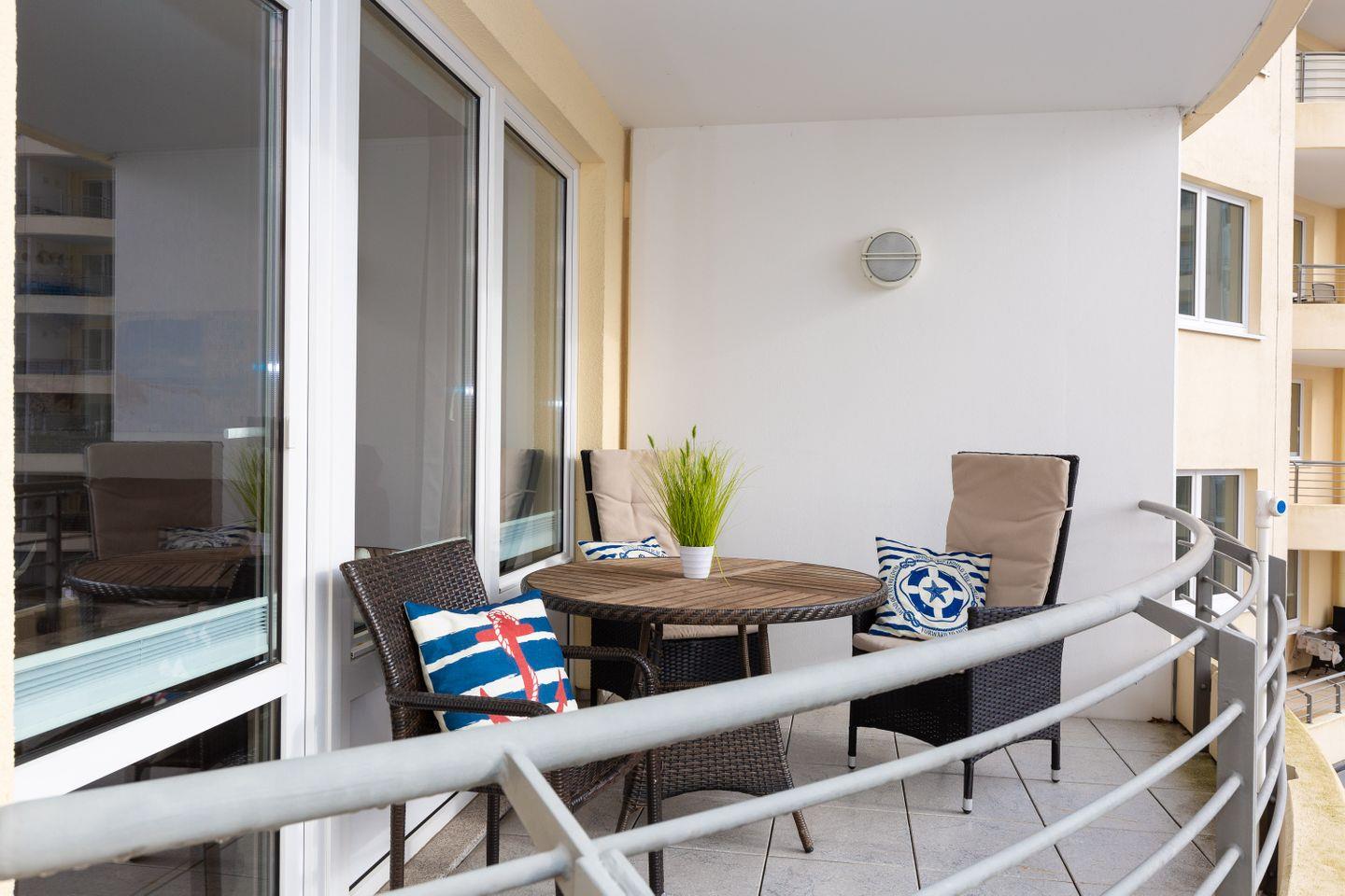 In der Loggia können unsere Urlaubsgäste jederzeit die frische Nordseeluft genießen.