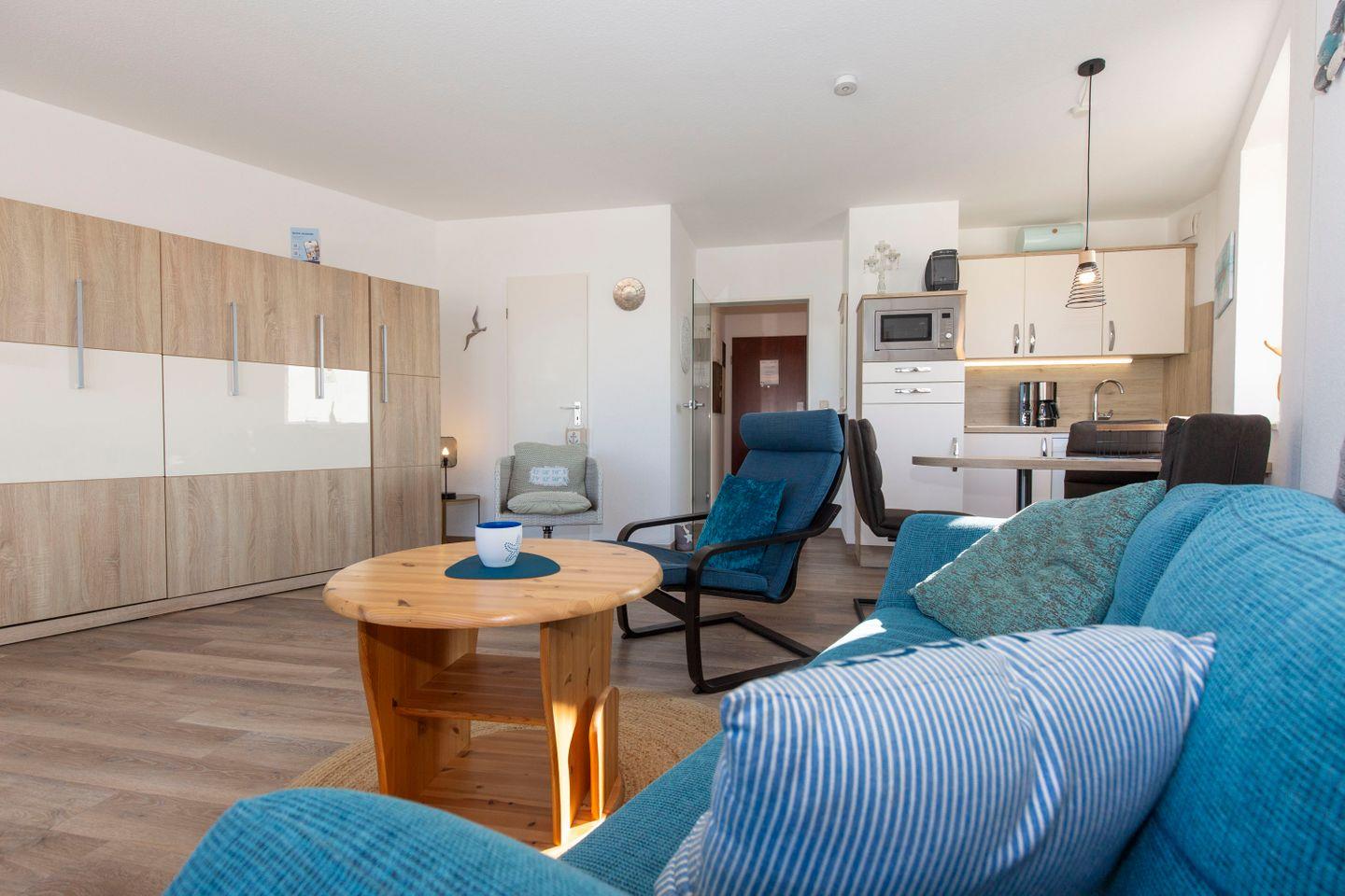Moderne 2-Zimmer-Ferienwohnung in Cuxhaven-Döse mit Meerblick, Balkon, Schwimmbad und Sauna, strandnah gelegen.