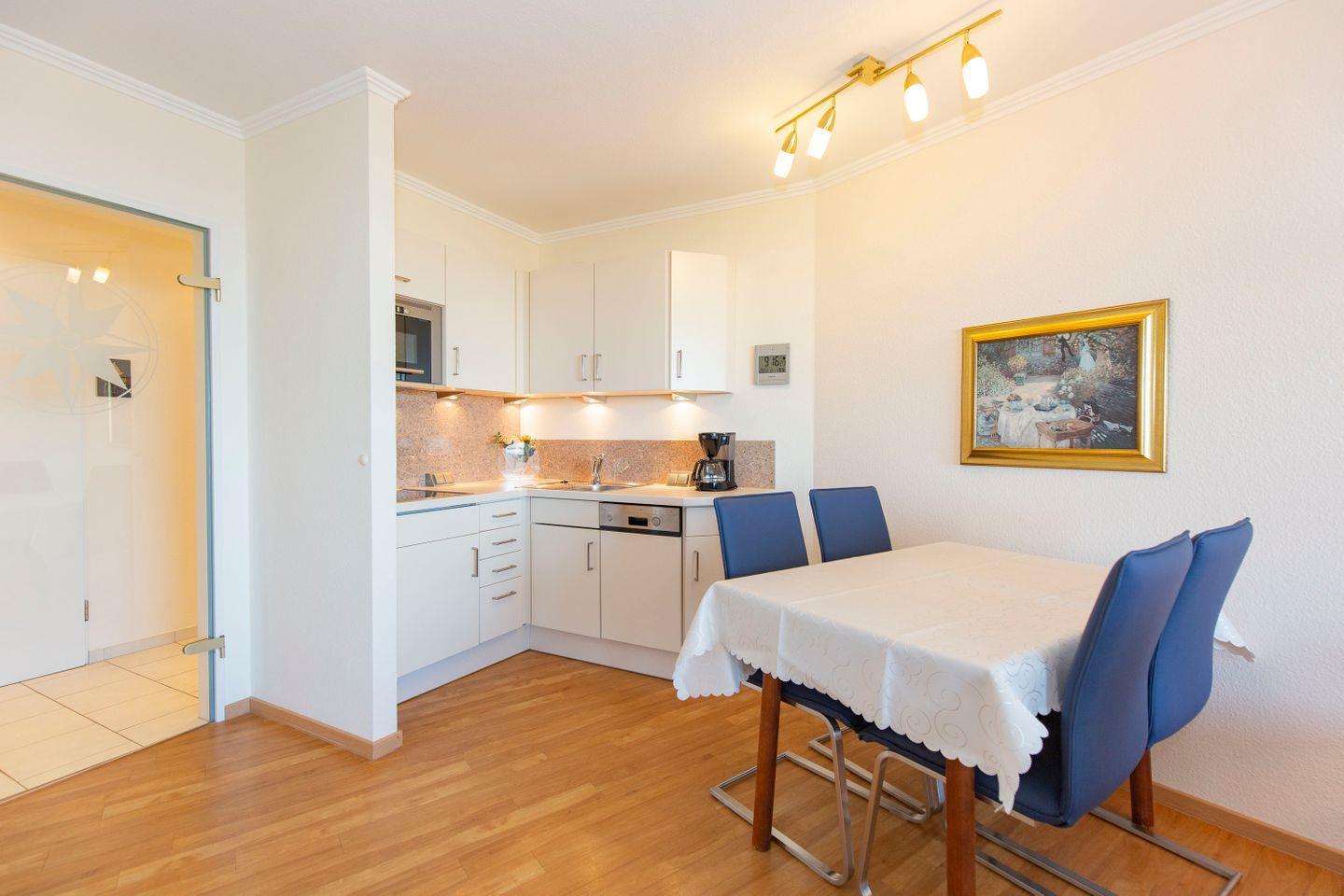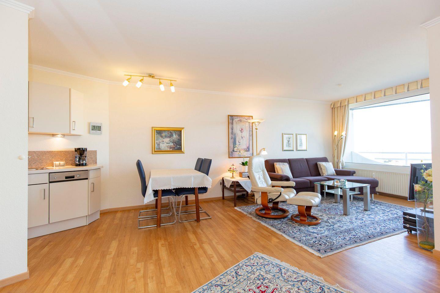 Die elegant eingerichtete 2-Zimmer-Ferienwohnung mit ihrem gemütlichen Ambiente liegt nur wenige Schritte vom feinen Sandstrand entfernt. Sie ist auf 40 m² für bis zu 3 Personen komfortabel ausgestattet mit Wohn-Schlafraum, moderner Küchenzeile über Eck mit Geschirrspüler, Mikrowelle und Senseo-Maschine, Duschbad/WC und Balkon. Durch die Top-Lage der Ferienwohnung haben Sie einen atemberaubenden Blick aus der 8. Etage auf das Wattenmeer und die Insel Neuwerk. Der nahegelegene Nordseestrand lädt zu ausgiebigen Wattwanderungen ein.