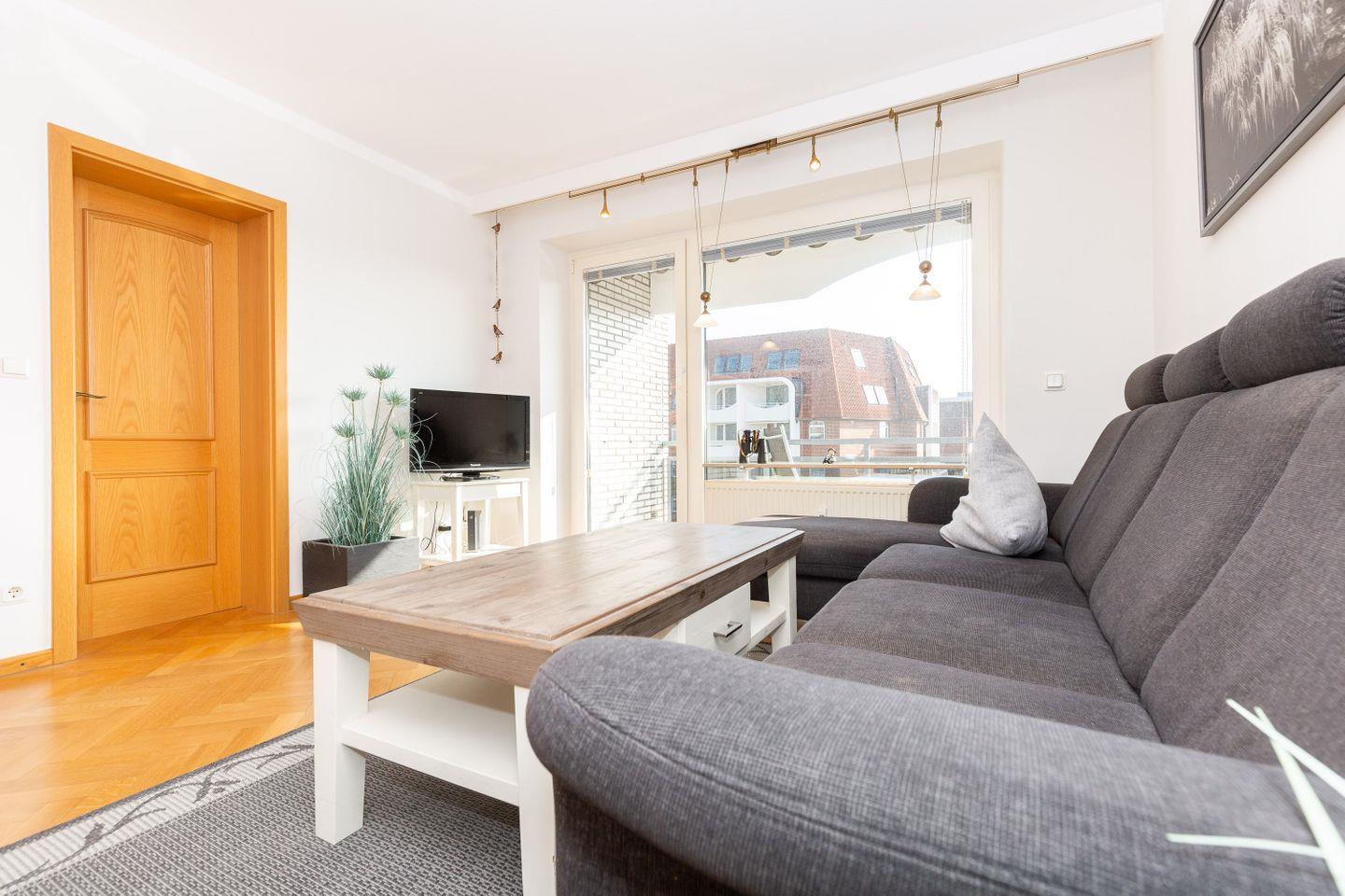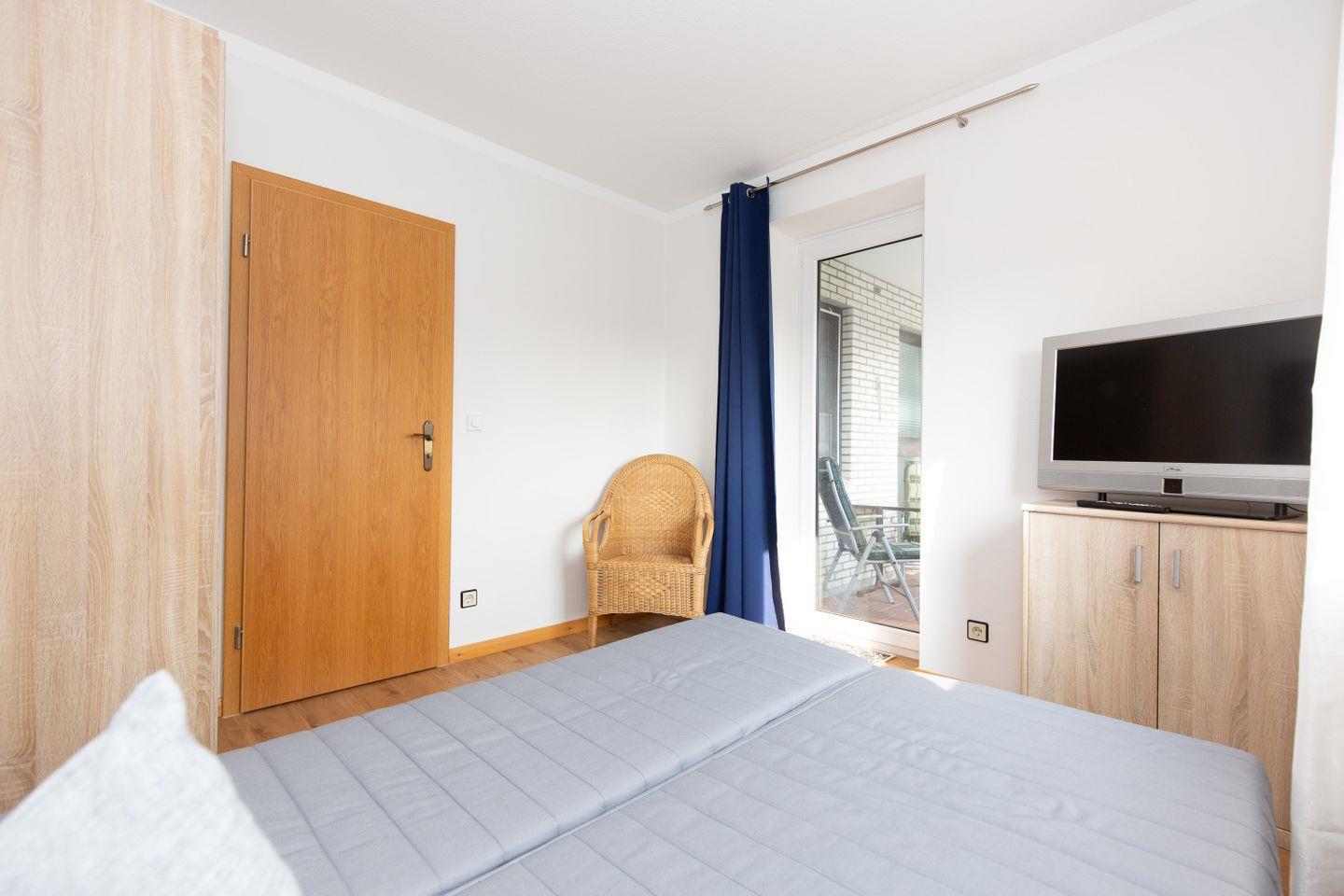 Gemütliche 55m² Ferienwohnung in Cuxhaven-Döse mit zwei Balkonen und seitlichem Meerblick, ideal für Familien.