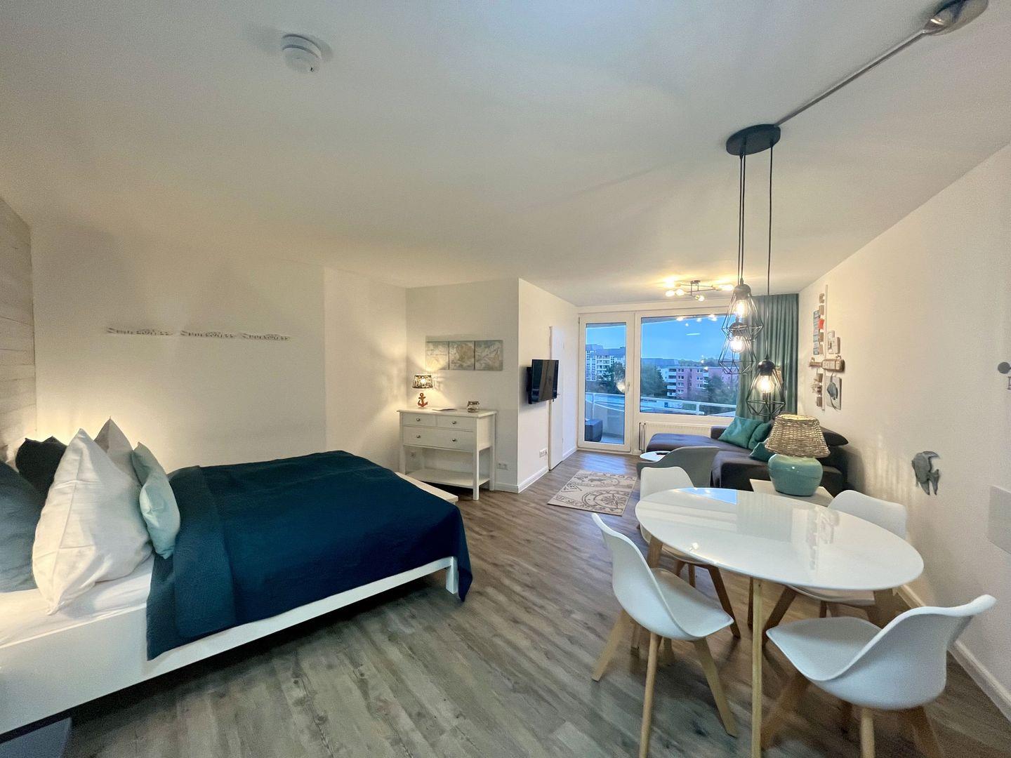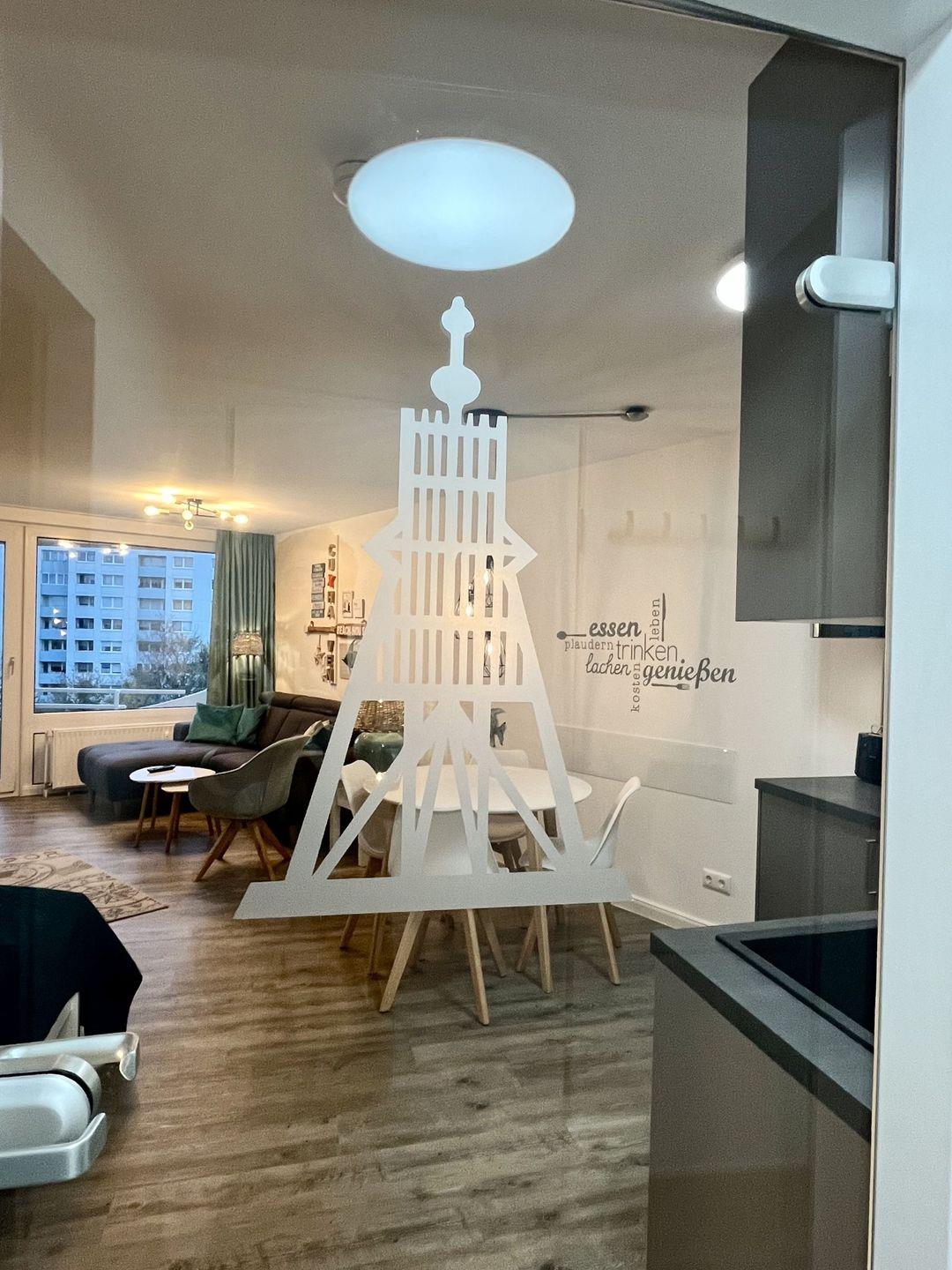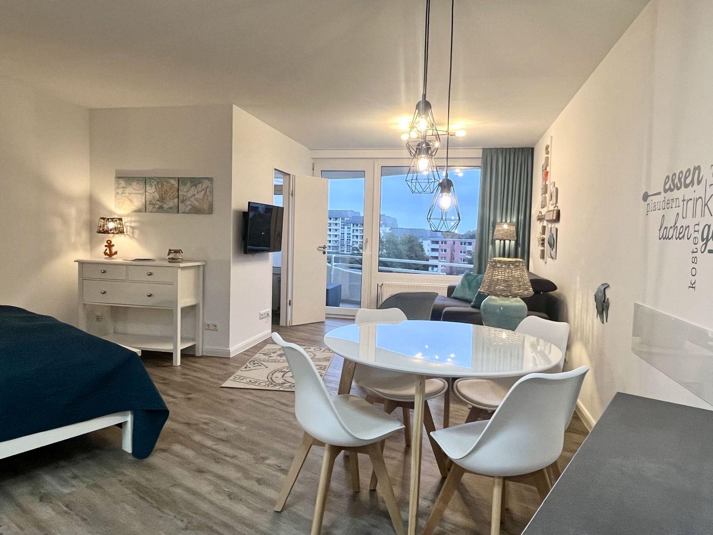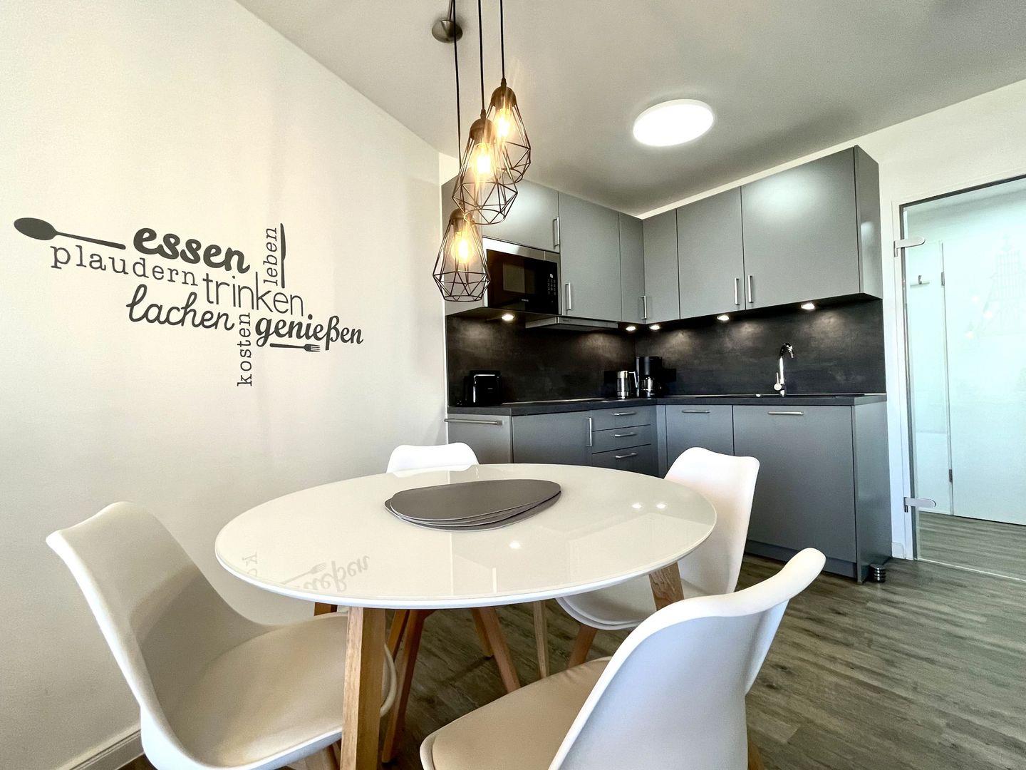 Haus "Lord Nelson", Typ 2, App.-Nr. 412, bis 4 Personen, ca 40 qm Größe, Weltschifffahrtsweg, seitlicher Meerblick Richtung Elbe, Wohnbereich mit Doppelbett, Kinderzimmer mit Etagenbett, Dusche/WC, Küchenzeile mit Geschirrspüler, Mikrowelle, 4-Platten-Ceranfeld, Balkon, kostenloses W-LAN im App., Kabel-TV, mobiler Bluetooth Speaker, Nichtraucherwohnung, keine Haustiere erlaubt, Strandkorb im Sommer 2026, Tiefgaragenstellplatz.