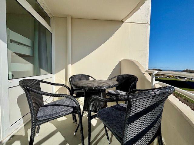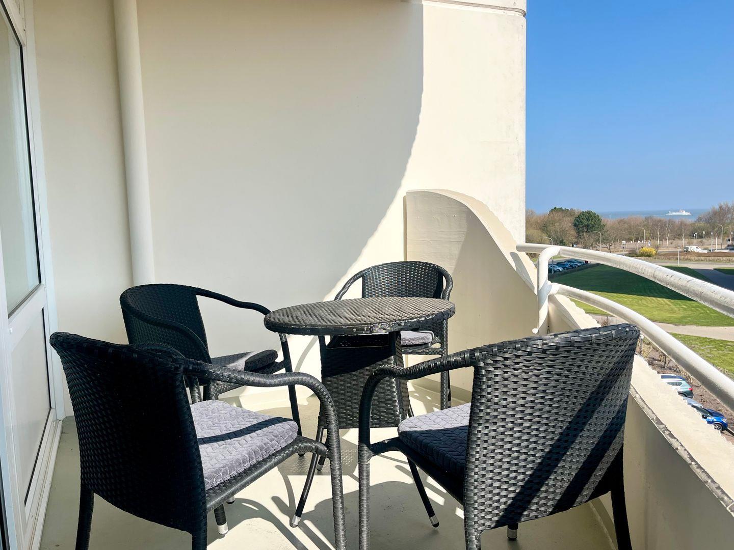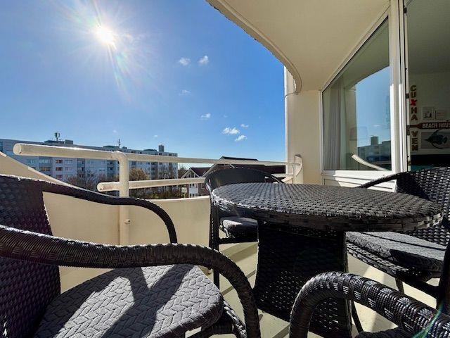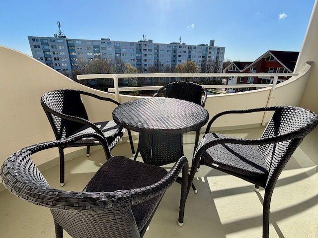 Auf dem Balkon der Ferienwohnung können Sie sich zurücklehnen und jederzeit die frische Nordseeluft genießen. Die Teilseesicht Richtung Kugelbake lädt zum Verweilen ein.