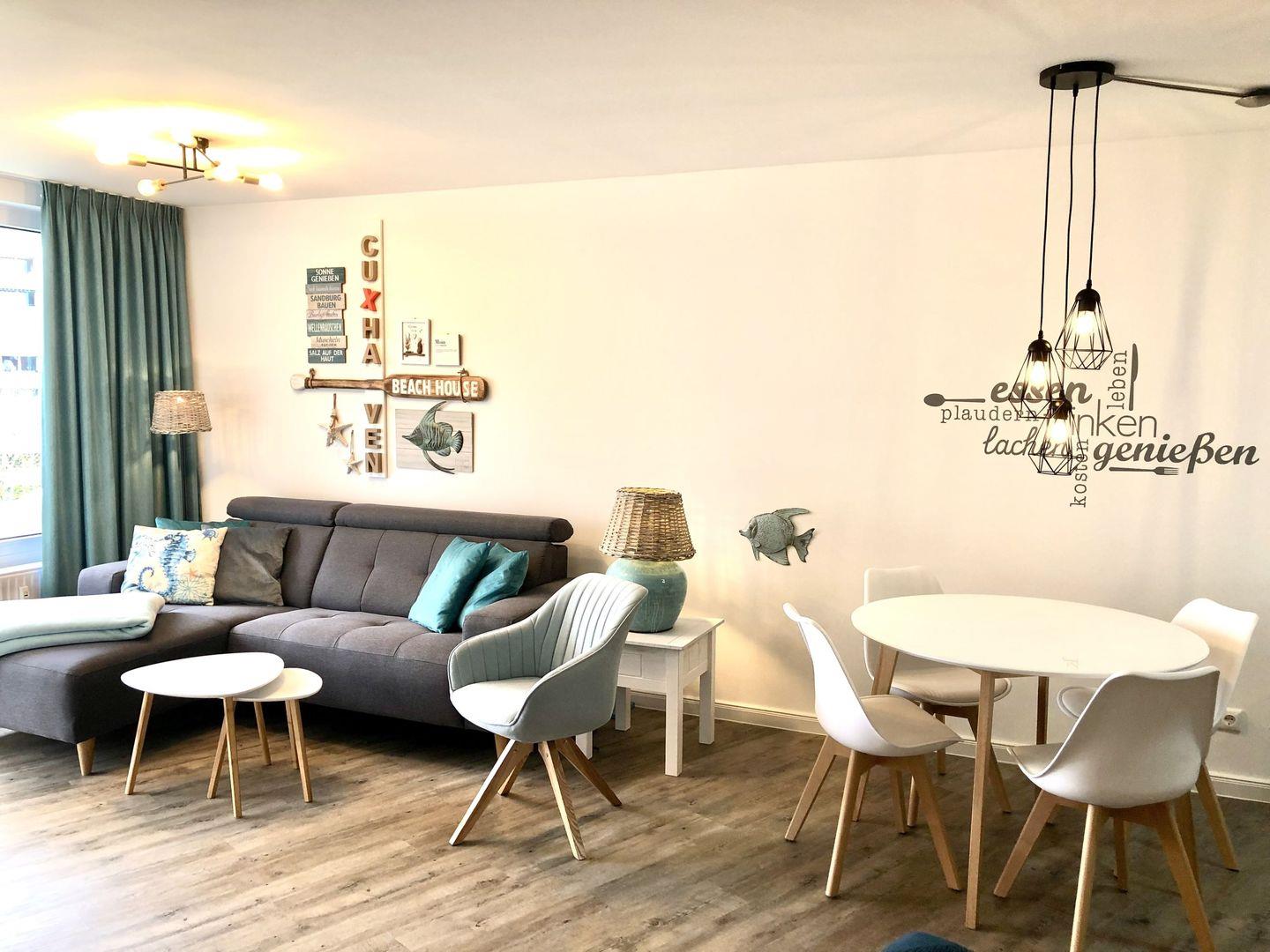 Moderne Ferienwohnung in Cuxhaven-Doese mit seitlichem Meerblick, Schwimmbad, Sauna und Strandnähe.