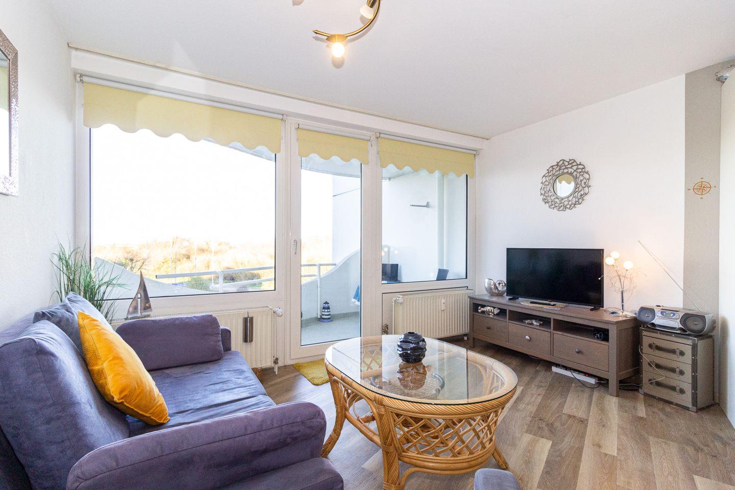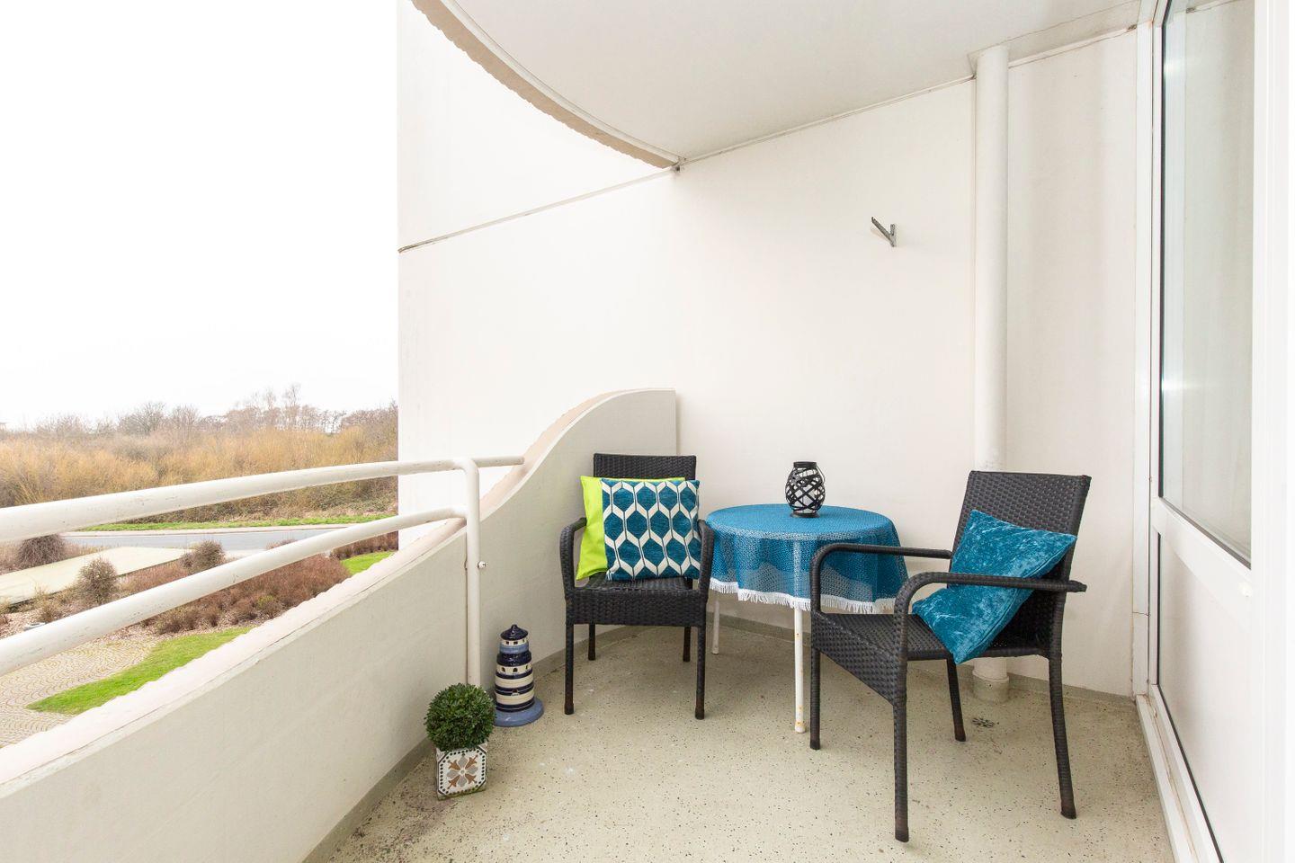 Mit eingeschränktem Blick auf das Meer (Jahreszeitenabhängig) können Sie sich auf den Balkonmöbeln und einer Sonnenliege zurücklehnen und die frische Nordseeluft genießen. Am Morgen zum Frühstück oder am Abend bei einem Glas Wein, der Balkon eignet sich perfekt um Ihren Urlaub an der Nordsee richtig auszukosten.