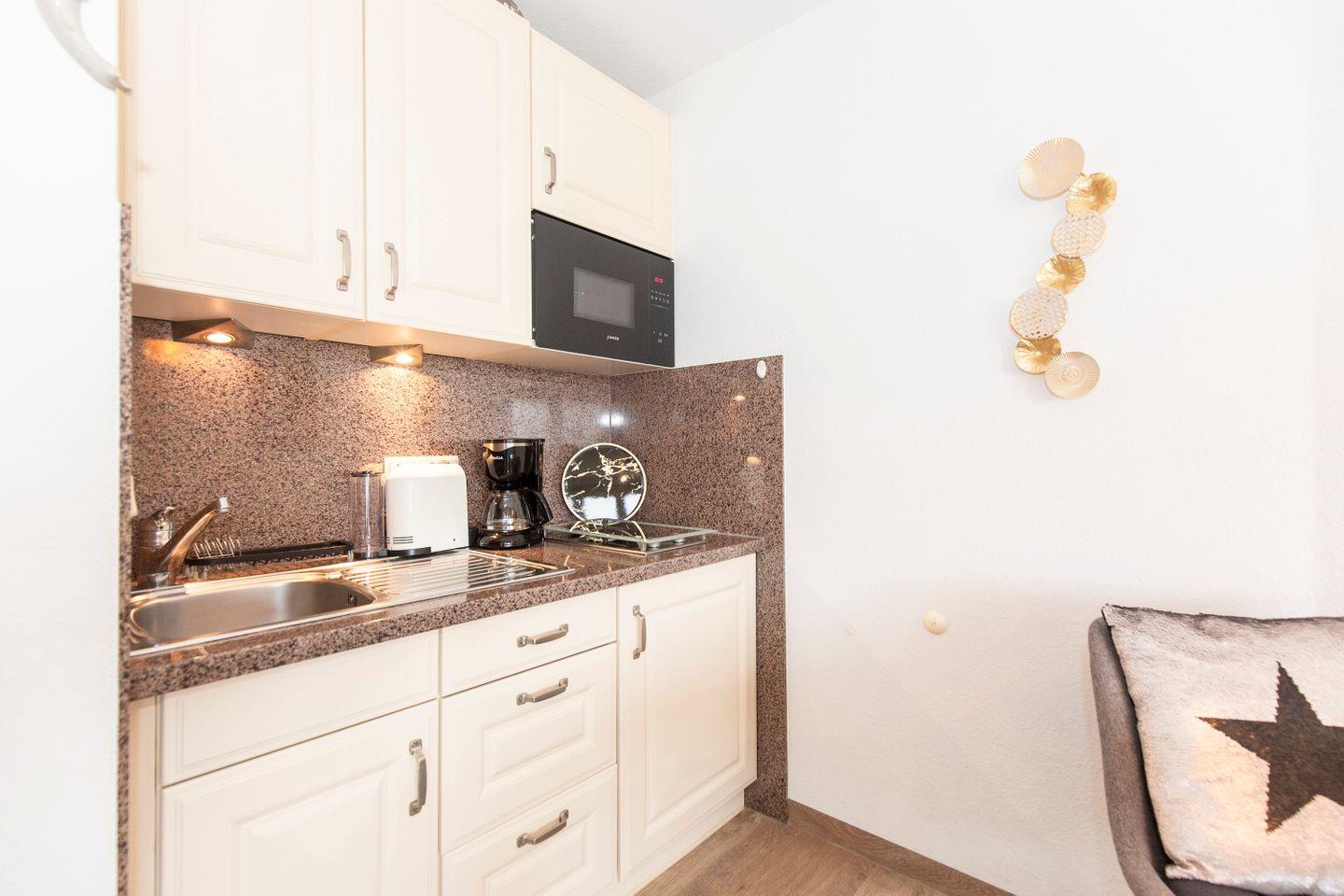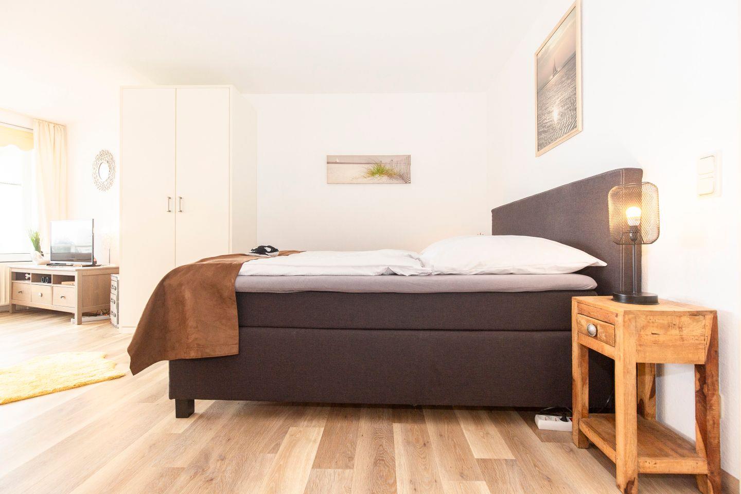 Haus "Lord Nelson", Typ 4, App.-Nr. "207", bis 2 Pers., 2. Etage, ca. 40 qm Wohnungsgröße, Wohnbereich mit feststehendem Bett (getrennte Matratzen mit durchgehendem Topper), Dusche/WC, Küchenzeile mit Mikrowelle, W-Lan inklusive, Kabel-TV, CD-Spieler, Balkon, Tiefgaragenstellplatz, Haustiere sind nicht gestattet, Nichtraucher, Strandkorb in den Sommermonaten 2026.