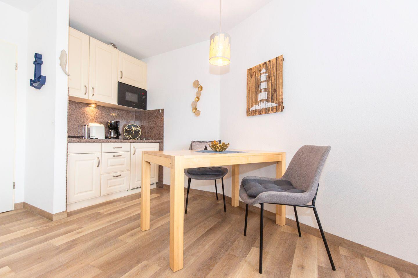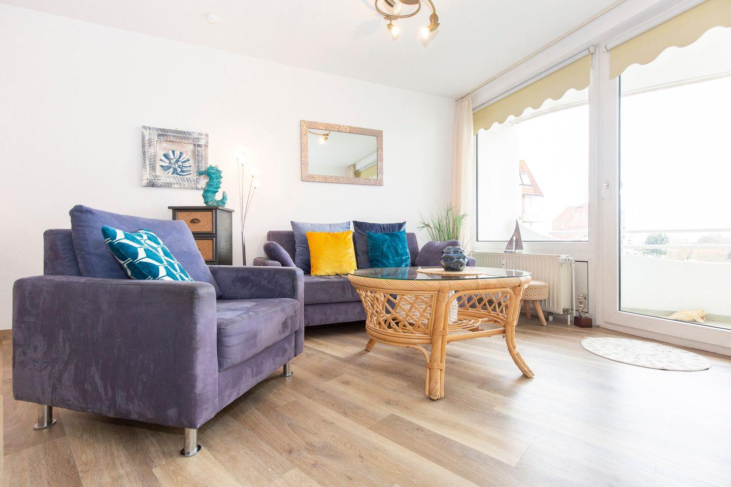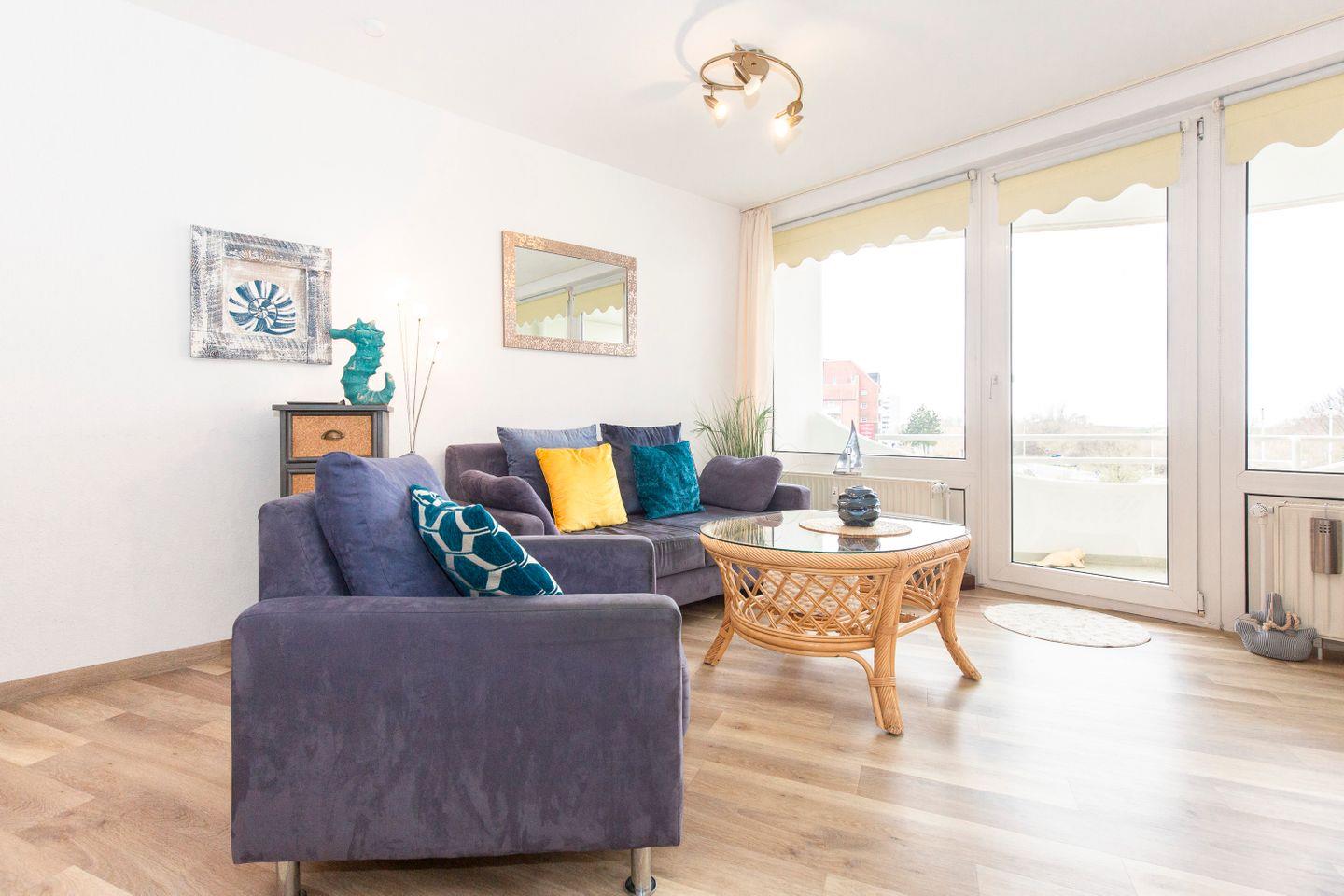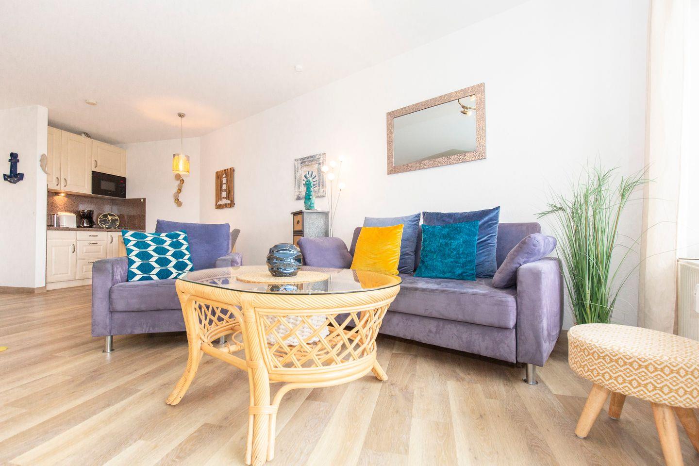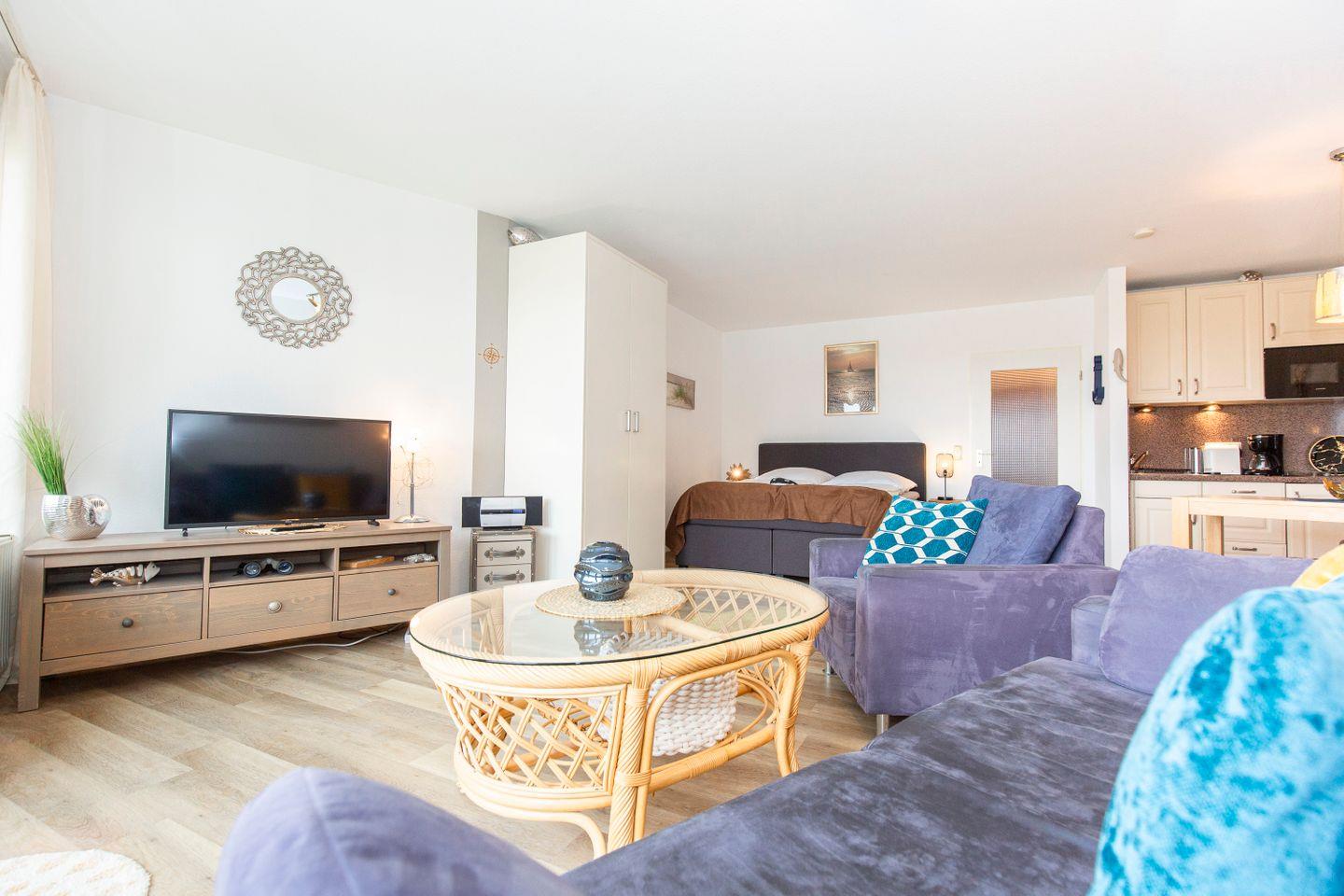 Die in Blautönen eingerichtete Ferienwohnung bietet auf 40 m² Platz für bis zu zwei Feriengäste. Einem Urlaub an der Nordsee in direkter Strandnähe und eine Ferienwohnung als Startpunkt für Ausflüge und Radtouren steht nichts mehr im Wege.
