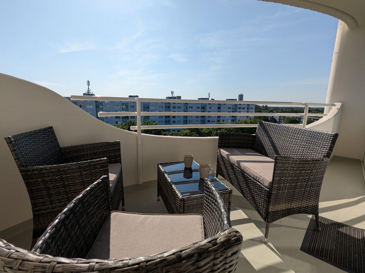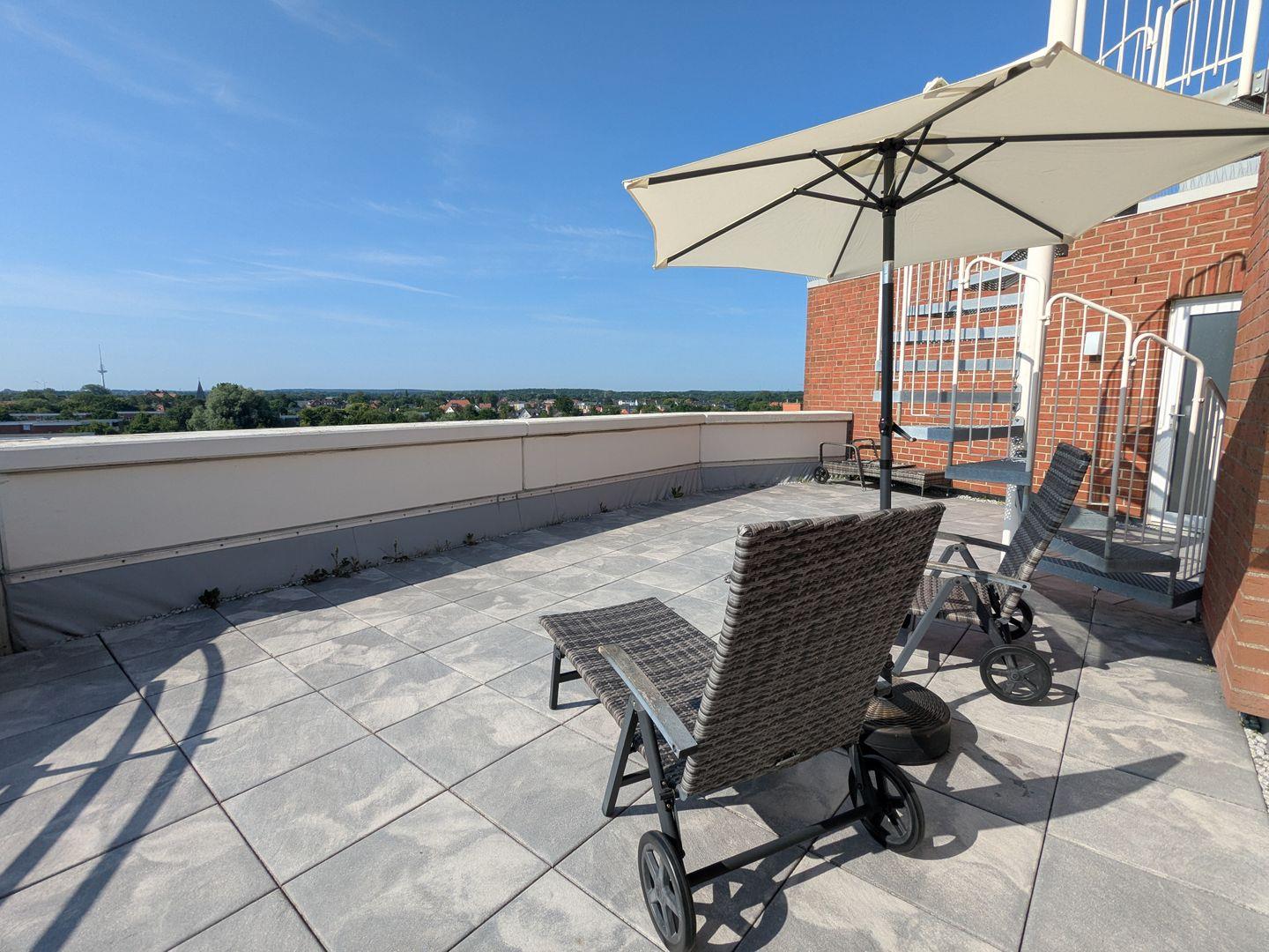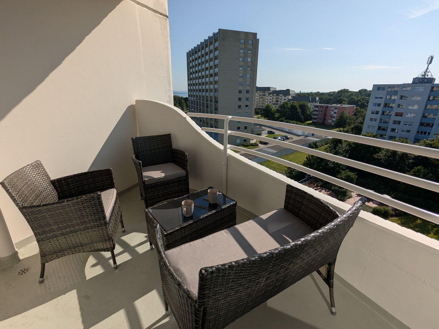 Neben einem möblierten Balkon mit Meerblick erwartet Sie in dieser FeWo eine große Dachterrasse. Sie ist mit 2 Sonnenliegen und einem Sonnenschirm ausgestattet. Bei Wind und Wetter können Sie auf dem Balkon die Aussicht auf den Weltschifffahrtsweg und die frische Nordseeluft genießen.